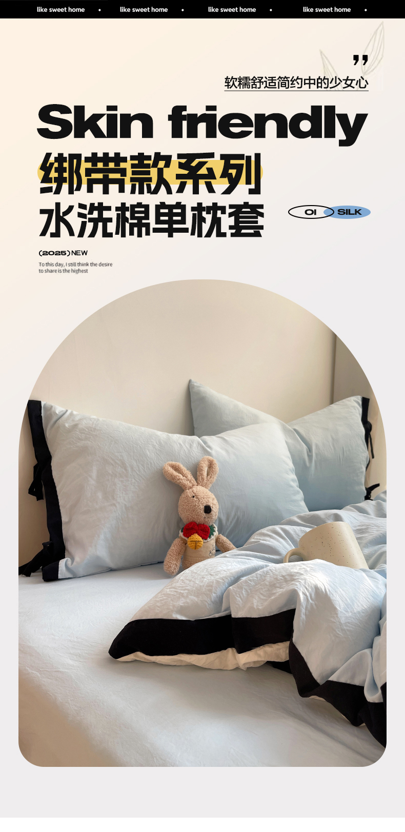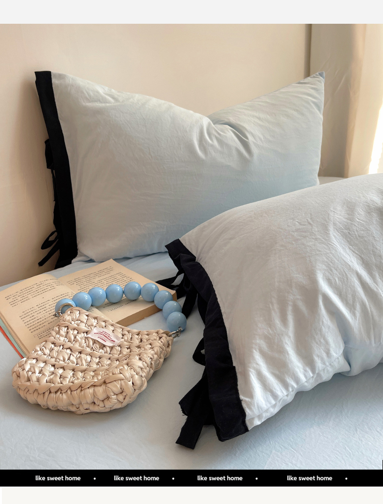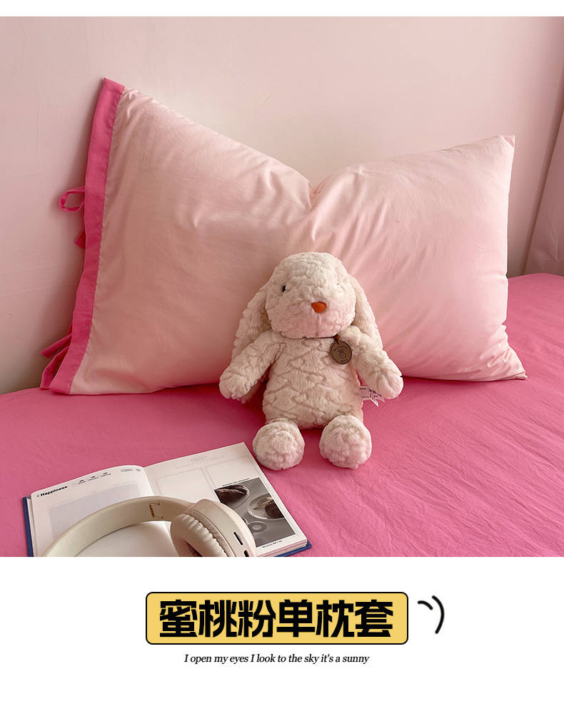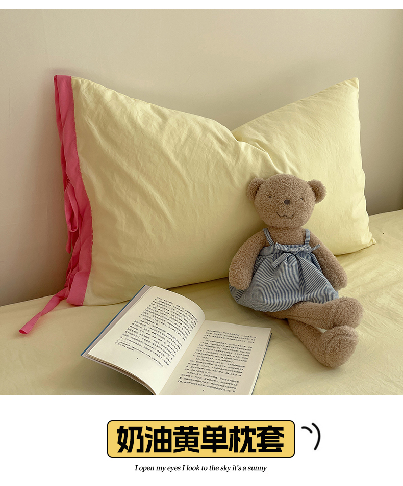 轻奢坊 2025新款水洗棉纯色撞色包边绑带款单品枕套枕套单件 单枕套芝士白