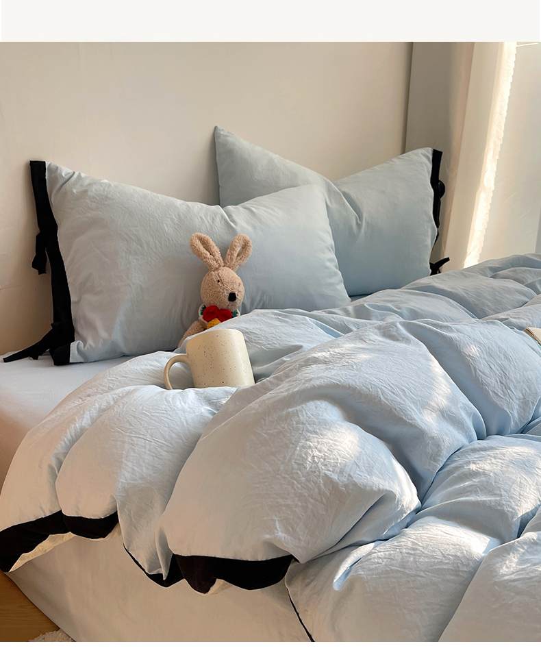 (总)轻奢坊2023新款水洗棉简约款纯色四件套,简约白,简约黑莓,简约黑紫,简约灰,简约蓝,简约绿,简约柔粉,简约树莓红,简约胭粉