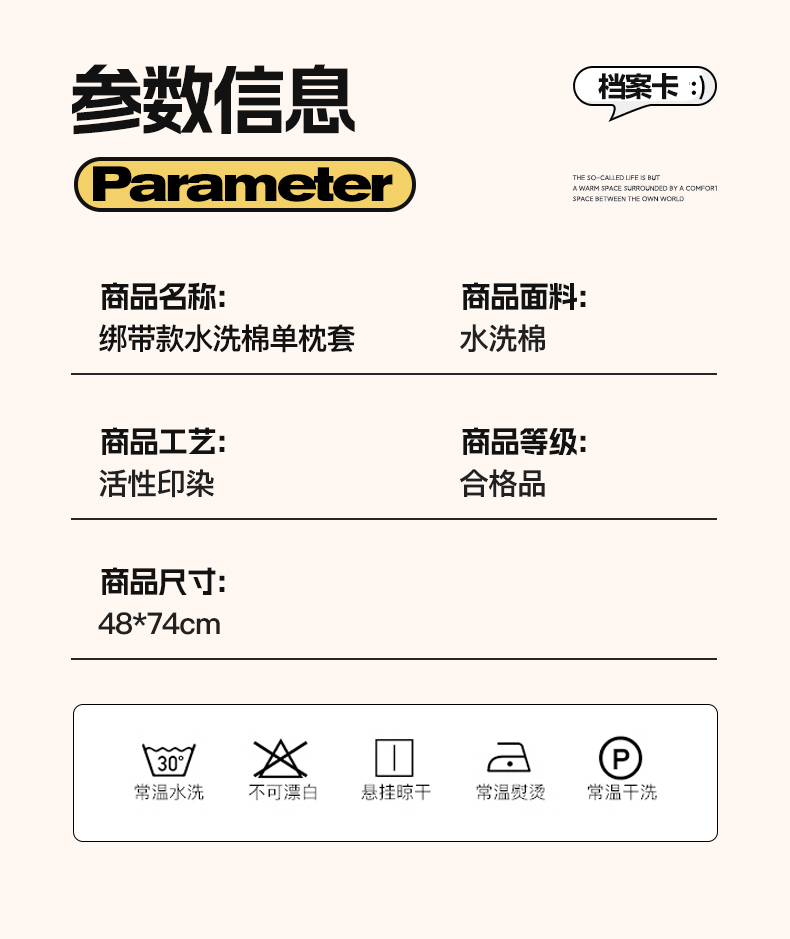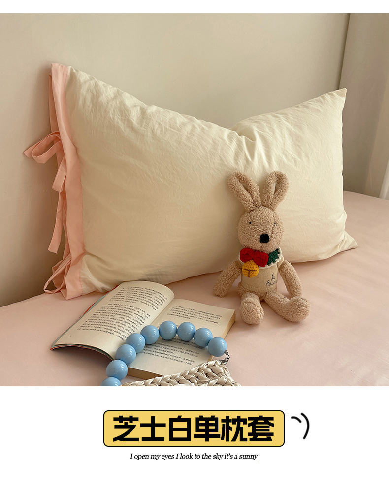 商品名称:轻奢坊 2025新款水洗棉纯色撞色包边绑带款单品枕套枕套单件 单枕套芝士白