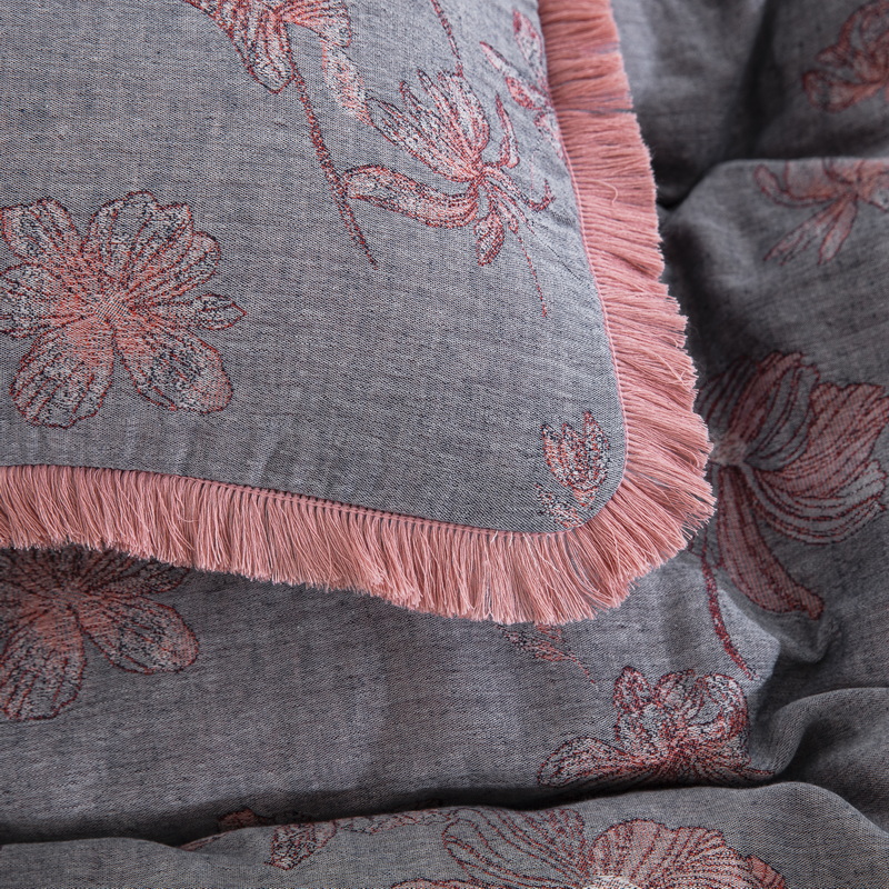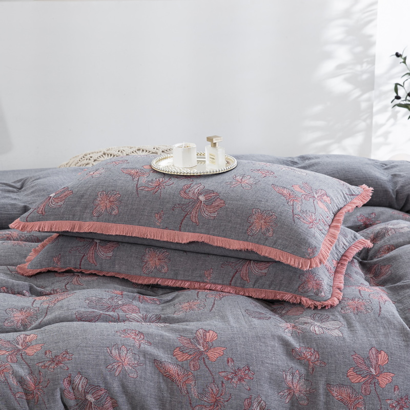 商品名称:鲁爱家纺供货 2025新款简易款双层纱四件套(纯跑量) 岁月如歌-粉灰