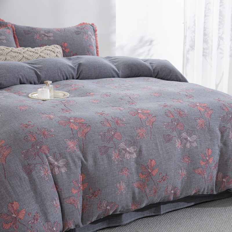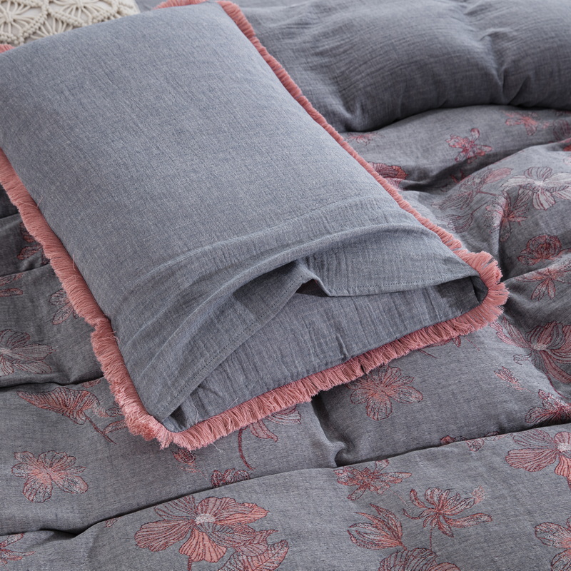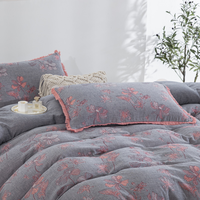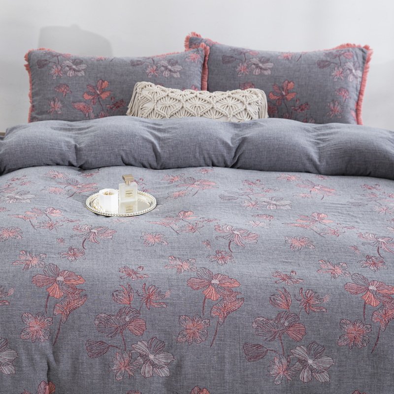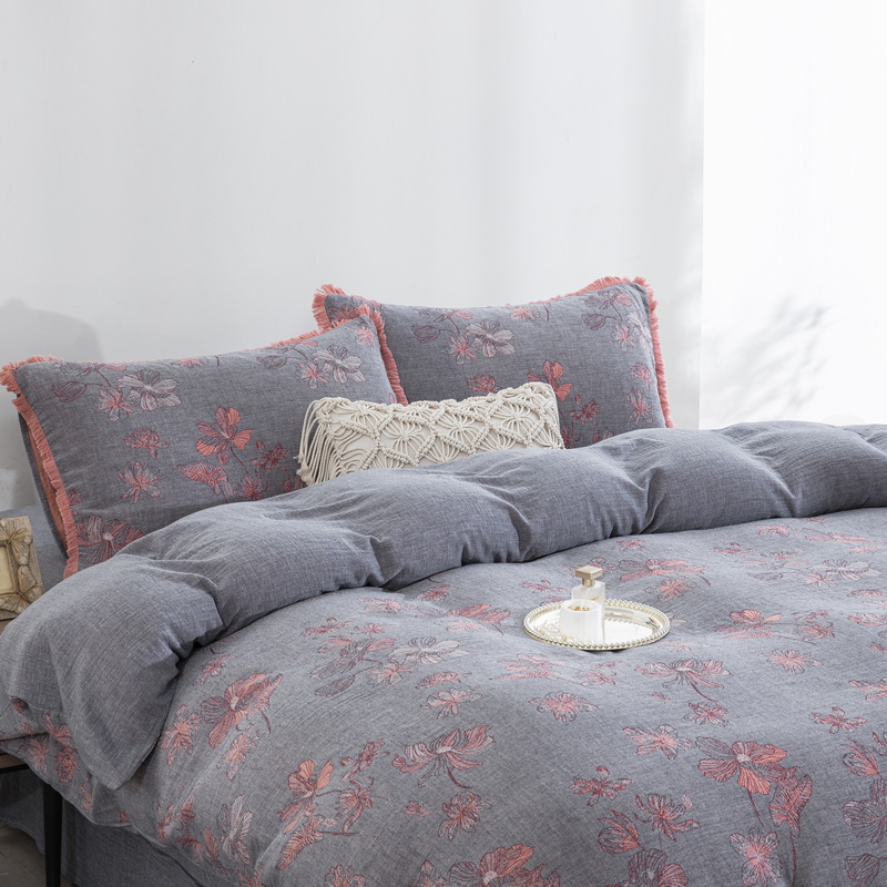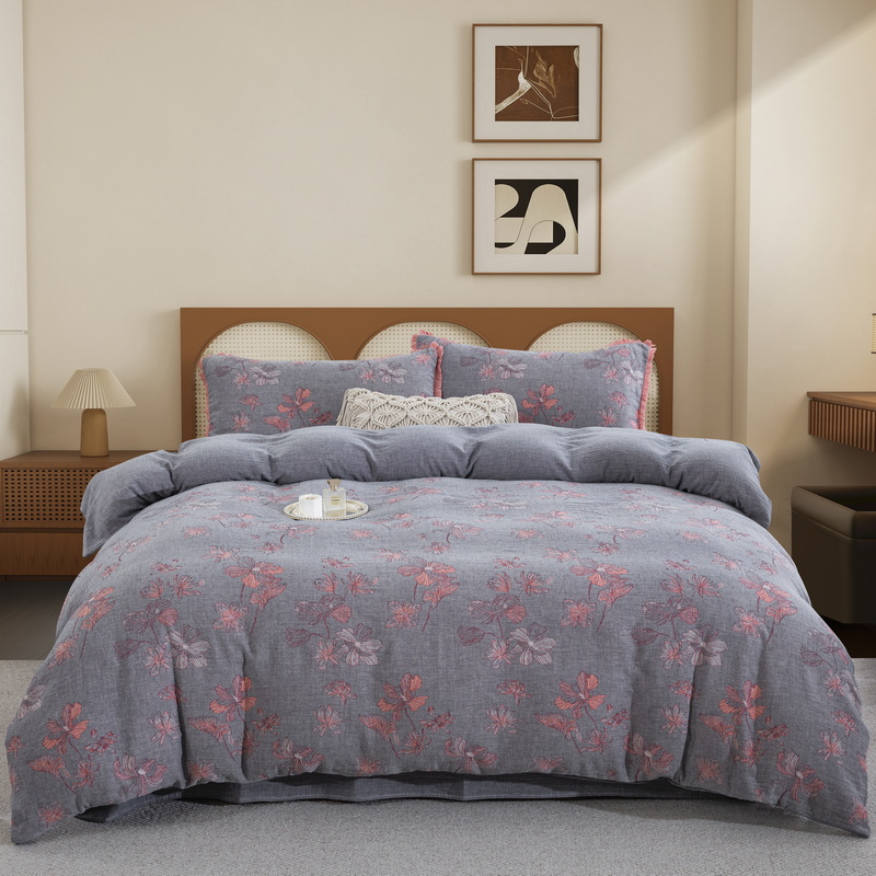 鲁爱家纺供货 2025新款简易款双层纱四件套(纯跑量) 岁月如歌-粉灰