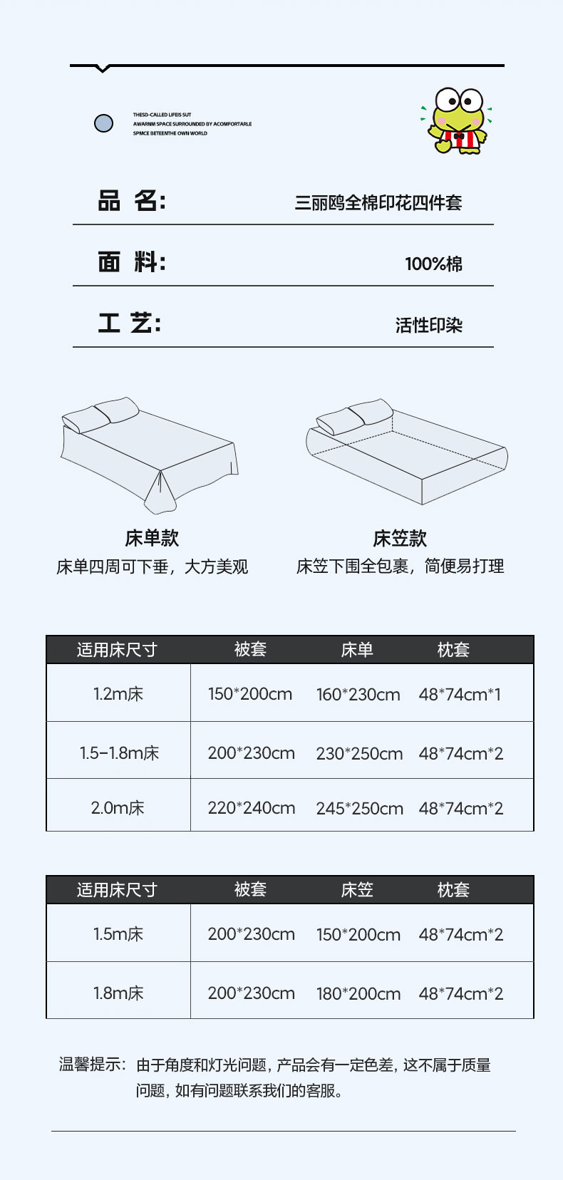3、通州区市场监督局友情提醒,近期涉及到床上用品不褪色不掉毛不缩水的投诉和以世界知名品牌图案为面料的床品举报较多。请各商家自检自查,对照整改或进行下架处理。