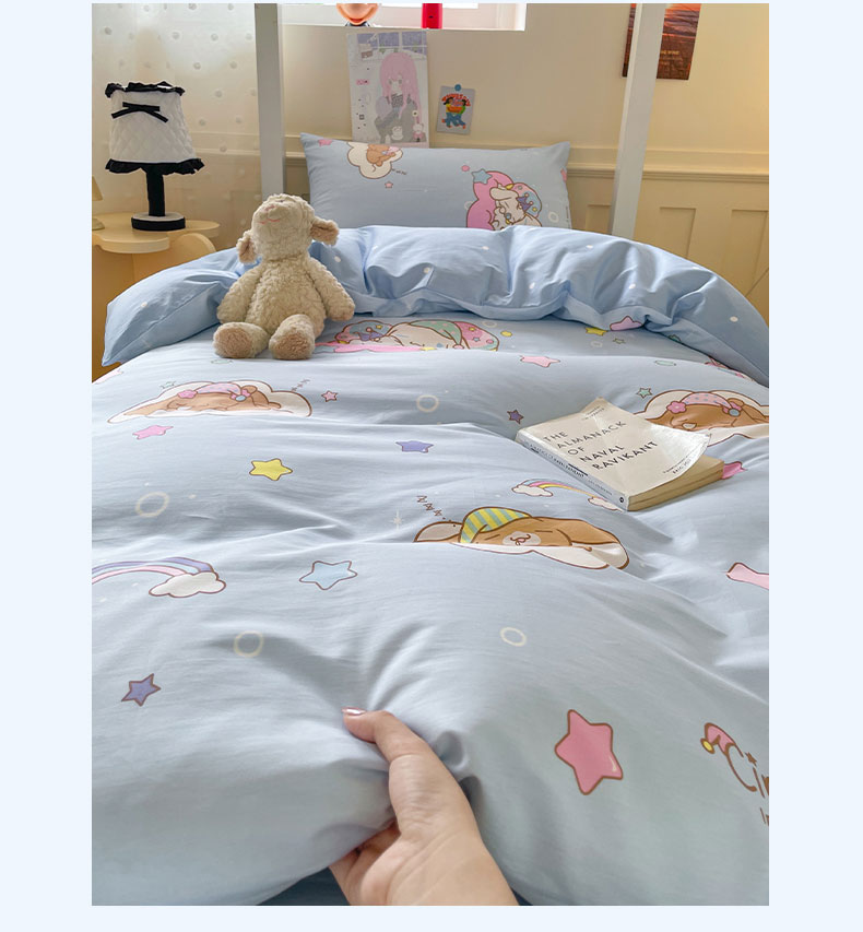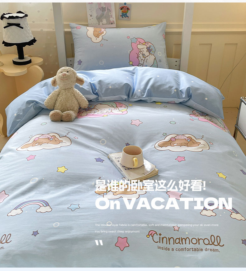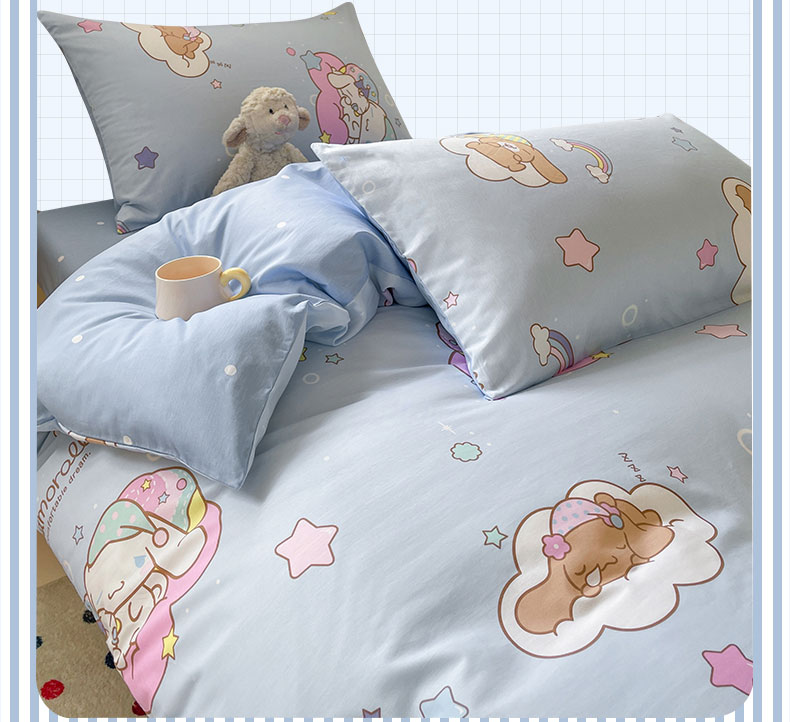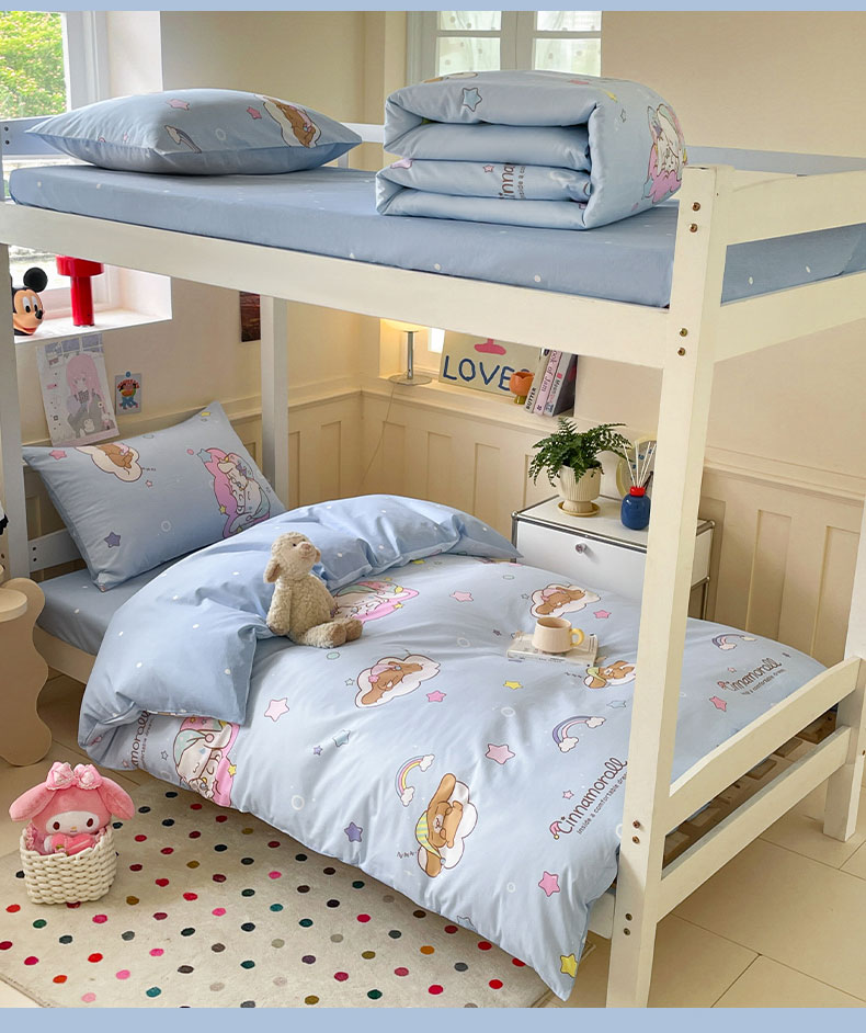 蓝邻家纺 2025年新款三丽鸥正版授权全棉印花四件套系列-学生床 彩虹玉桂狗