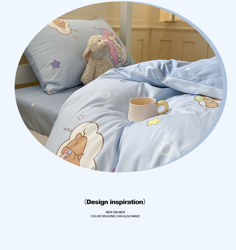 (总)蓝邻家纺 2024新款小清新印花全棉四件套学生宿舍三件套,茶园兔,风翩,机灵兔熊,可妮露,藤蔓兔,筱薇
