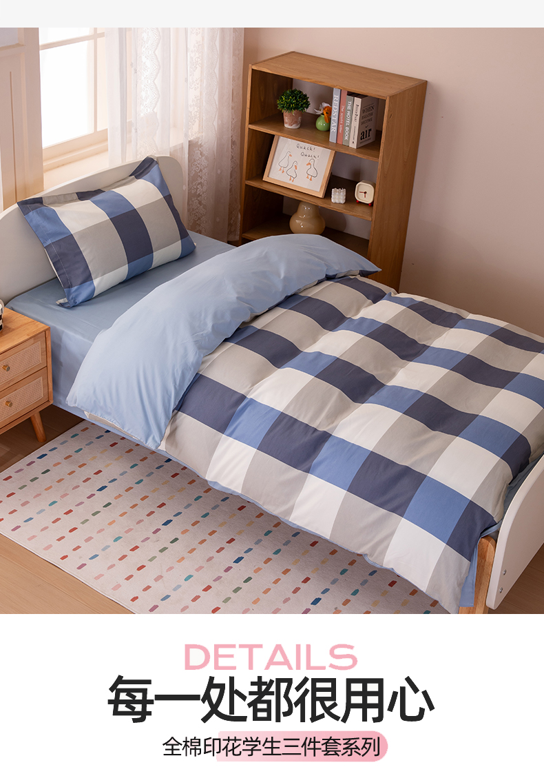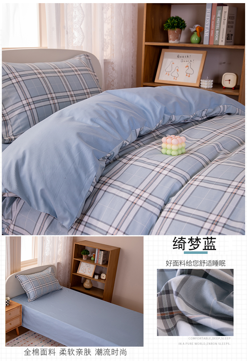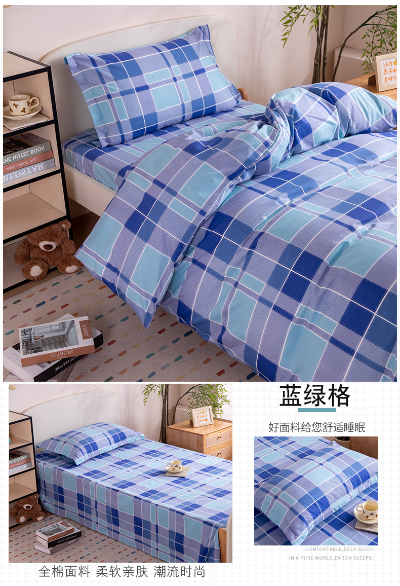 当前位置: 91家纺网 > 商品网购 > 床品套件 > 三件套 > 凌云家纺 2025新款13372全棉纯棉学生床单款三件套上下铺宿舍六件套一整套 蓝大格蓝