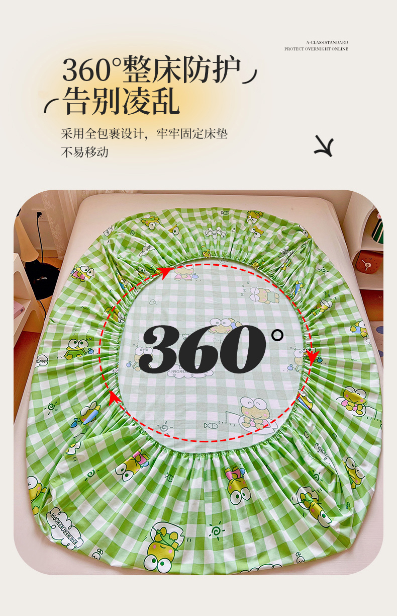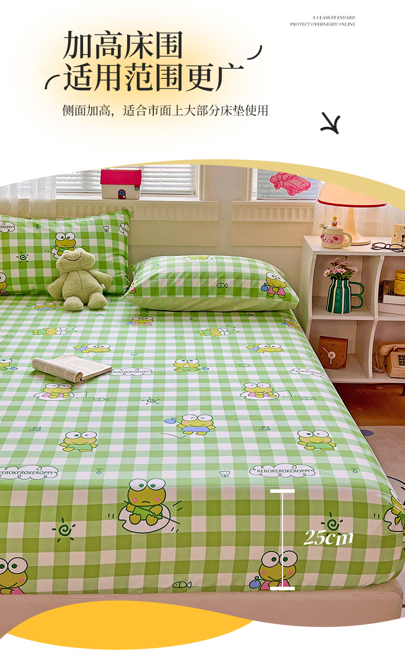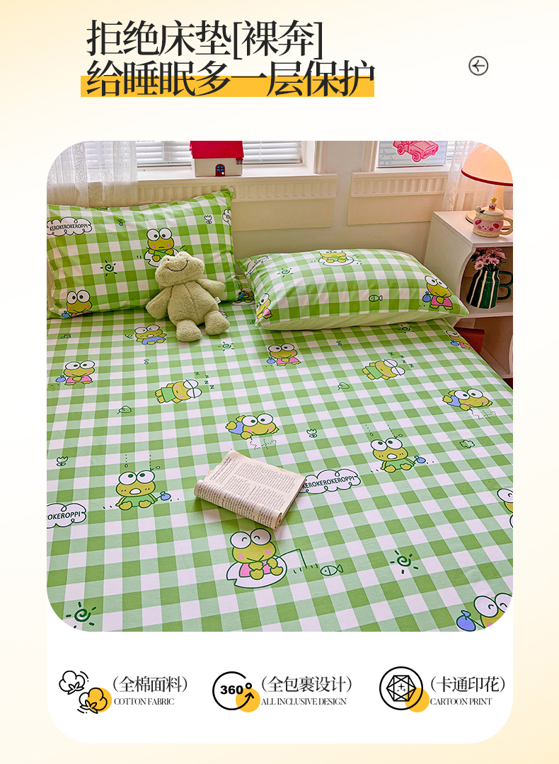 • 91家纺网 家纺一手货源 找家纺 名兮家居 2025新款全棉纯棉13372经典奥特曼-三丽鸥成人床床笠单件单床笠【含防伪标】 格子大眼蛙