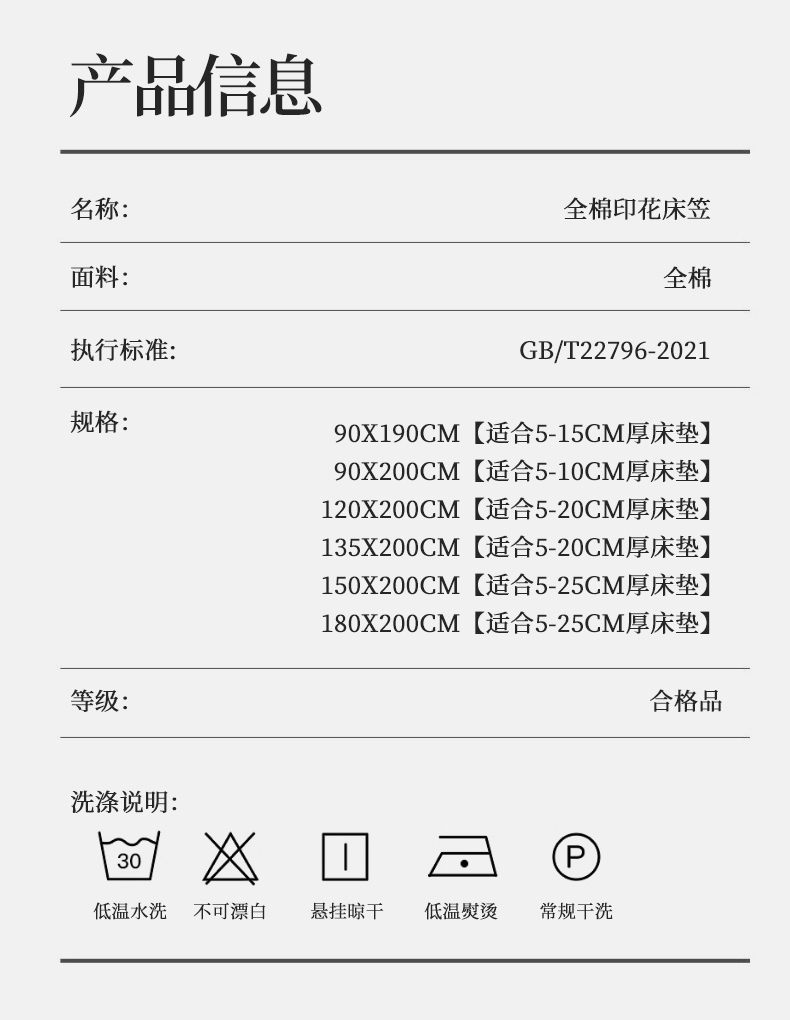 150x200cm单床笠【适合5-25cm厚床垫】