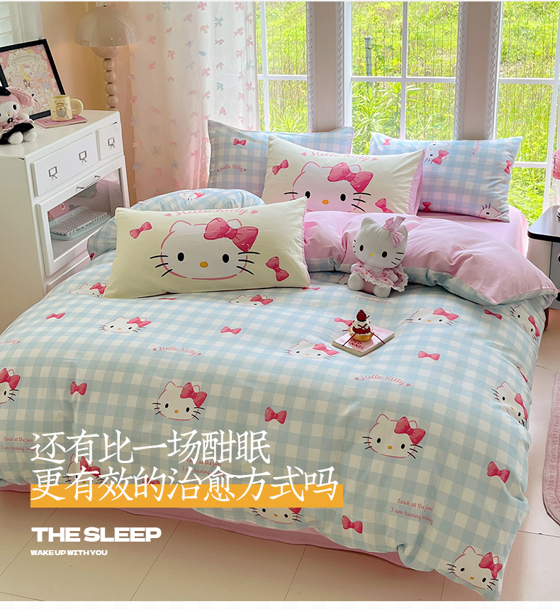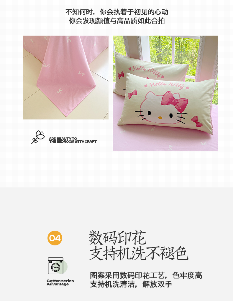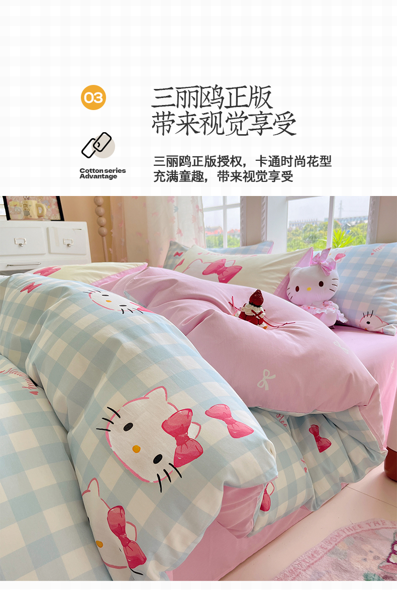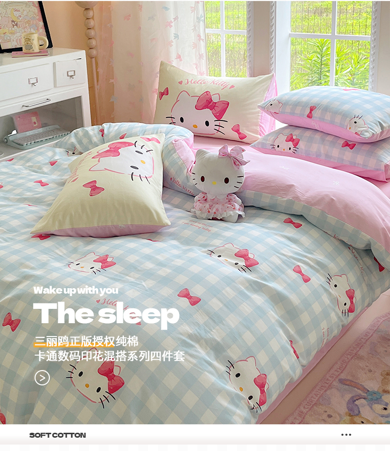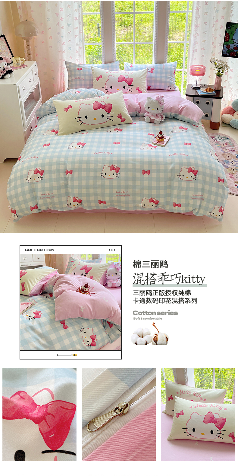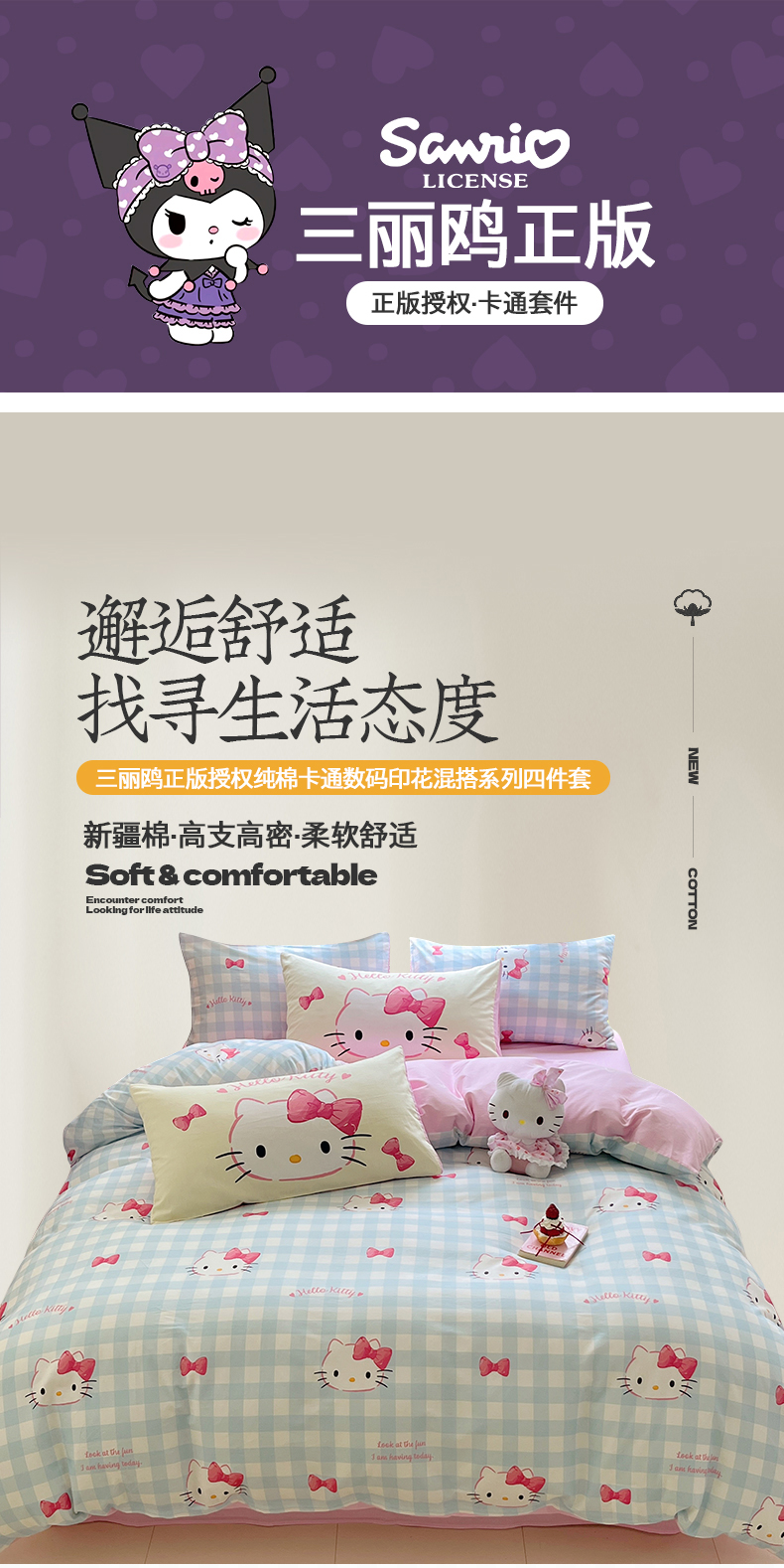 当前位置: 91家纺网 > 商品网购 > 床品套件 > 四件套 > 全棉普通四件套 > 金爱家2025新款三丽鸥正版授权卡通数码印花混搭纯棉印花系列四件套 棉三丽鸥-混搭乖巧kitty