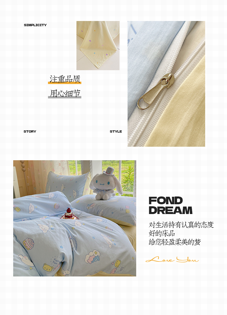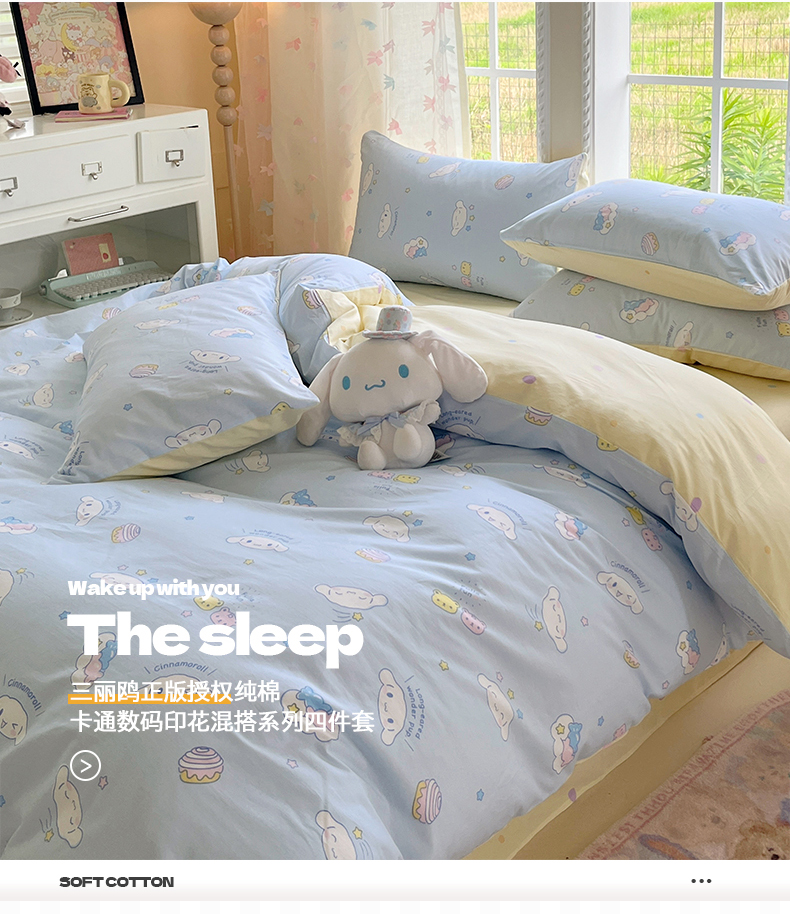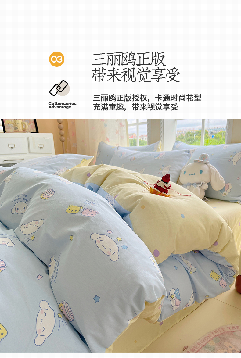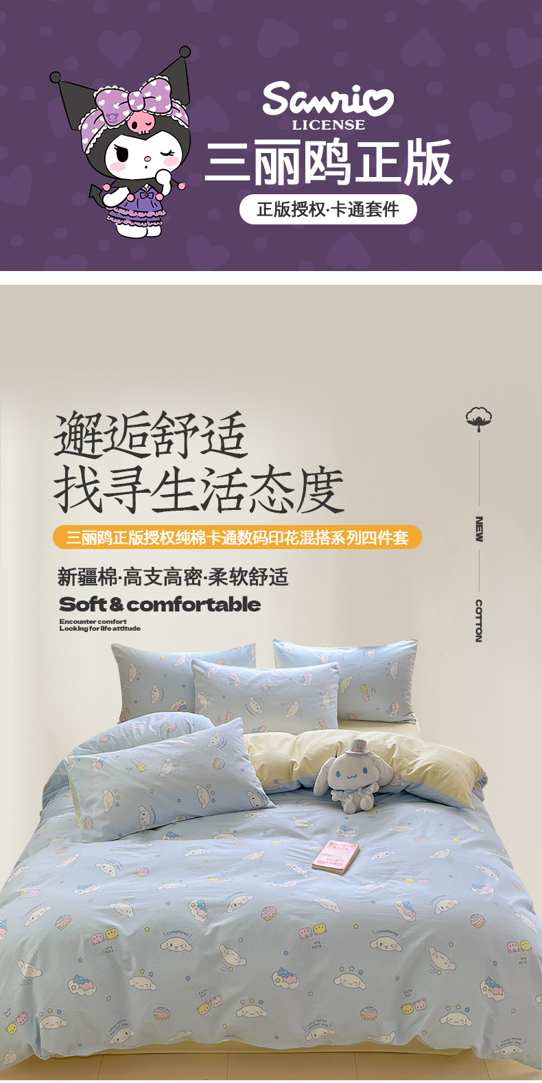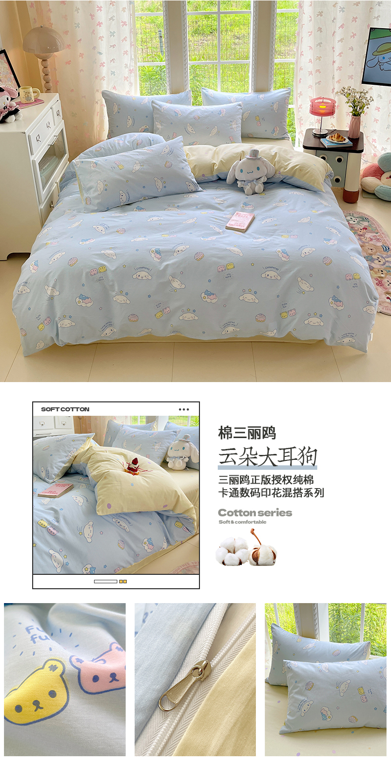 当前位置: 91家纺网 > 商品网购 > 床品套件 > 四件套 > 全棉普通四件套 > 金爱家2025新款三丽鸥正版授权卡通数码印花混搭纯棉印花系列四件套 棉三丽鸥-云朵大耳狗
