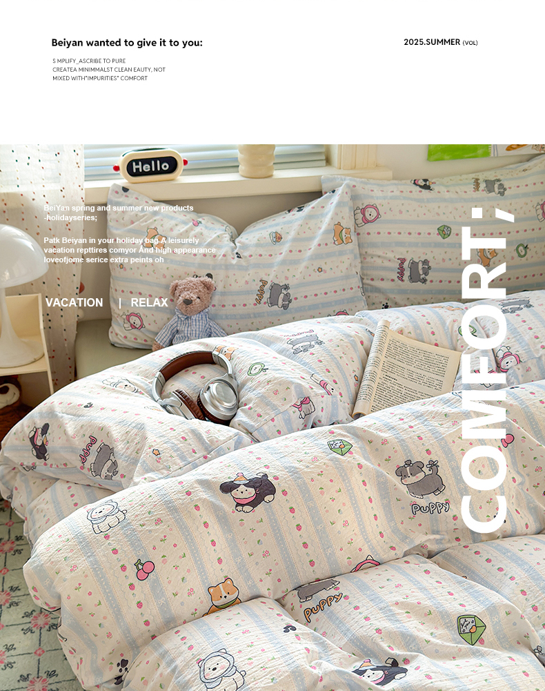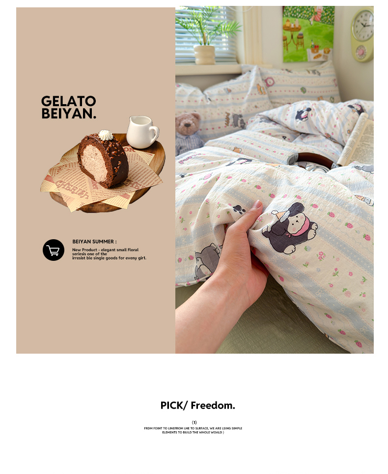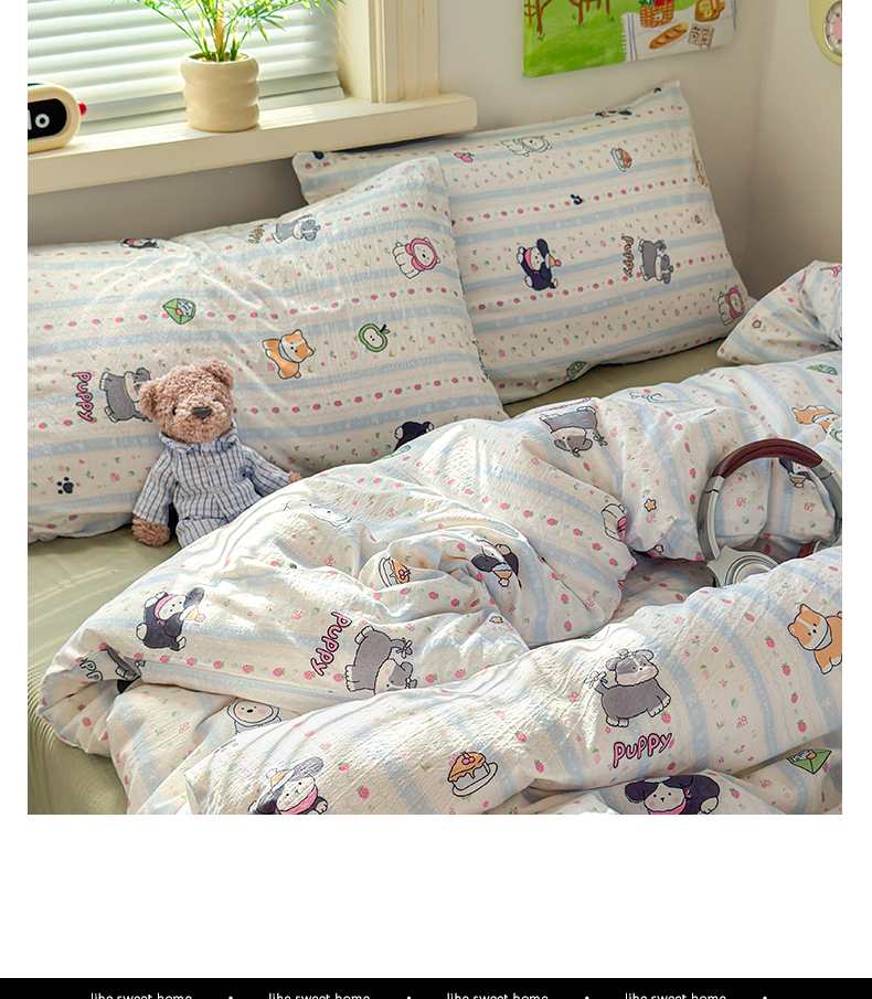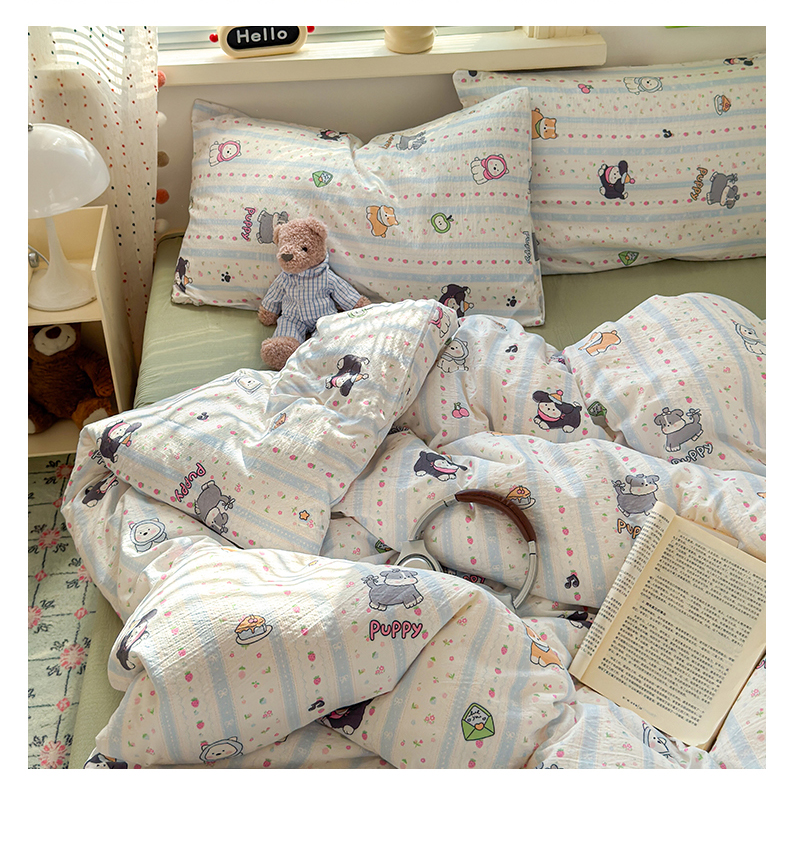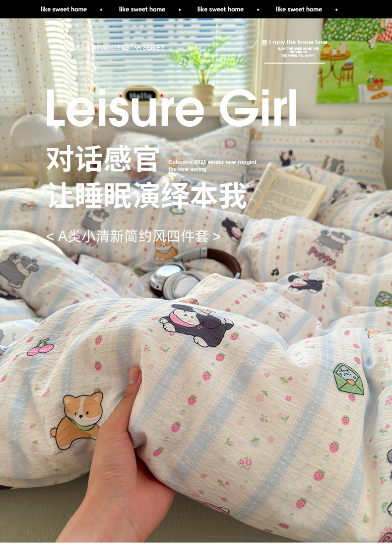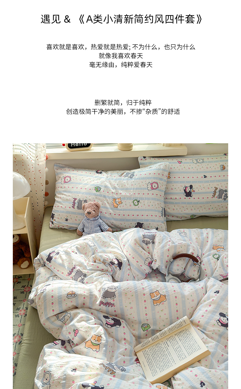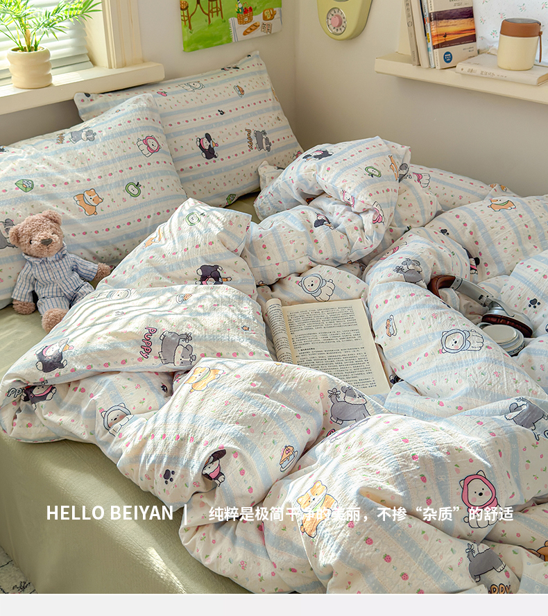 当前位置: 91家纺网 > 商品网购 > 床品套件 > 四件套 > 双层纱四件套 > 沐芷 2025 A类木棉双层纱简约风床上四件套柔软手感宿舍三件套 可爱贝贝