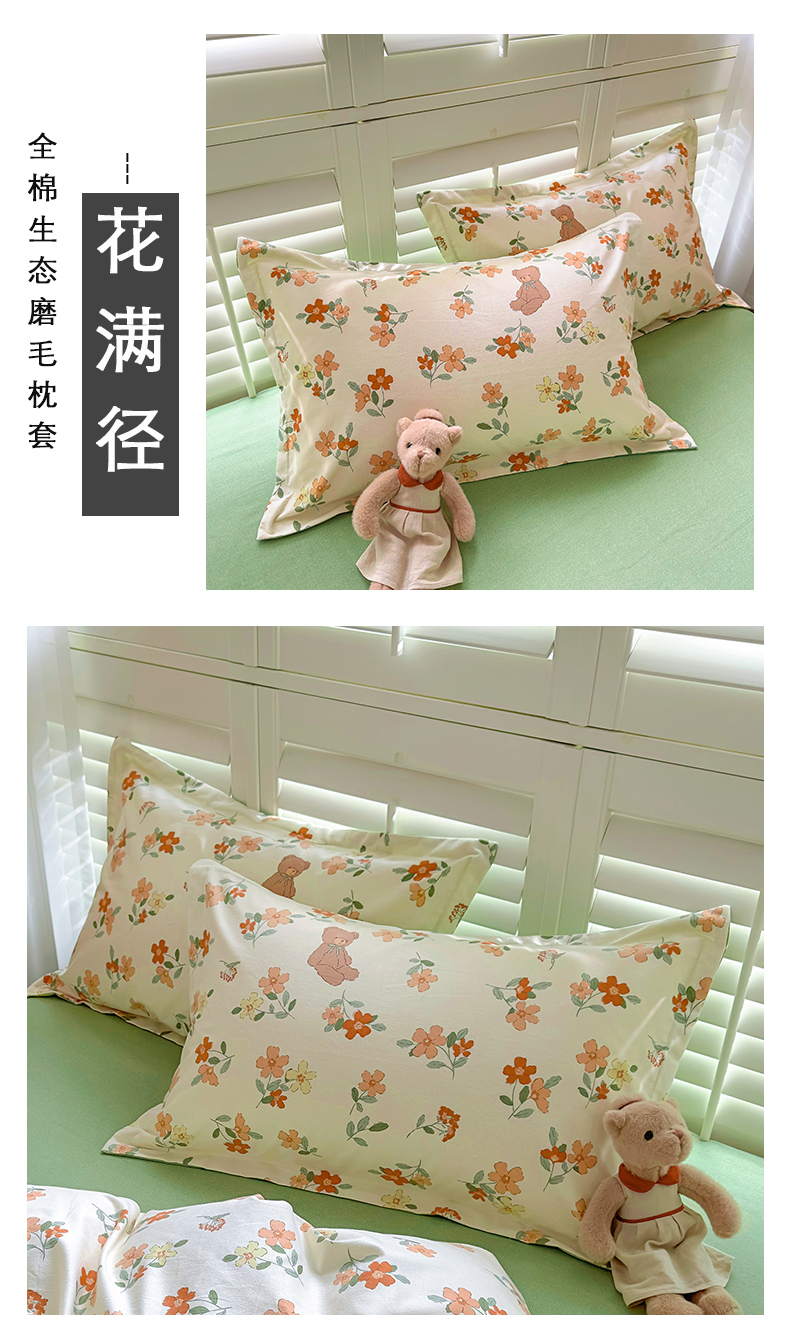 (总)百寐 2025新款秋冬全棉生态磨毛印花单品枕套48*74cm单只一对枕芯保护套,高岭花,花满径,花诺柔,花千朵,锦绣绿,兰郁香,落山秋,玫瑰露,萌萌狗,墨如玉,宁梵西,牵牛花,叹花郁,小甜心
