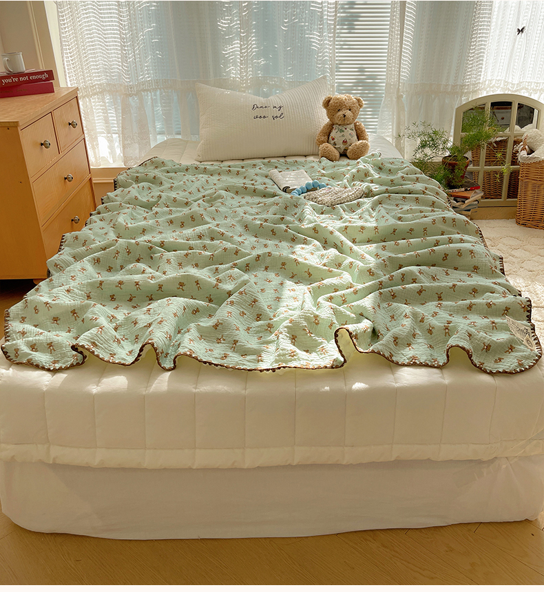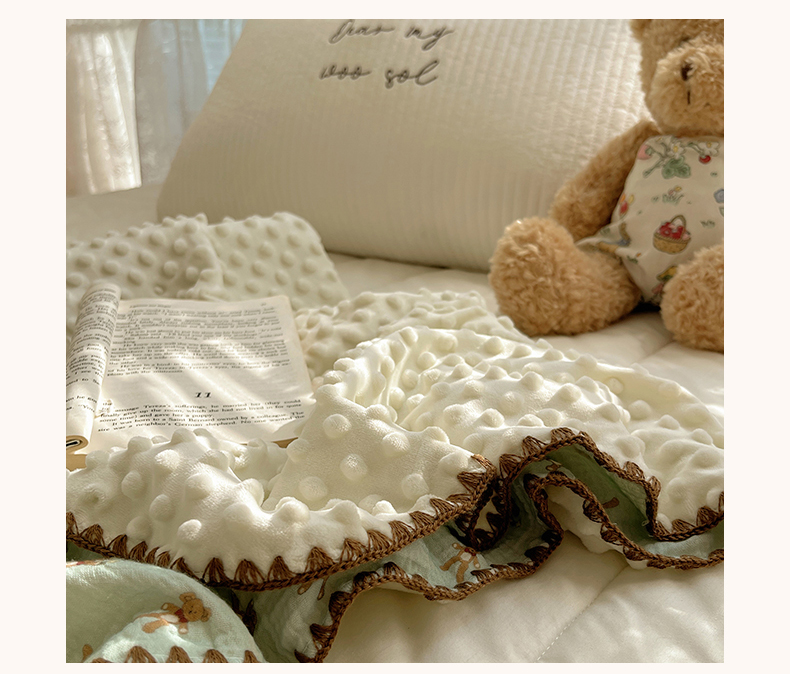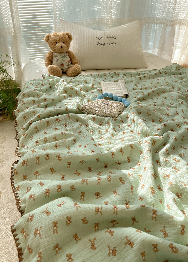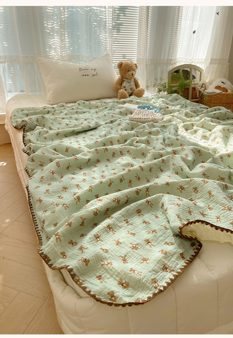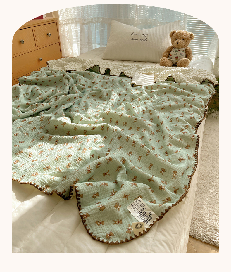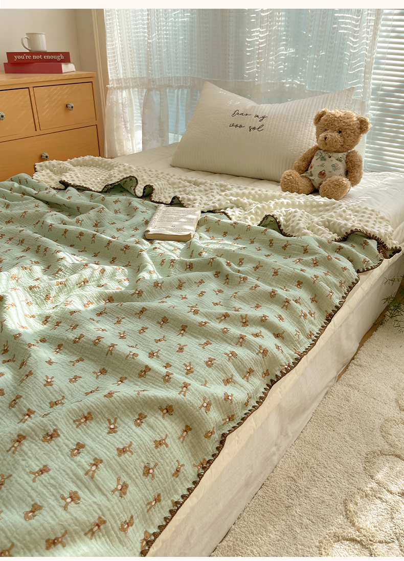 三朵家纺 2025新款全棉纯棉绉绉纱+宝宝绒多功能毯盖毯毯子 复古小熊