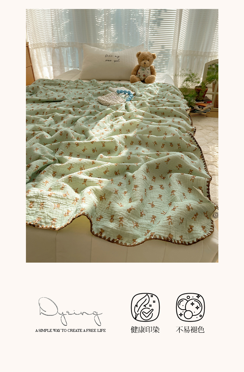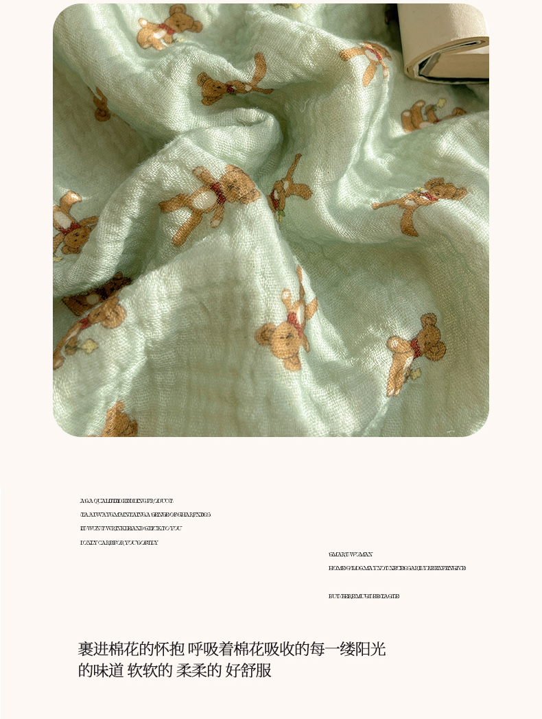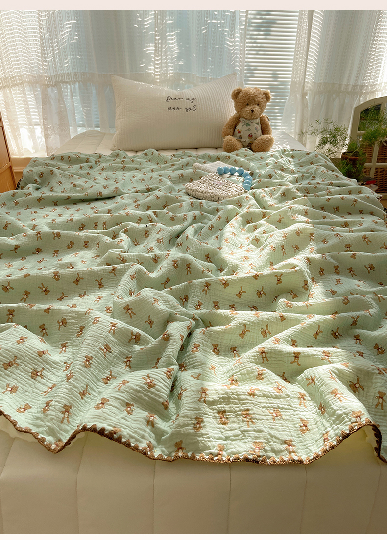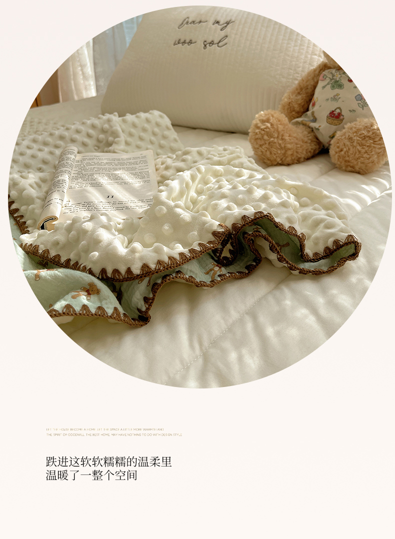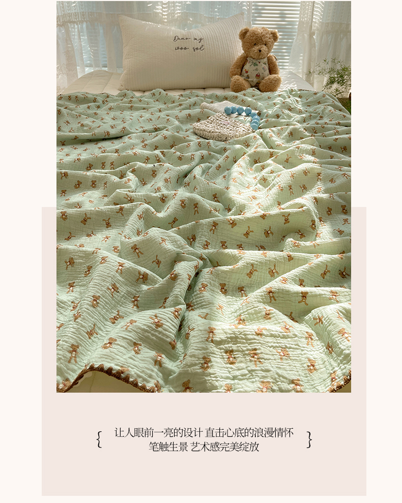 商品名称:三朵家纺 2025新款全棉纯棉绉绉纱+宝宝绒多功能毯盖毯毯子 复古小熊