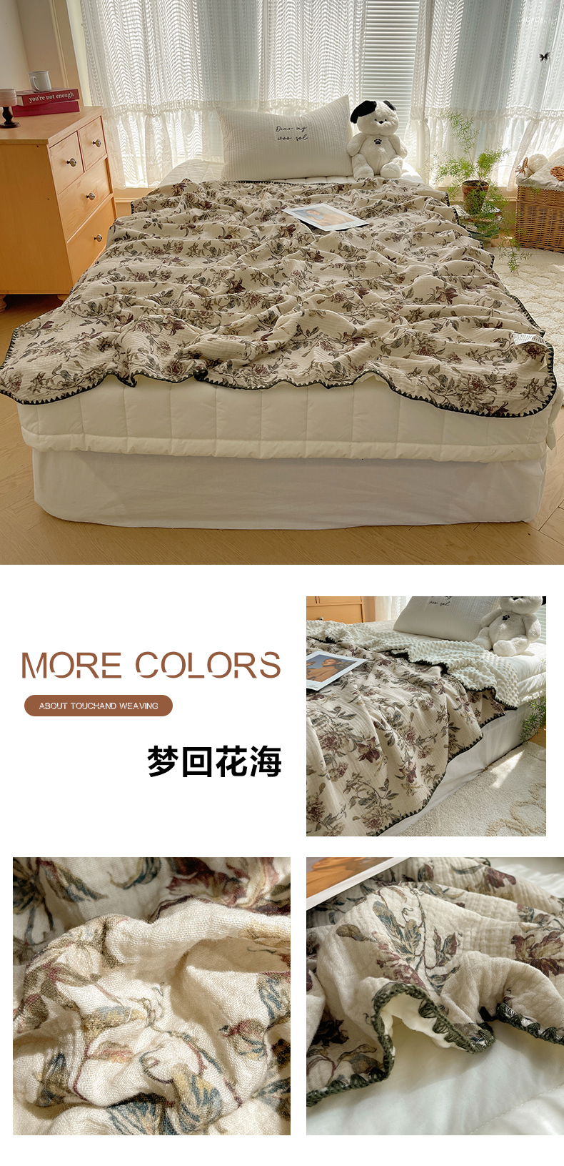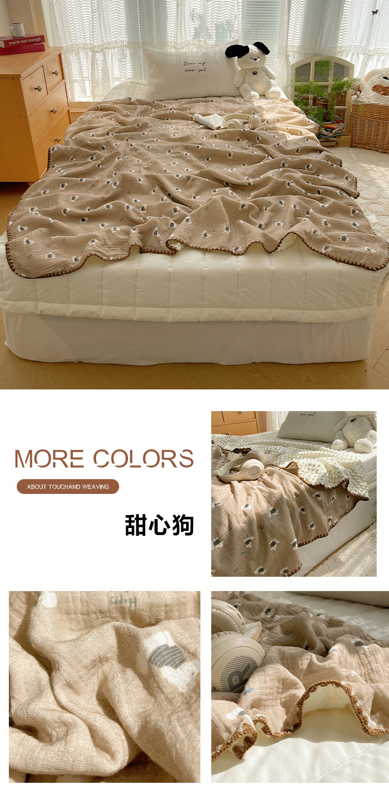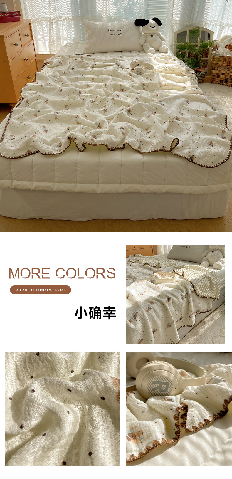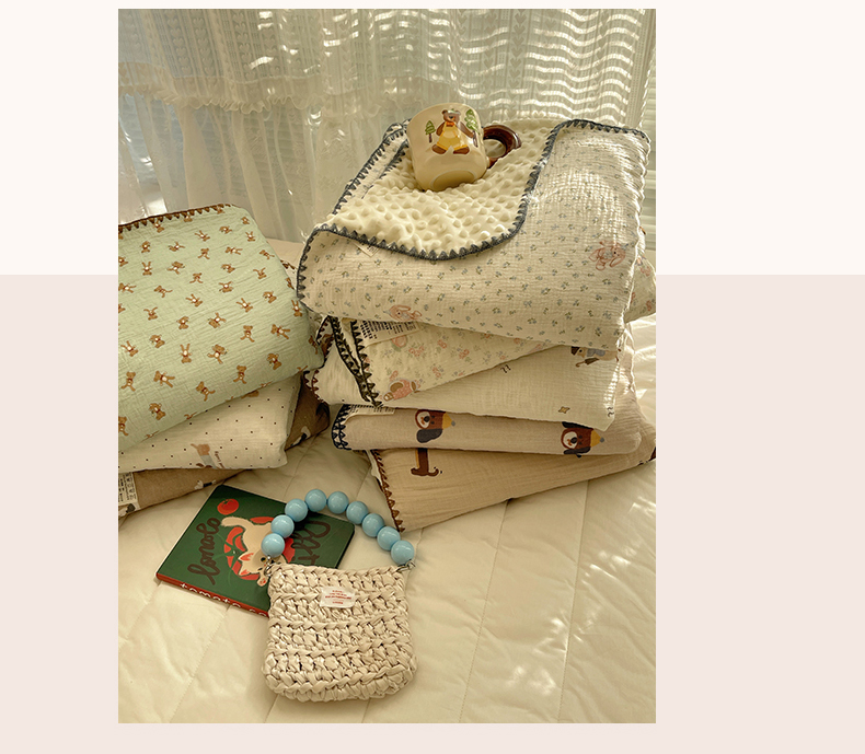 商品名称:三朵家纺 2025新款全棉纯棉绉绉纱+宝宝绒多功能毯盖毯毯子 复古小熊