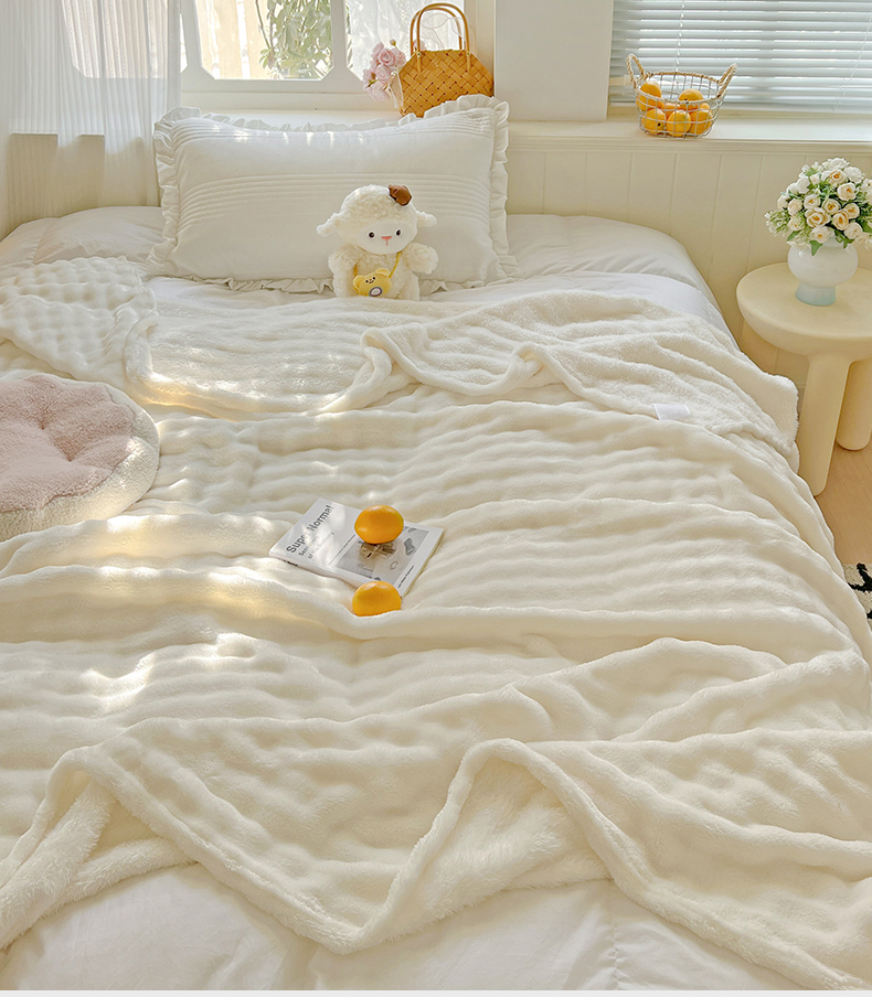 耀悦家纺 2025秋冬暖阳泡泡高克重牛奶绒双面泡泡毛毯毯子多功能盖毯外贸批发 暖阳泡泡-尘灰