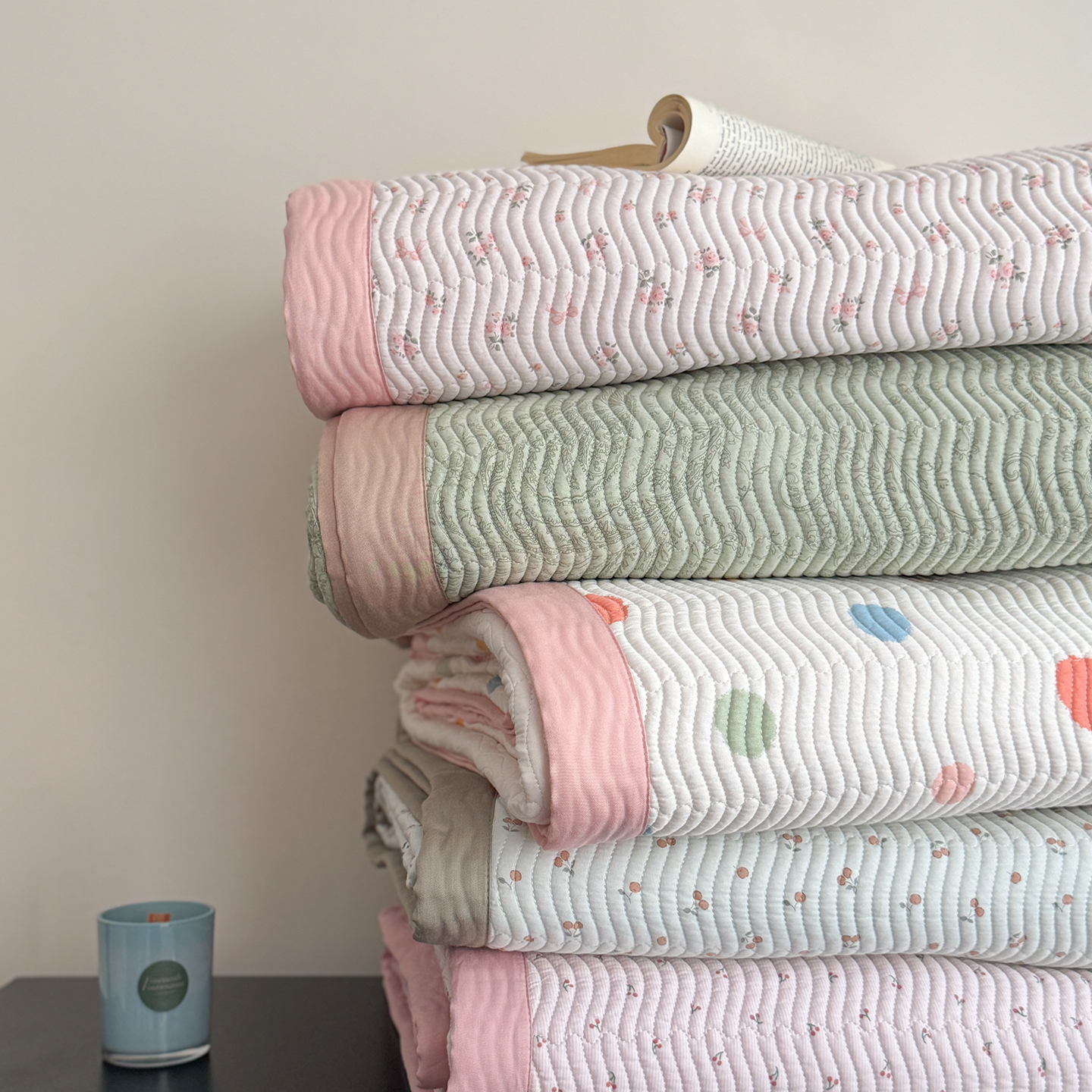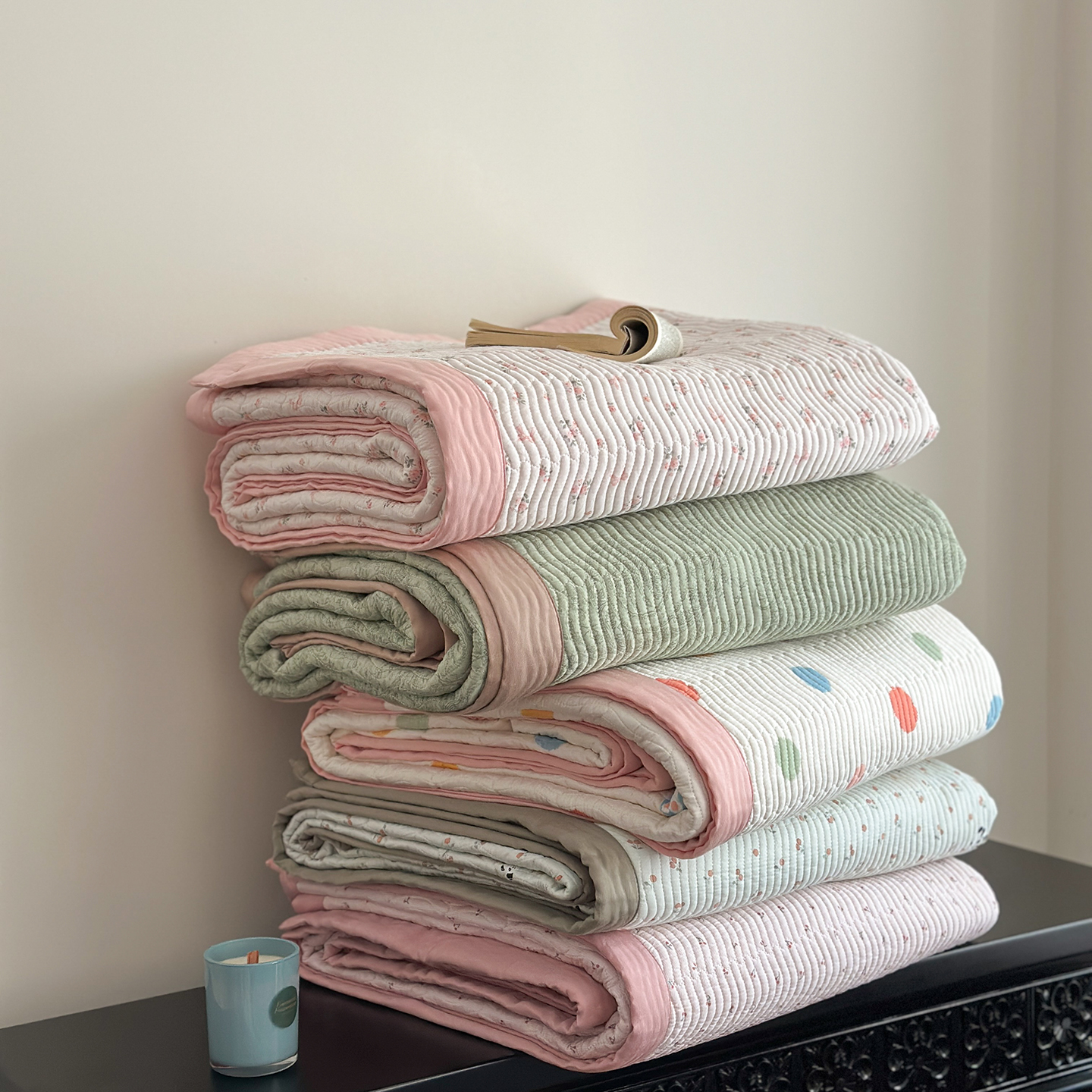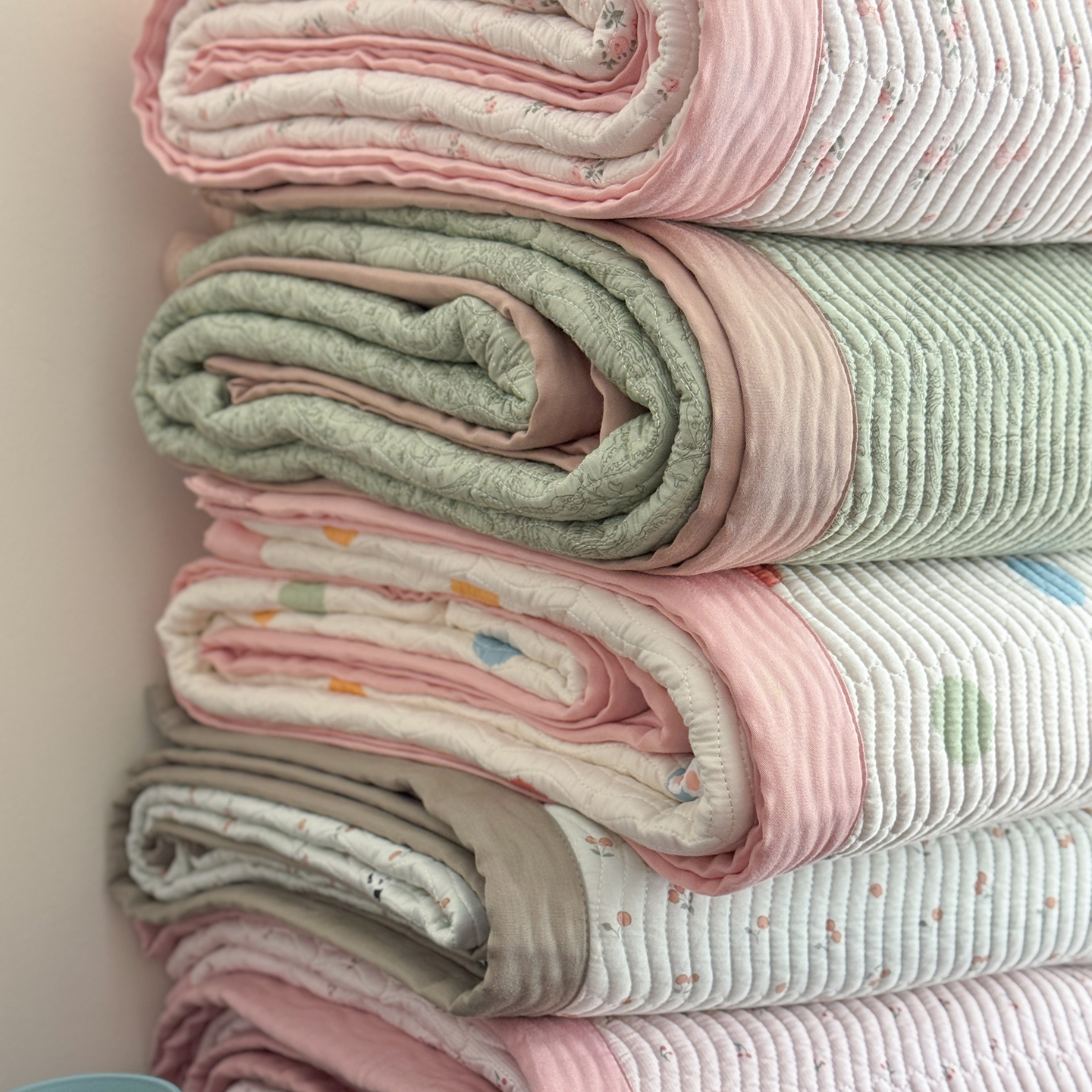 (总)麦伦家居 2025新品双层纱锦纶双面冰纱夏被系列,薄荷初夏,彩虹条,春意,粉格蝴蝶结,花茶绿,可爱多,蜡笔画蓝,帽子小熊,莓莓芝士粉,山茶粉,夏日冰激凌,小萝卜,小星星,休闲午后蓝,枕边话,组合展示