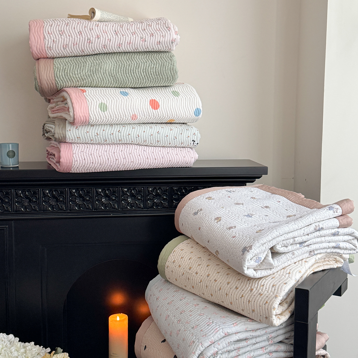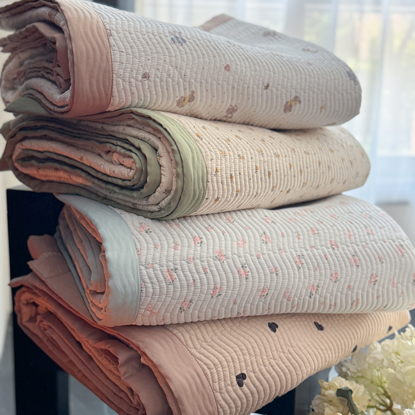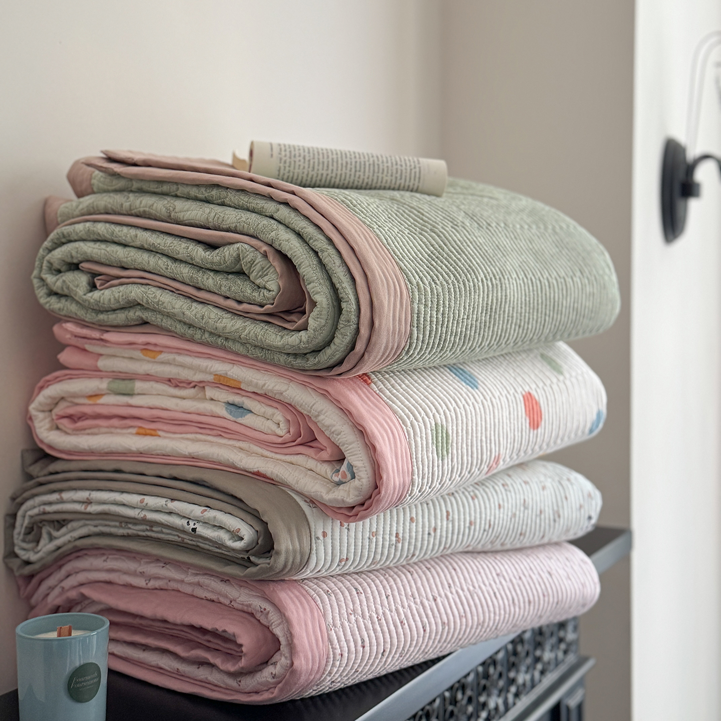 (总)麦伦家居 2025新品双层纱锦纶双面冰纱夏被系列,薄荷初夏,彩虹条,春意,粉格蝴蝶结,花茶绿,可爱多,蜡笔画蓝,帽子小熊,莓莓芝士粉,山茶粉,夏日冰激凌,小萝卜,小星星,休闲午后蓝,枕边话,组合展示
