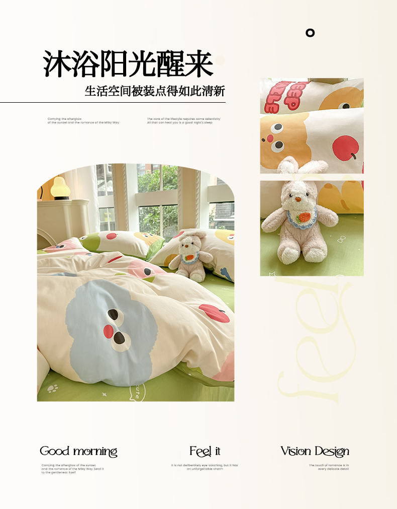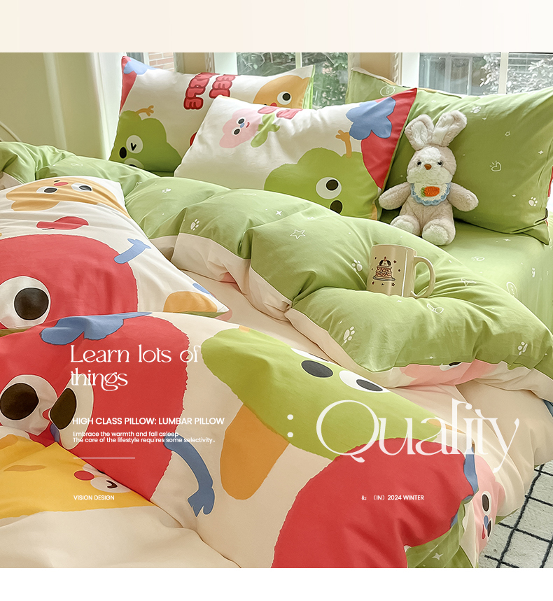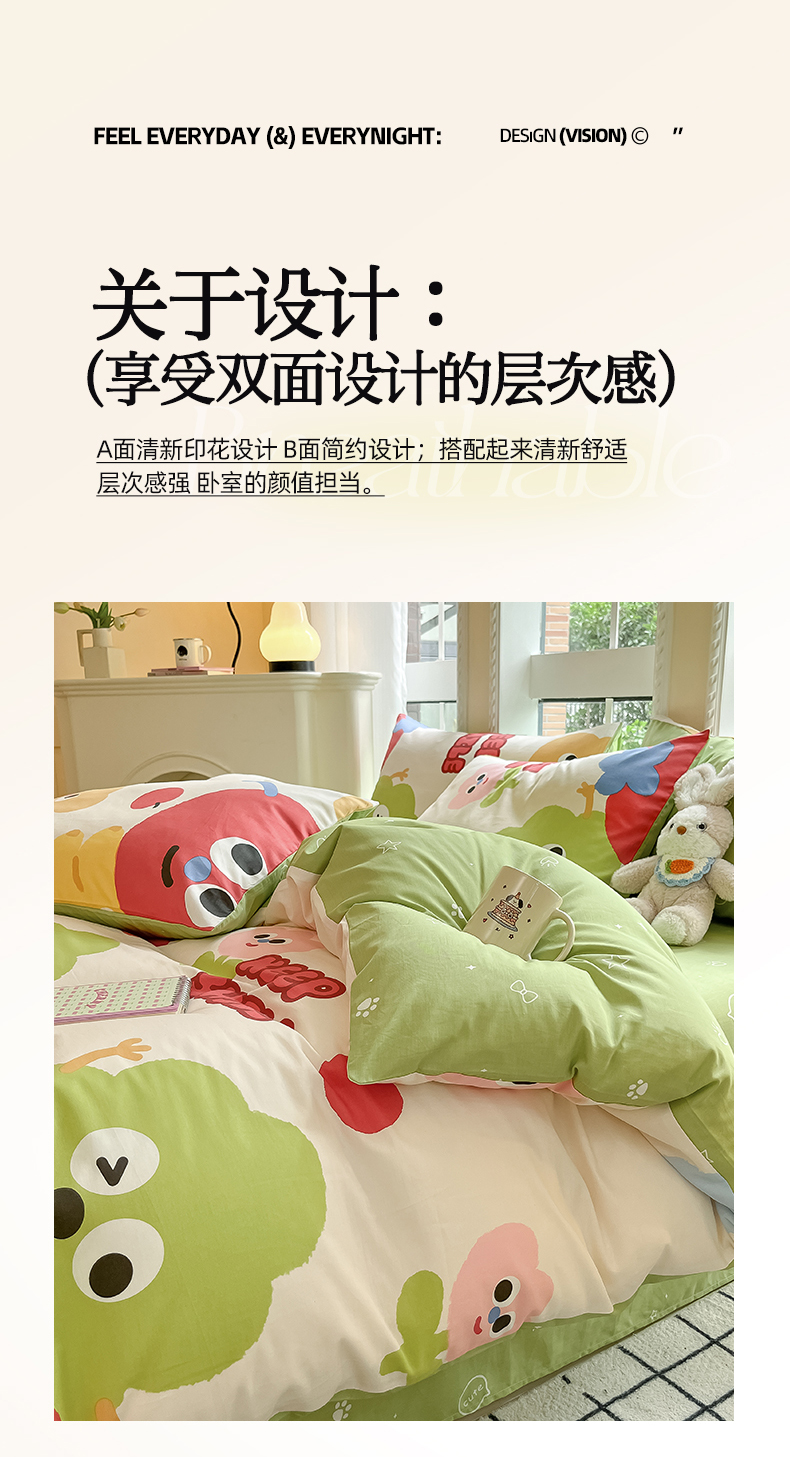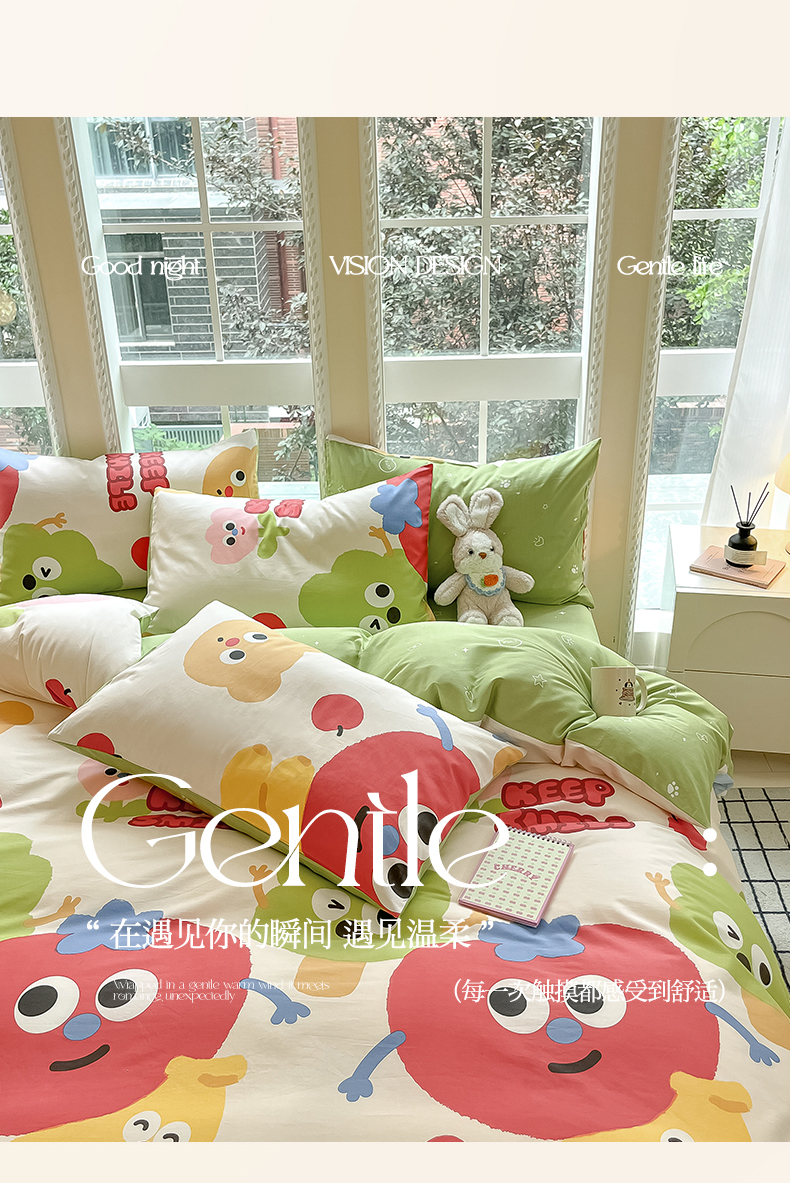 当前位置: 91家纺网 > 商品网购 > 床品套件 > 四件套 > 全棉普通四件套 > 吉象家纺 2025新款亲肤舒适全棉纯棉小清新卡通系列四件套 微笑天团
