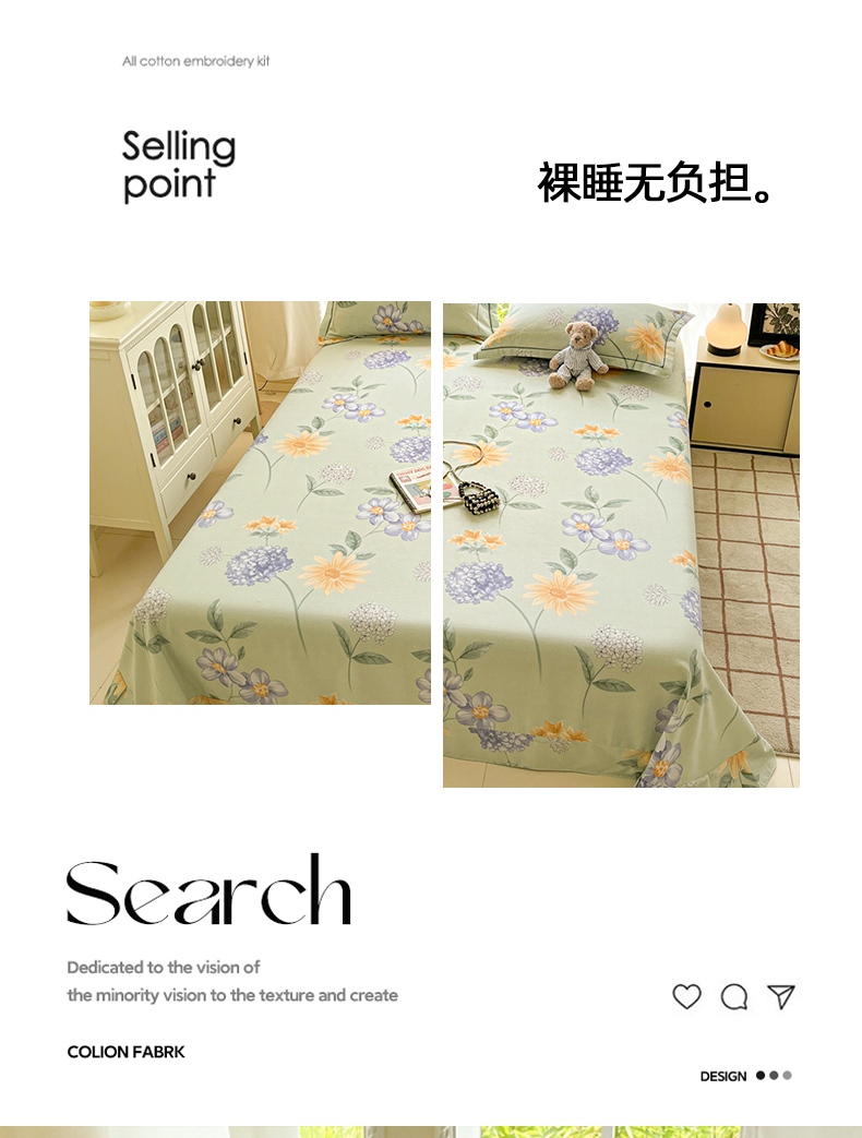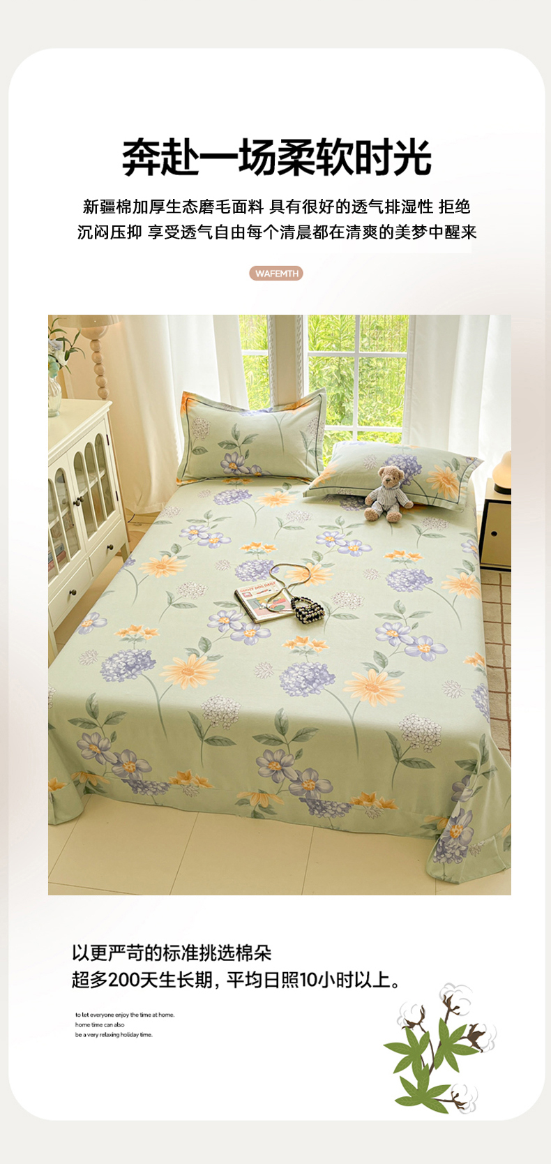 商品名称:莱通家纺 2025新款新疆棉加厚生态磨毛印花系列单床单单品床单单件床单 春天里