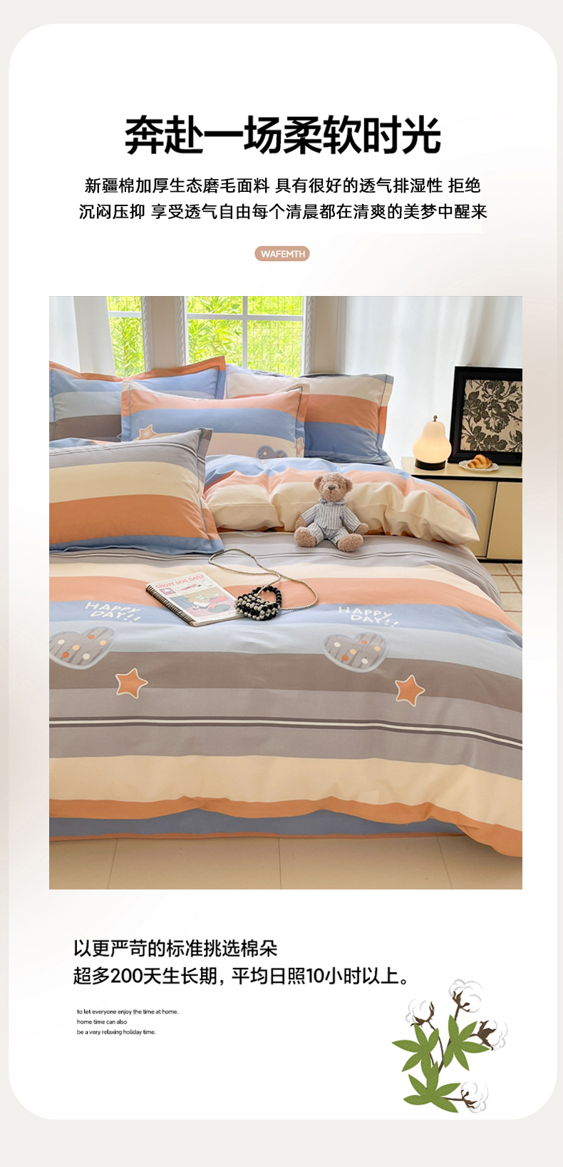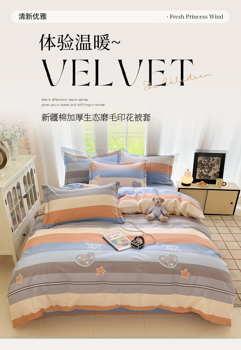 商品名称:莱通家纺 2025新款新疆棉加厚生态磨毛印花单被套 阿勒泰桔