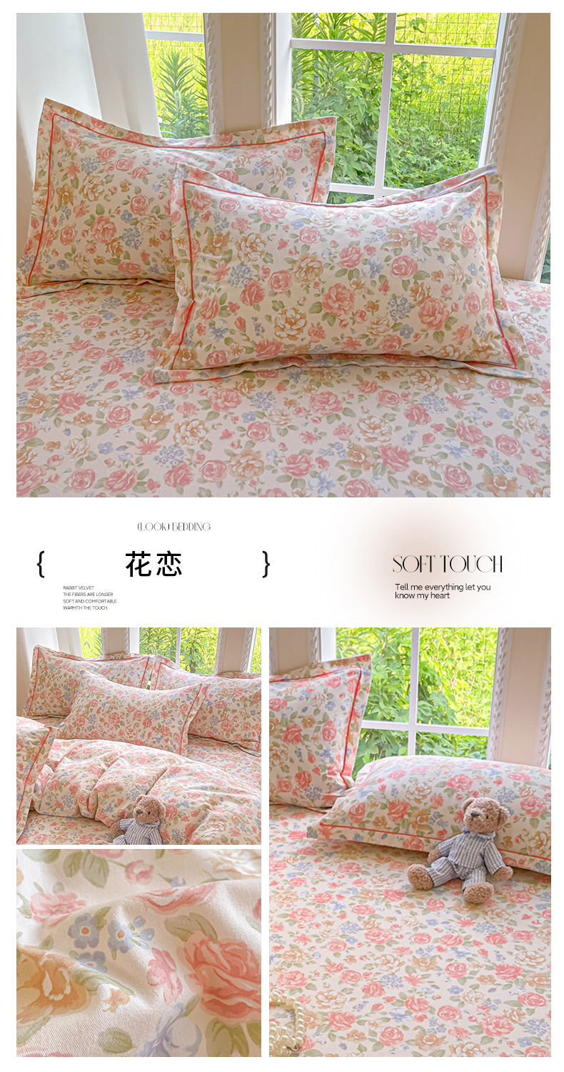 商品名称:莱通家纺 2025新款新疆棉加厚生态磨毛印花单枕套 花恋