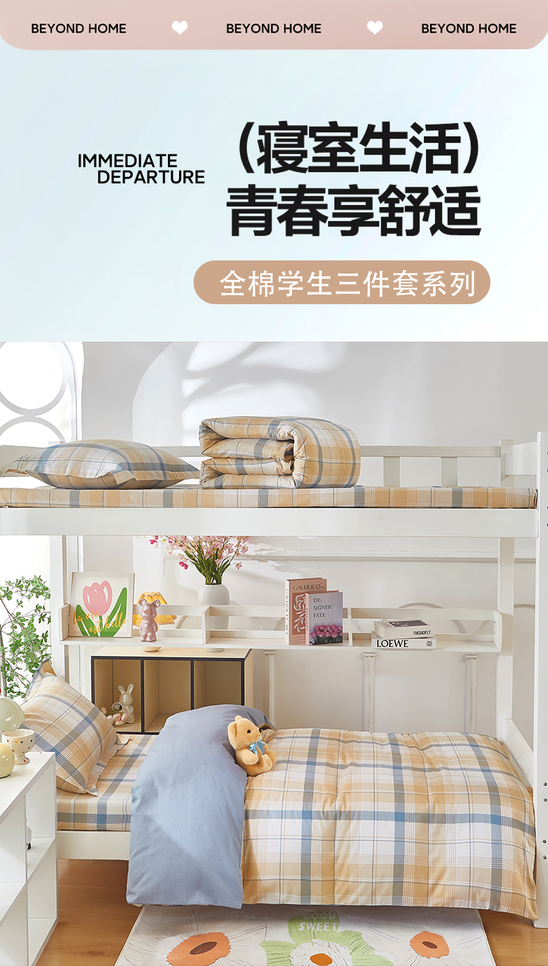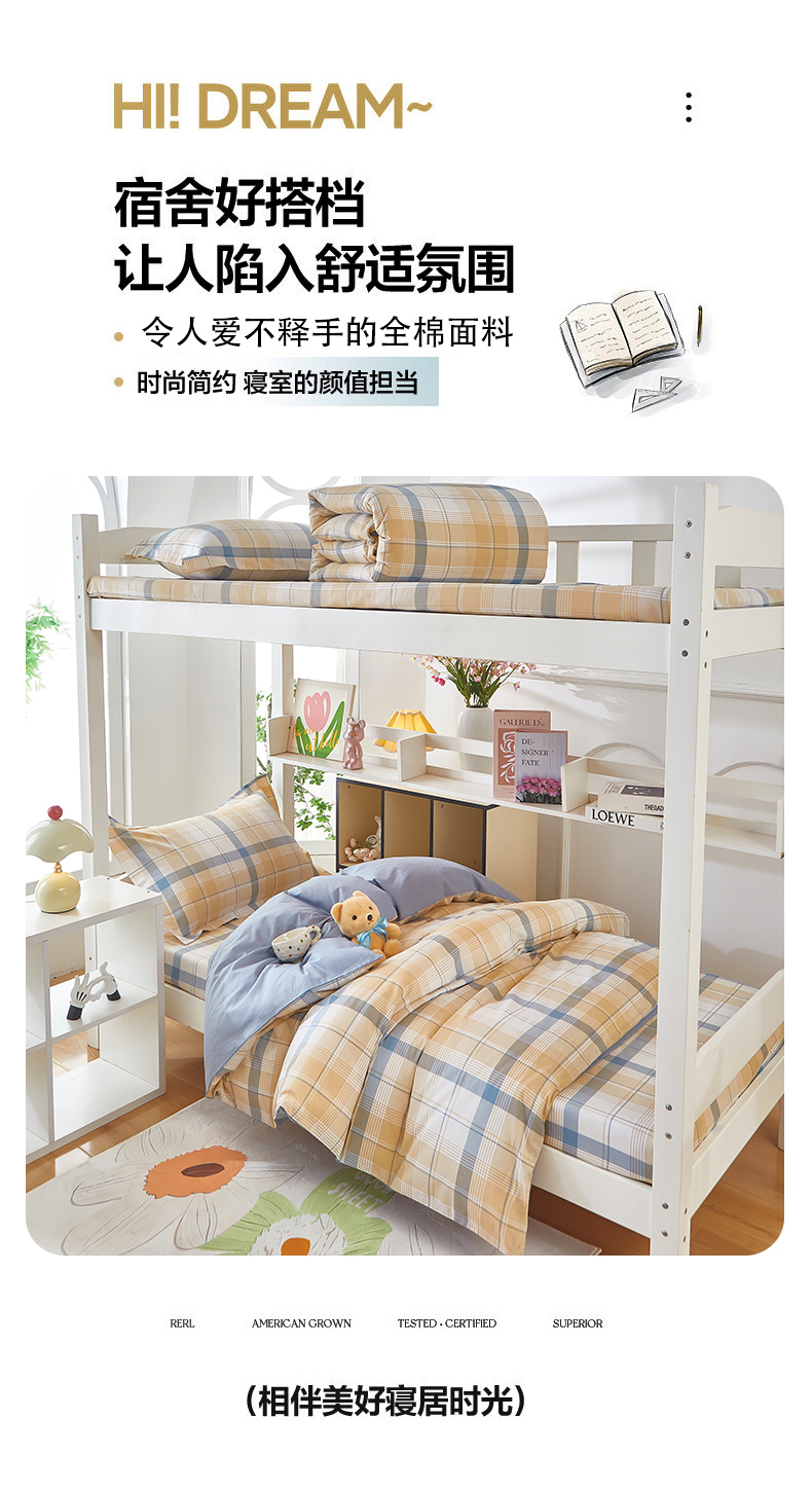 (总)安逸家纺 2024新款全棉学生三件套纯棉学生宿舍三件套 罗德里