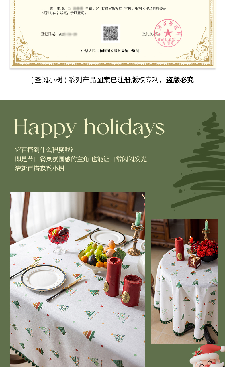 当前位置: 91家纺网 > 商品网购 > 居家布艺 > 餐桌布 > (总)大梧纺织2025新款圣诞小树桌布