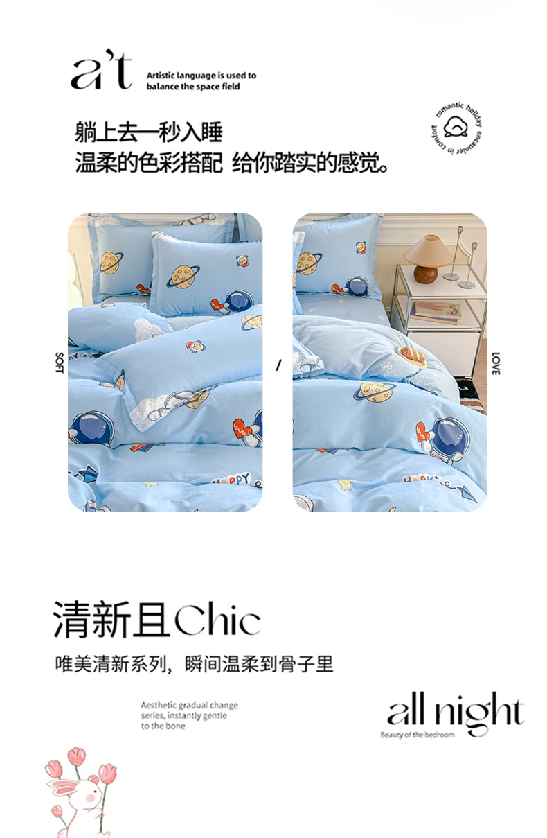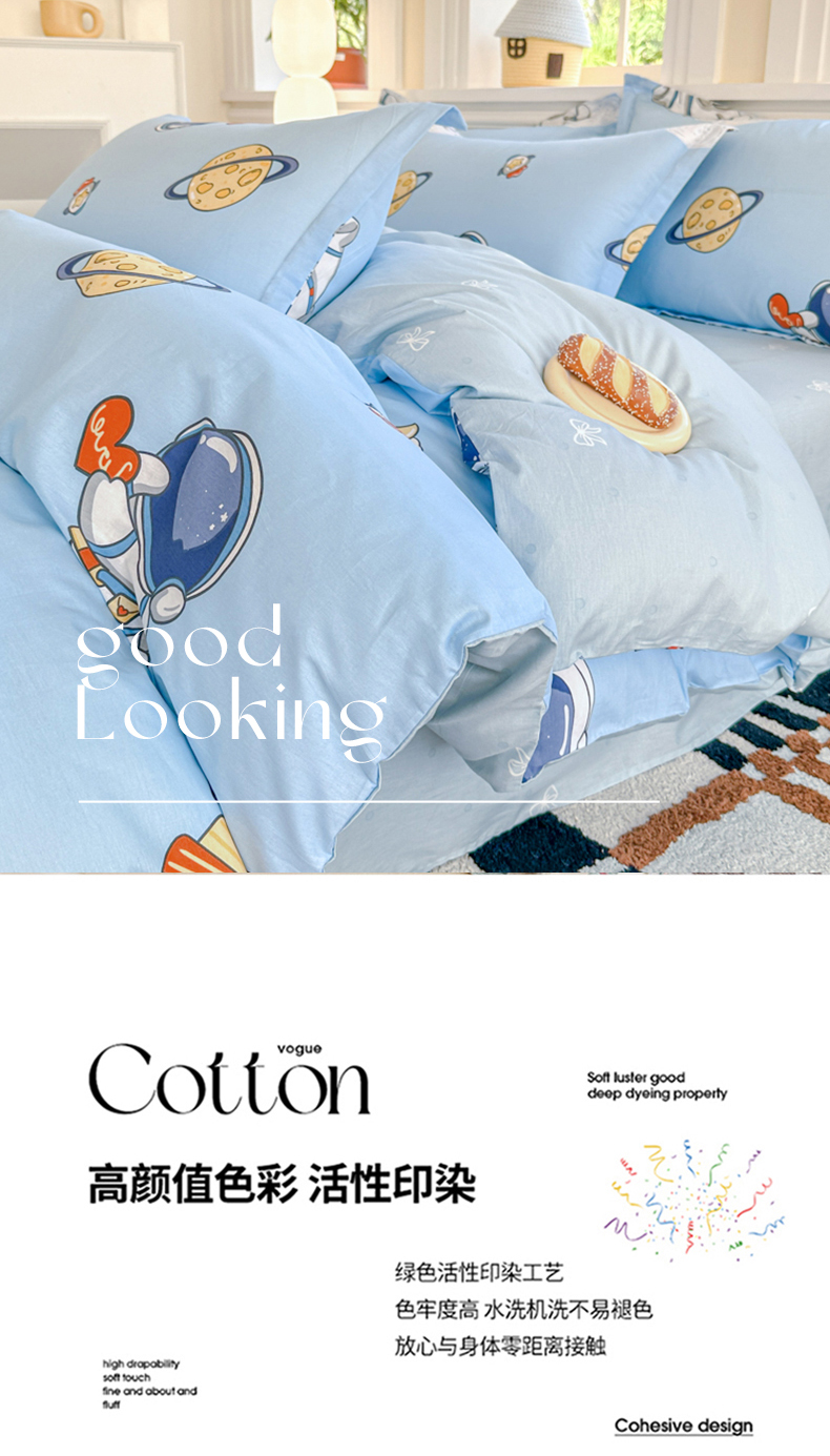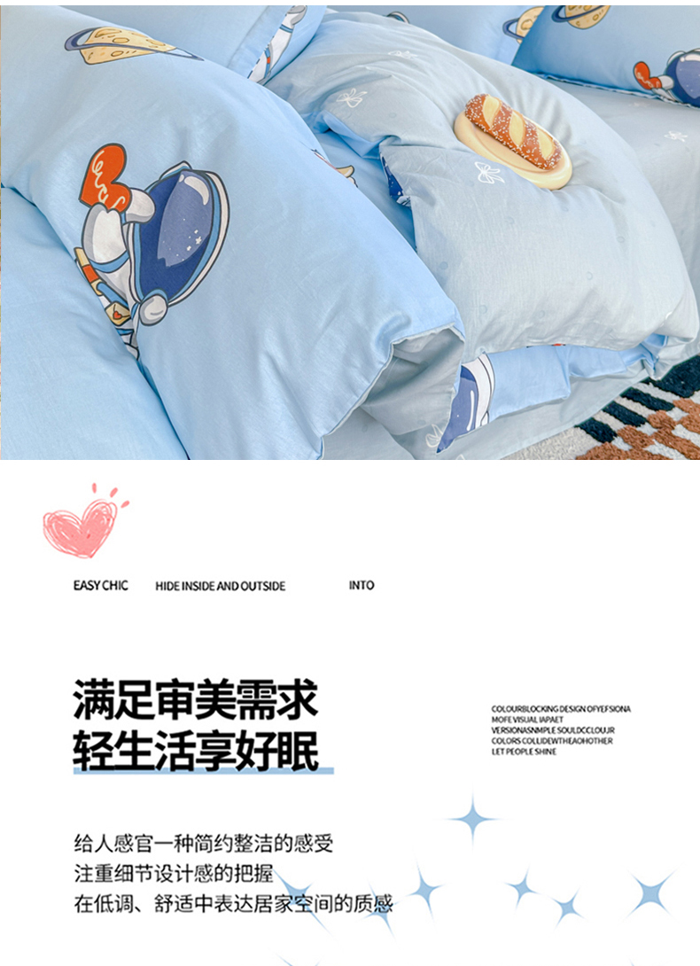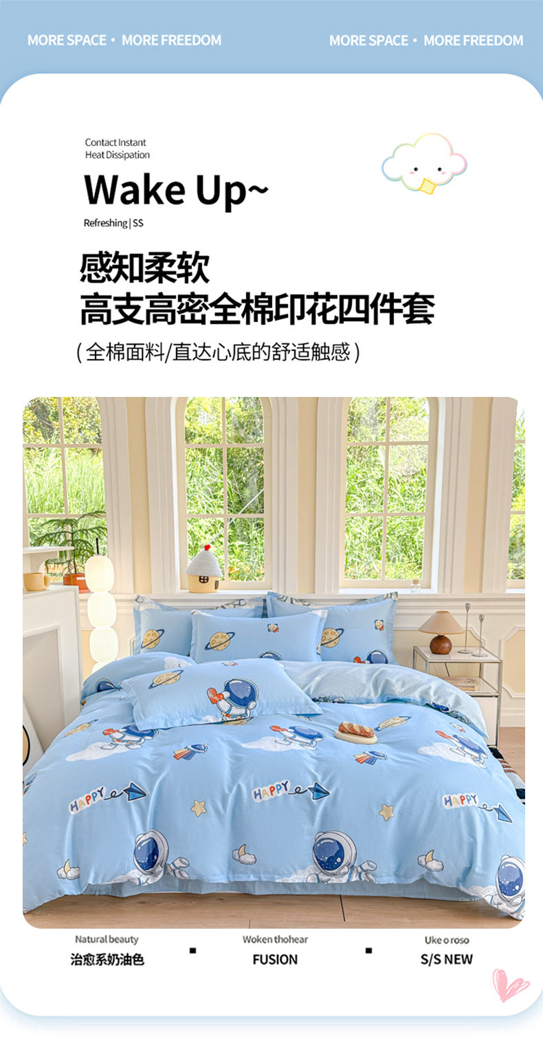 当前位置: 91家纺网 > 商品网购 > 床品套件 > 四件套 > 全棉普通四件套 > 帛织澜 12868全棉喷气印花四件套 太空奇遇