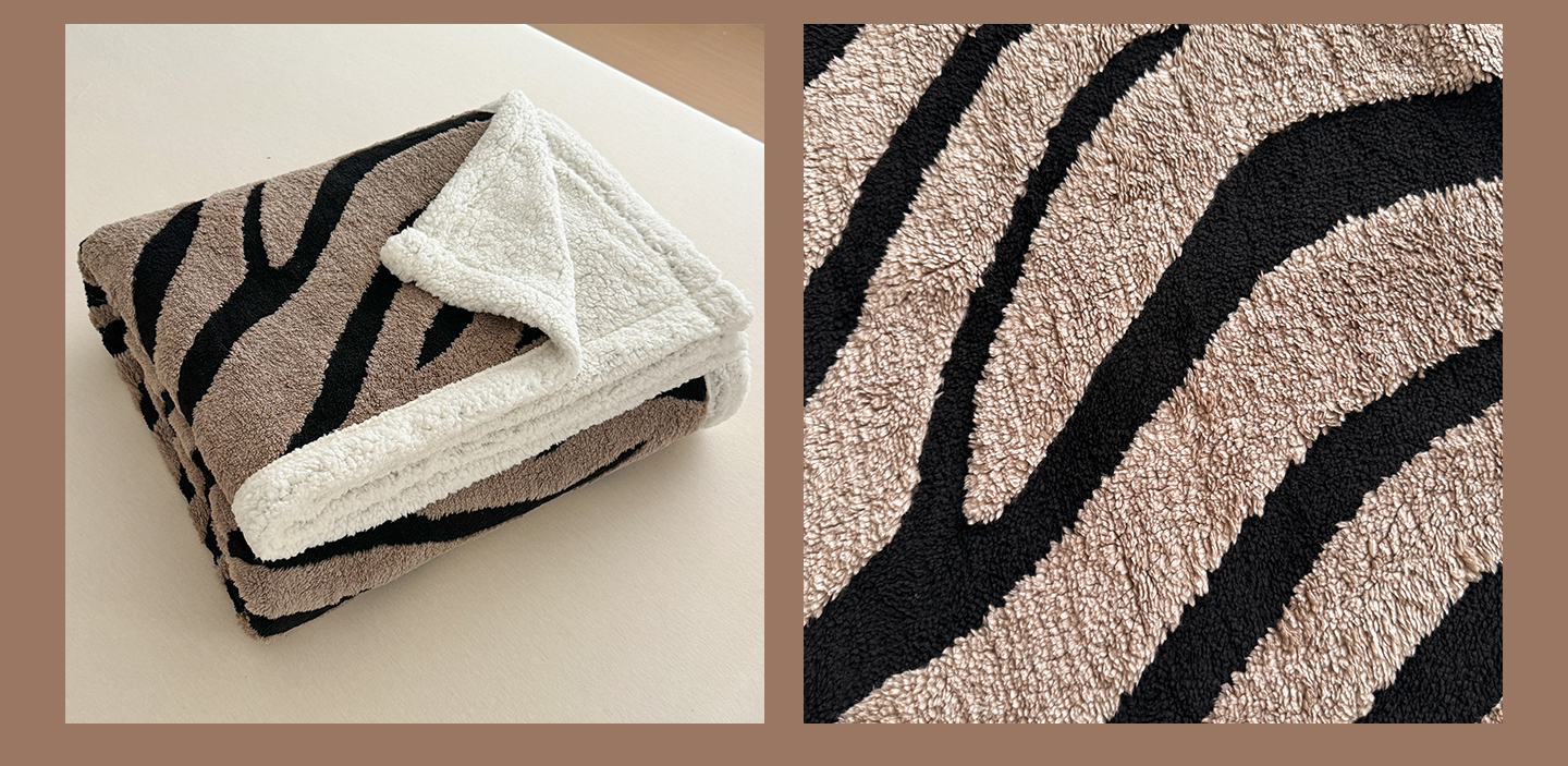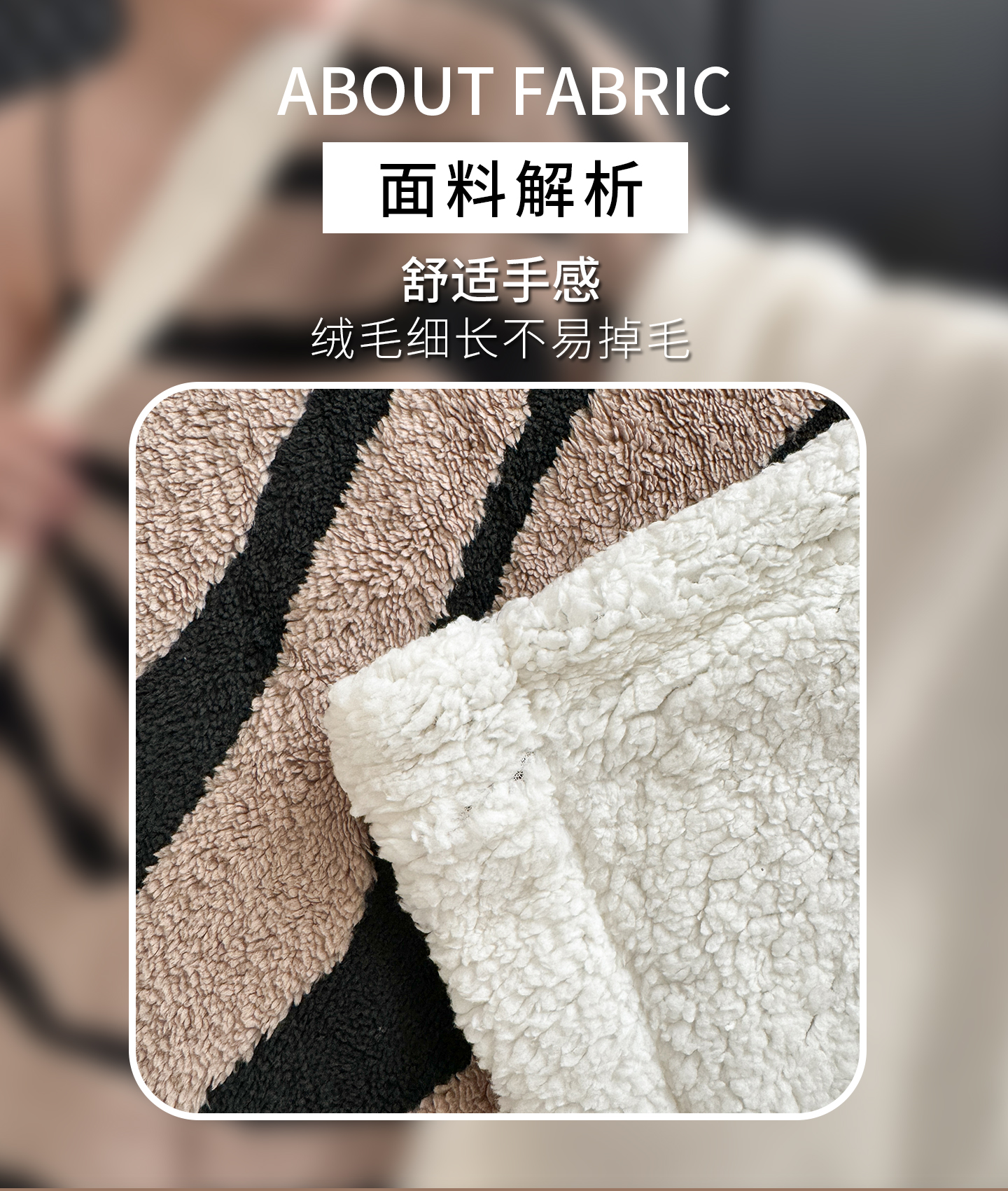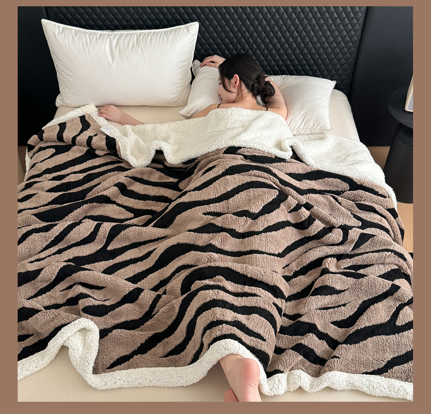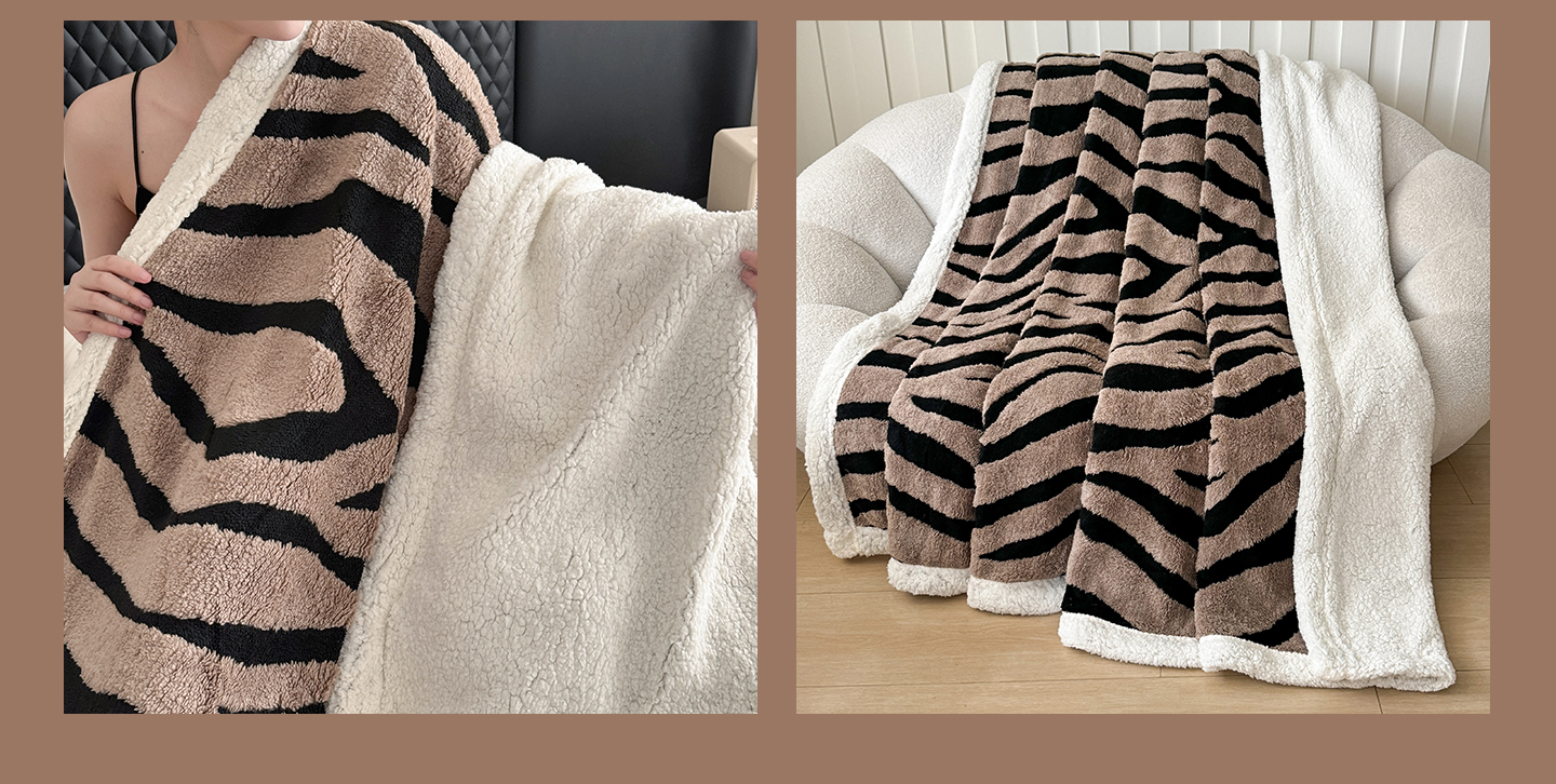 商品名称:丹本家纺 2025新款双层阳离子斑马纹提花塔芙绒羊羔绒跨境双层毛毯盖毯毯子 驼斑马纹