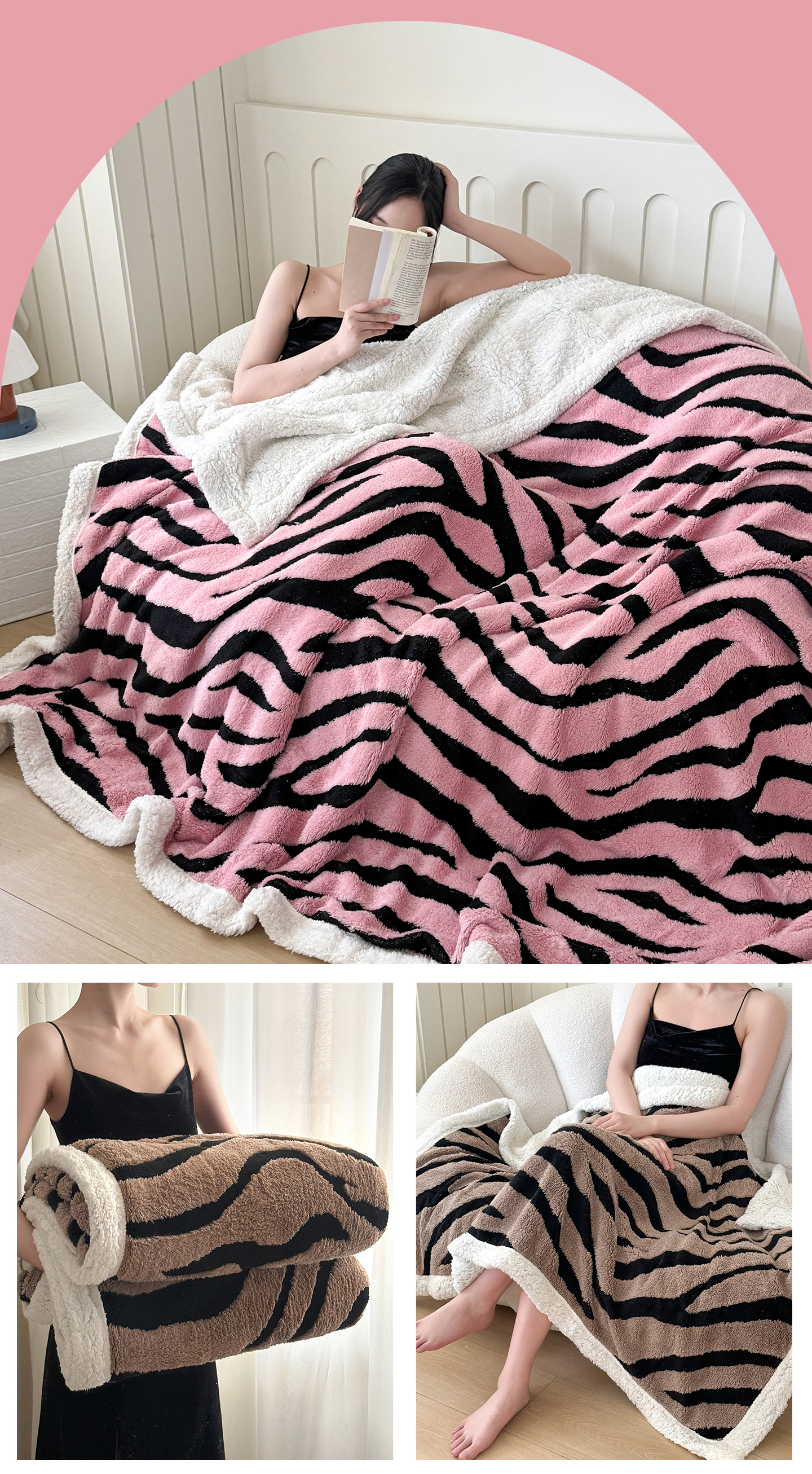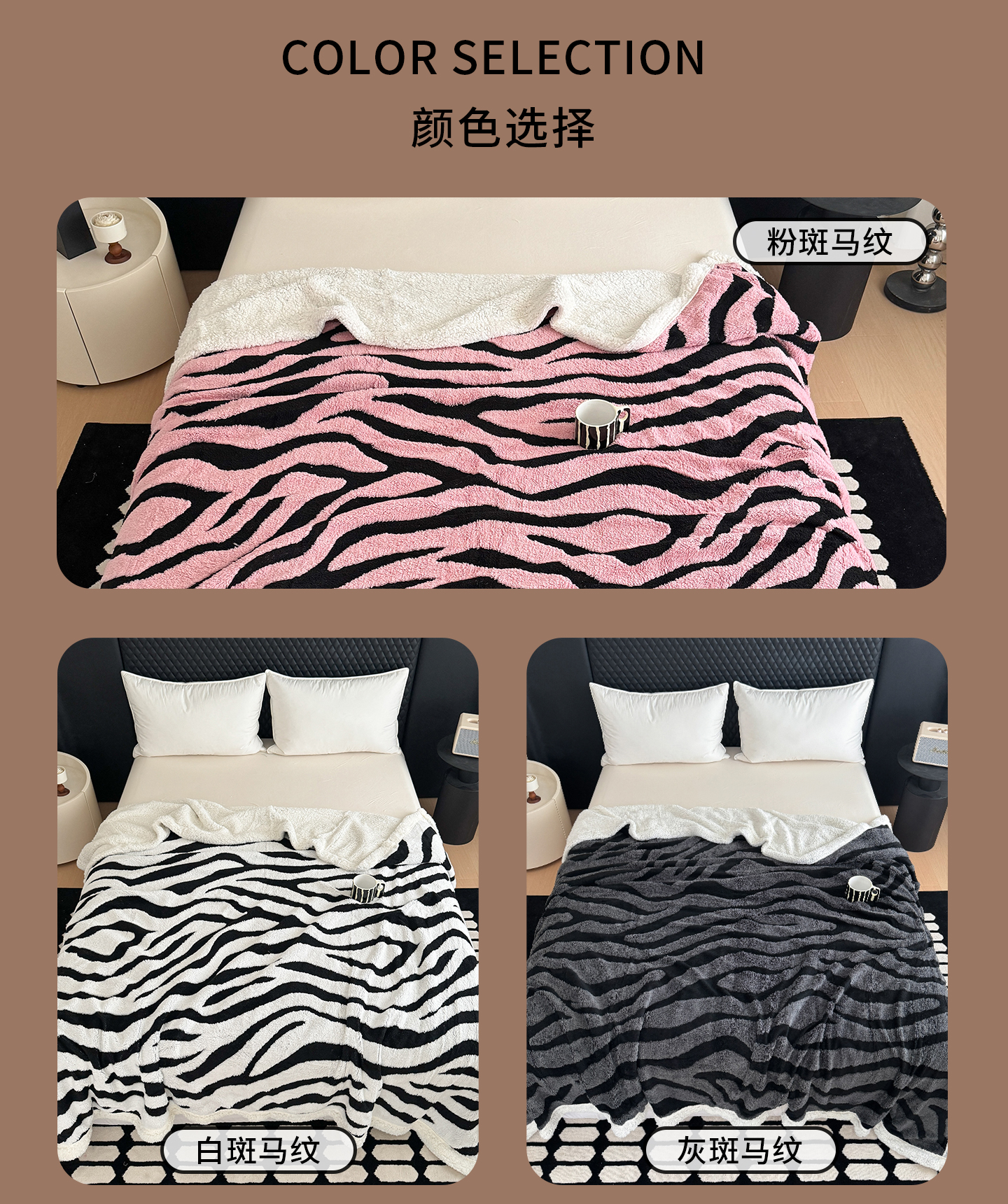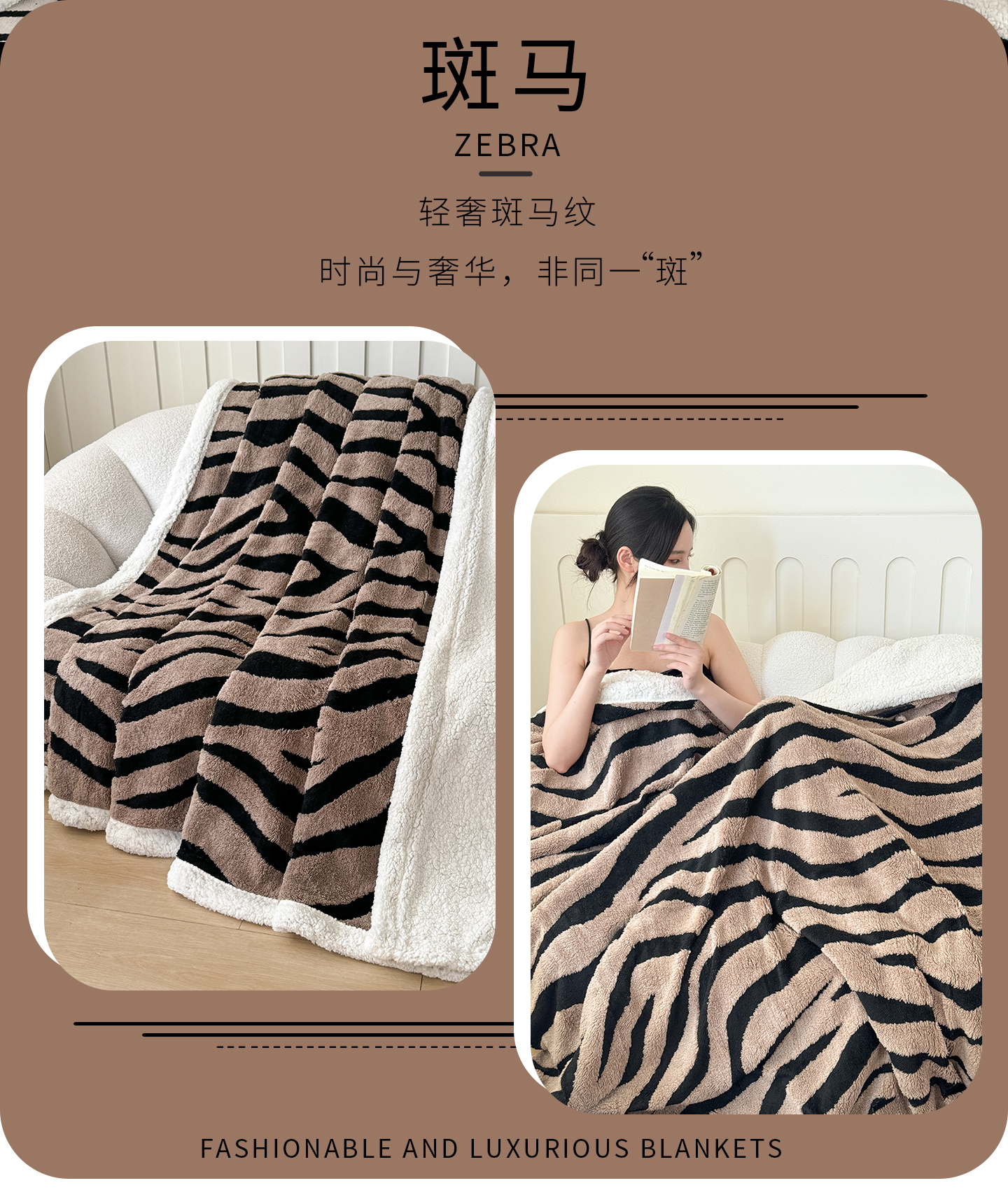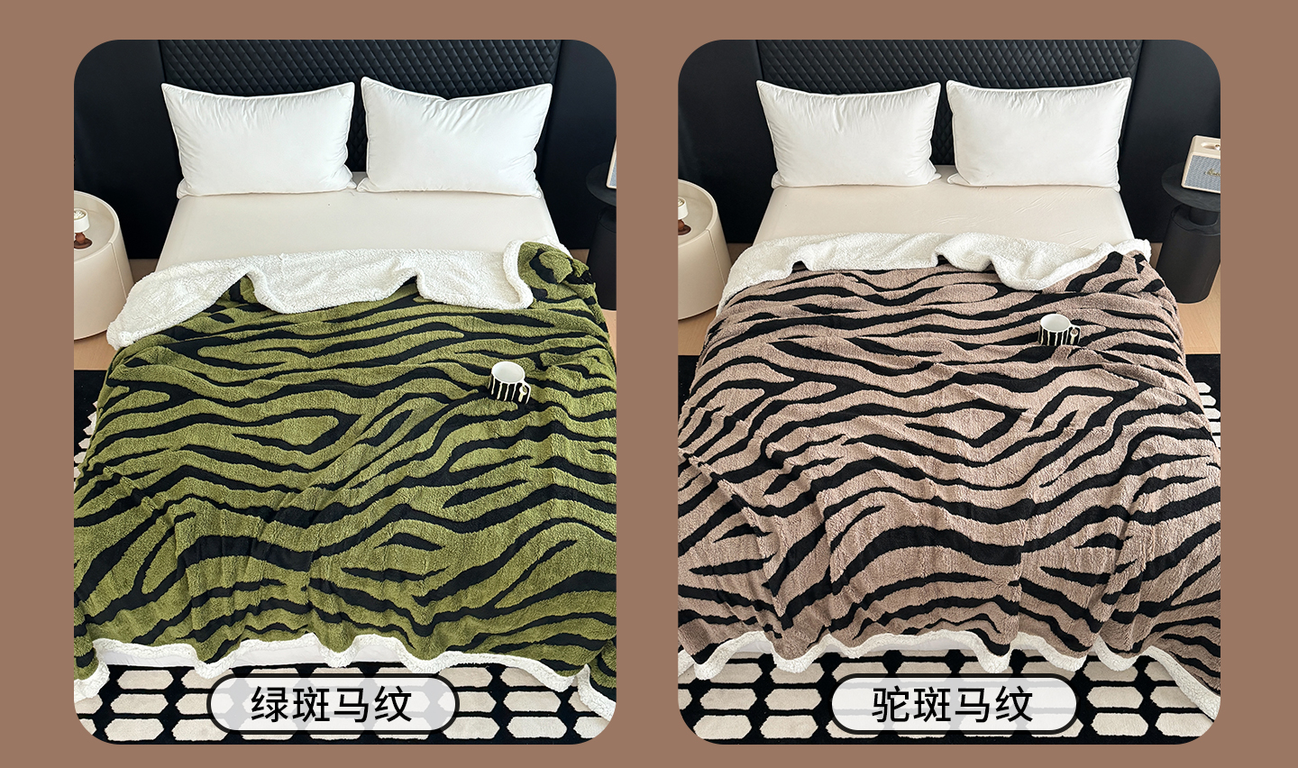 (总)丹本家纺 2025新款双层阳离子斑马纹提花塔芙绒羊羔绒跨境双层毛毯盖毯毯子,白斑马纹,粉斑马纹,灰斑马纹,绿斑马纹,驼斑马纹
