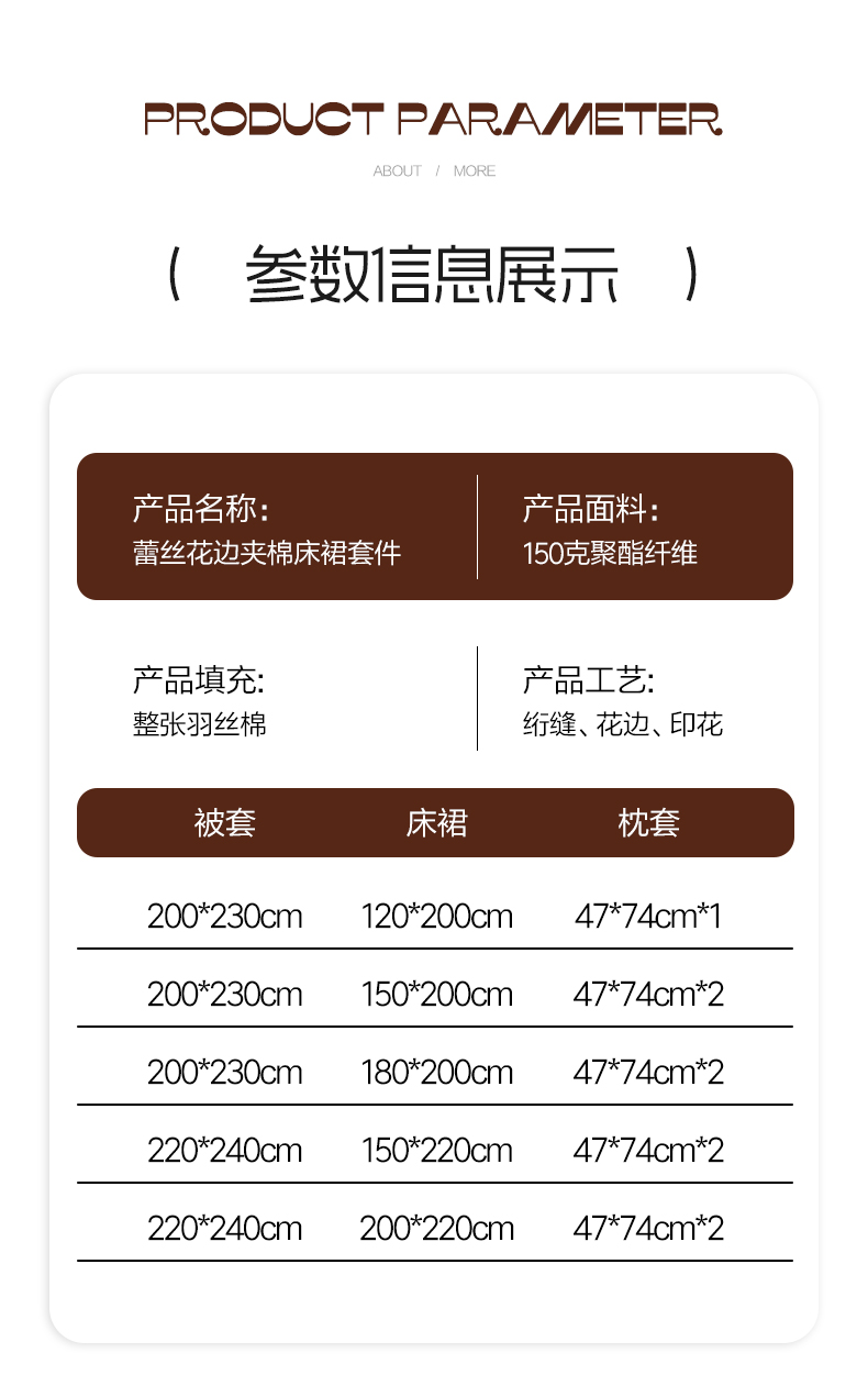 150x200cm单床裙+枕套一对