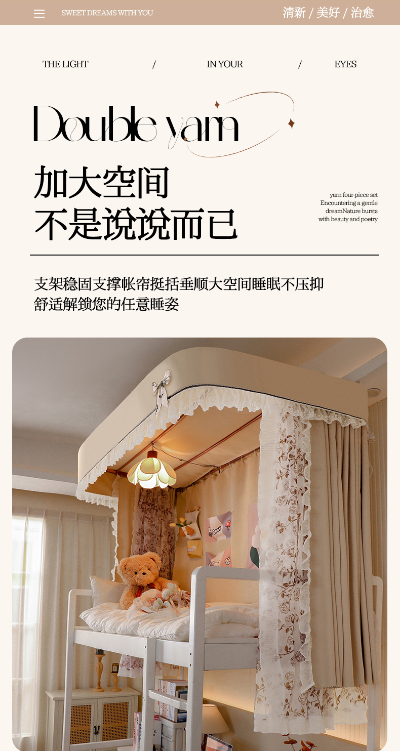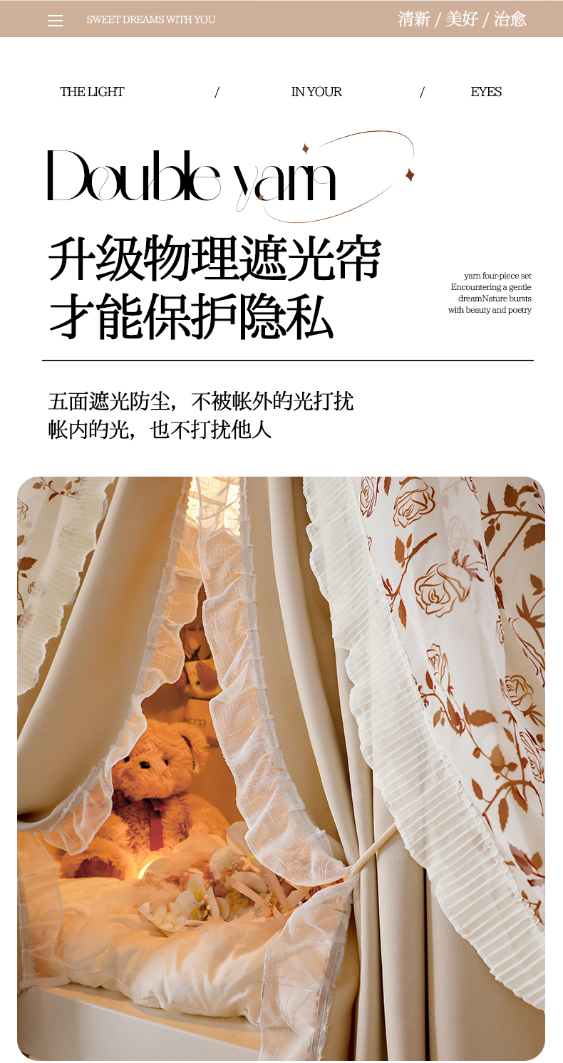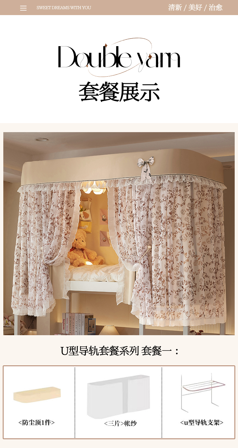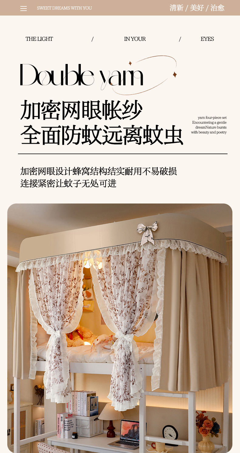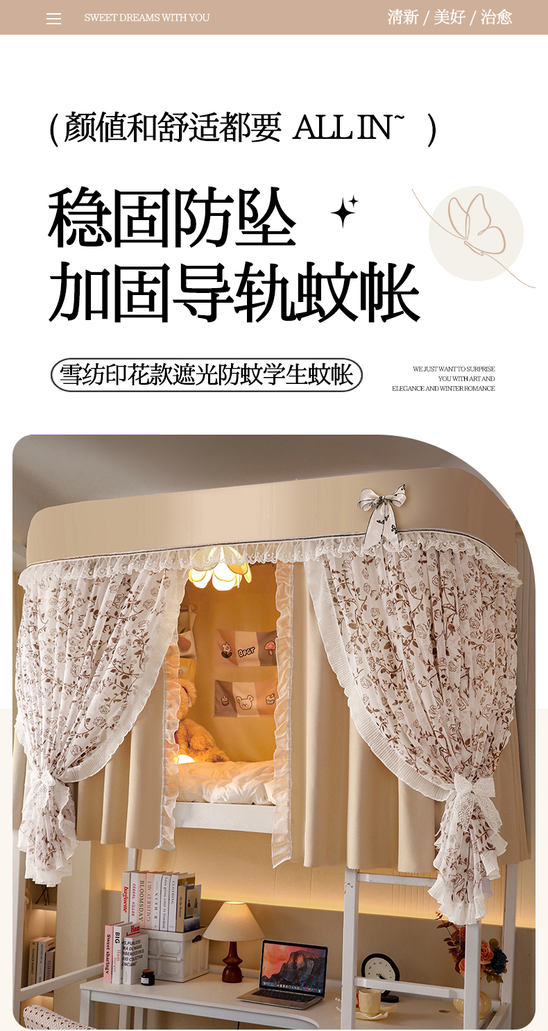 当前位置: 91家纺网 > 商品网购 > 床上用品 > 蚊帐 > 学生蚊帐 > 夏彩 2025新款学生新款雪纺蕾丝强遮光可升降U型轨道蚊帐 甜心玫瑰