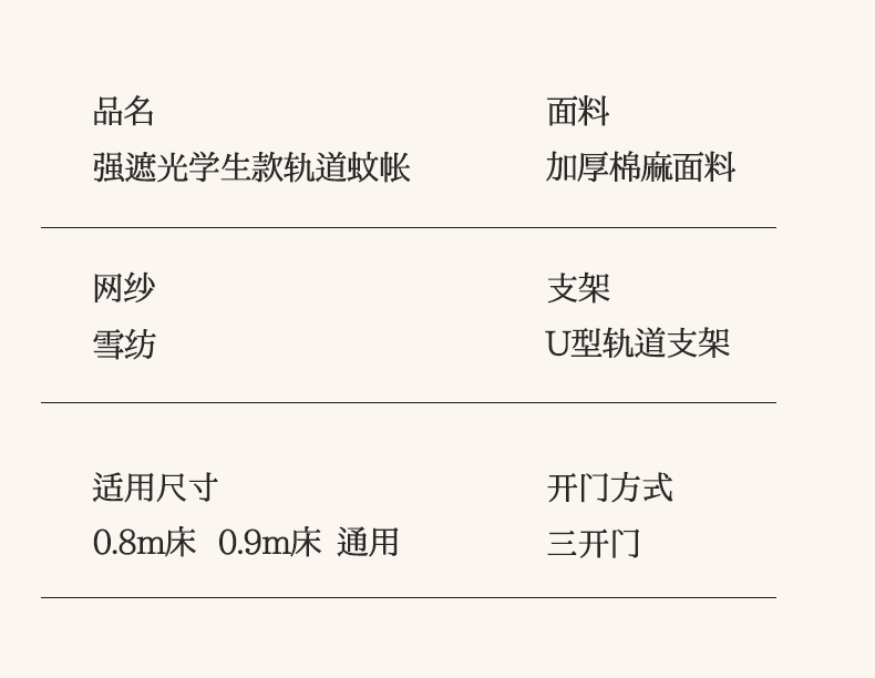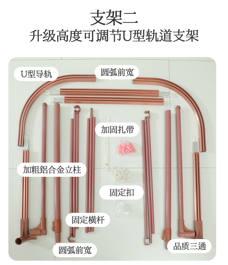 套餐三:顶+2纱+3门帘+支架-高度可调节U型铁艺轨道支架 | ¥185.00 |