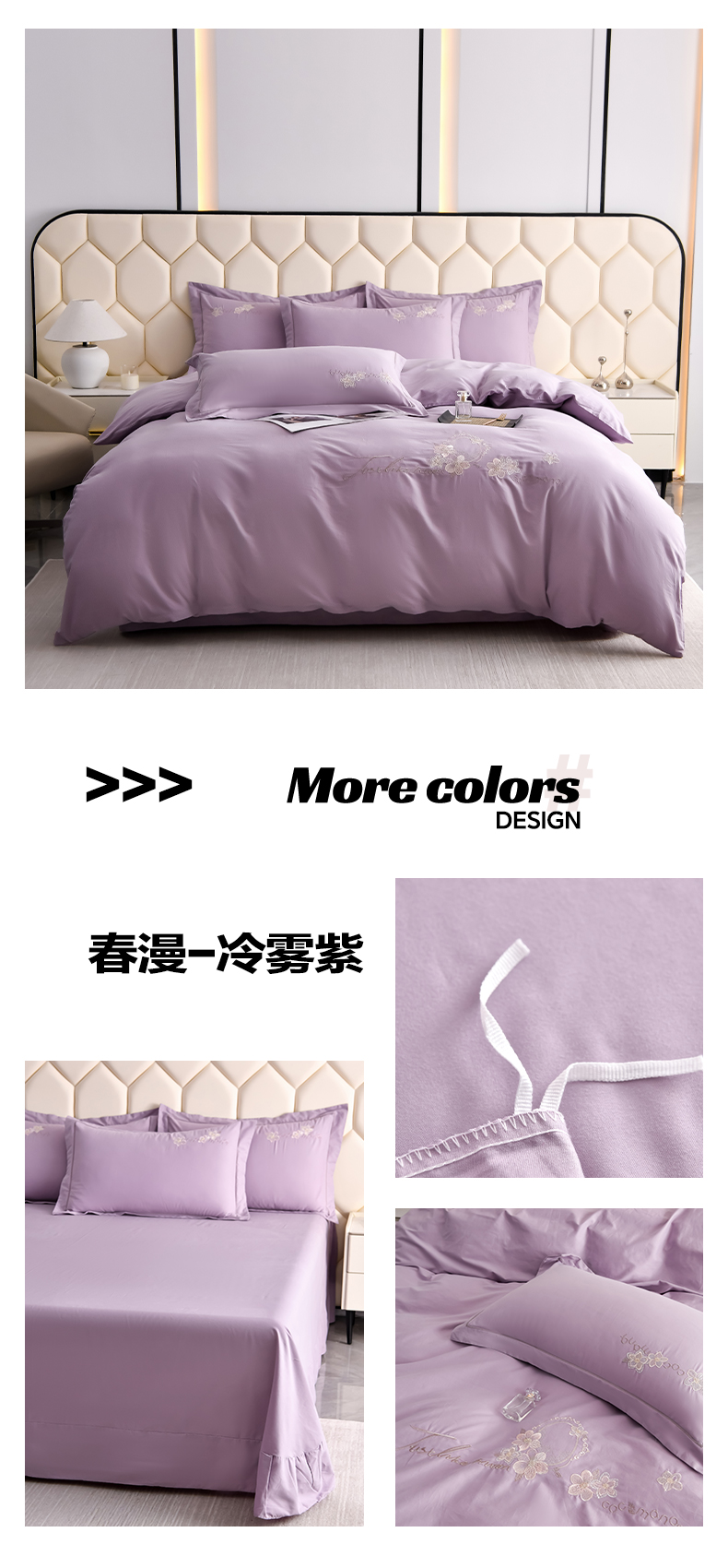 当前位置: 91家纺网 > 商品网购 > 床品套件 > 四件套 > 全棉普通四件套 > 江南春家纺 【柔-轻密】2025秋冬133x76高精密刺绣100%全棉四件套 【柔-轻密】春漫-冷雾紫