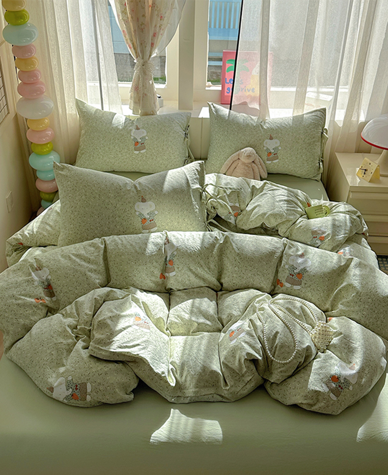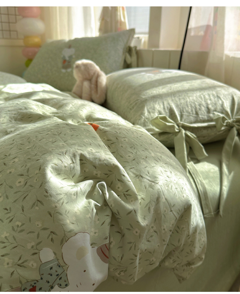 (总)漫仙阁家纺 2025新品云朵棉可爱风卡通烫画单床笠枕套三件套,小浣熊,邻家女孩,小青蛙,兔小姐,花仙子,狗狗家族