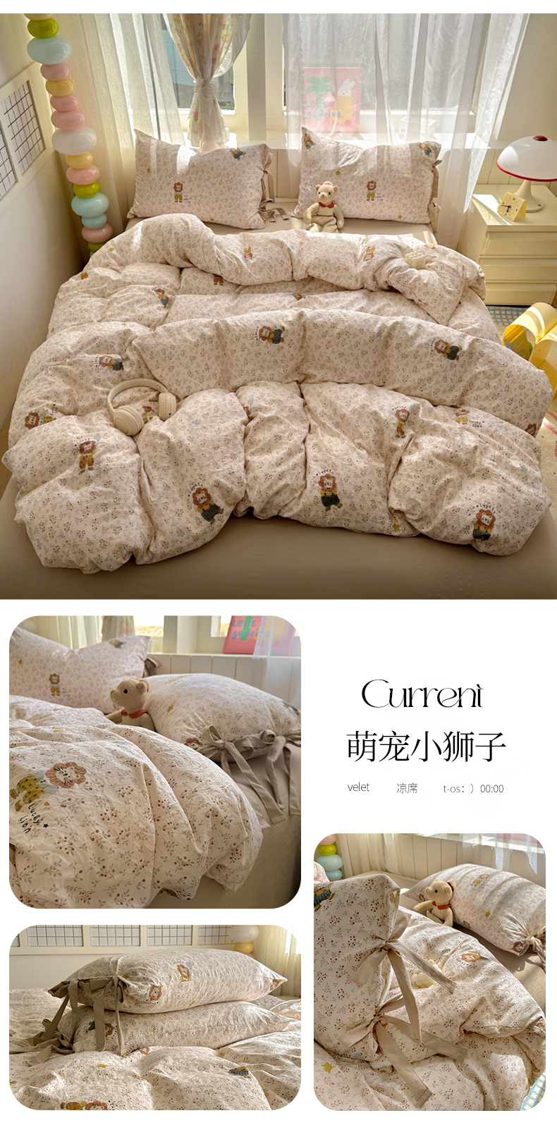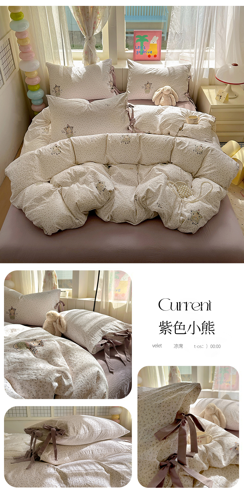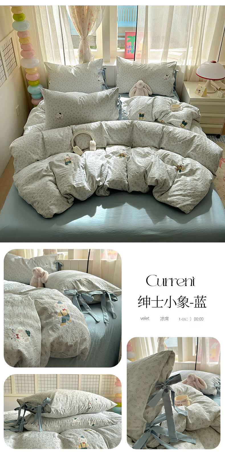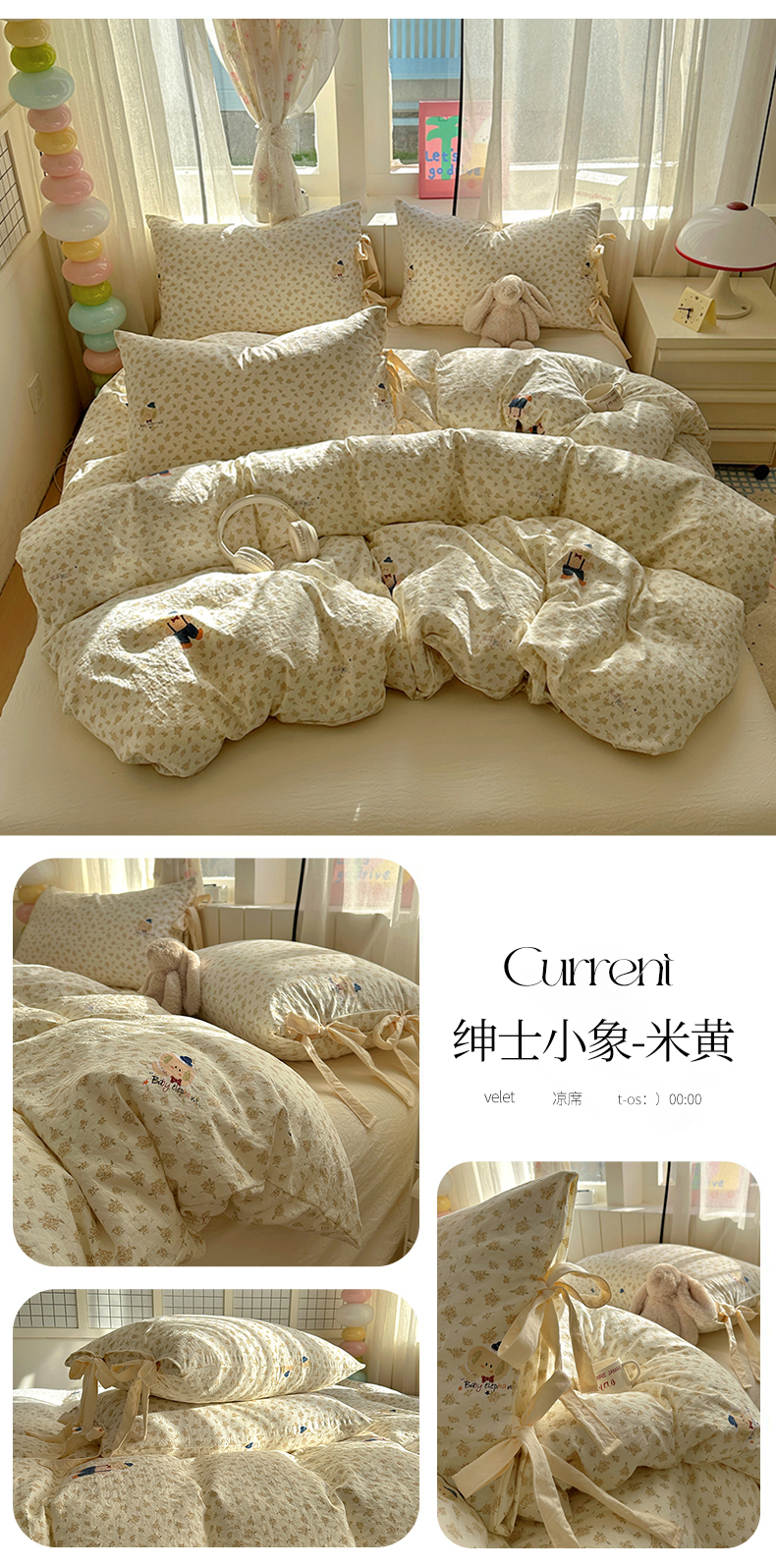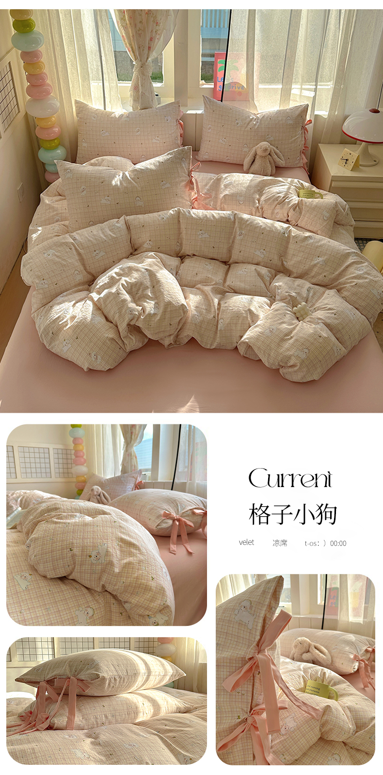 (总)漫仙阁家纺 2025新款蝴蝶结绑带款四件套-卡通系列,格子小狗,春日序曲,粉小兔,萌宠小狮子,裙子小兔,绅士小象-蓝,绅士小象-米黄,田园女孩,紫色小熊,欢乐小象