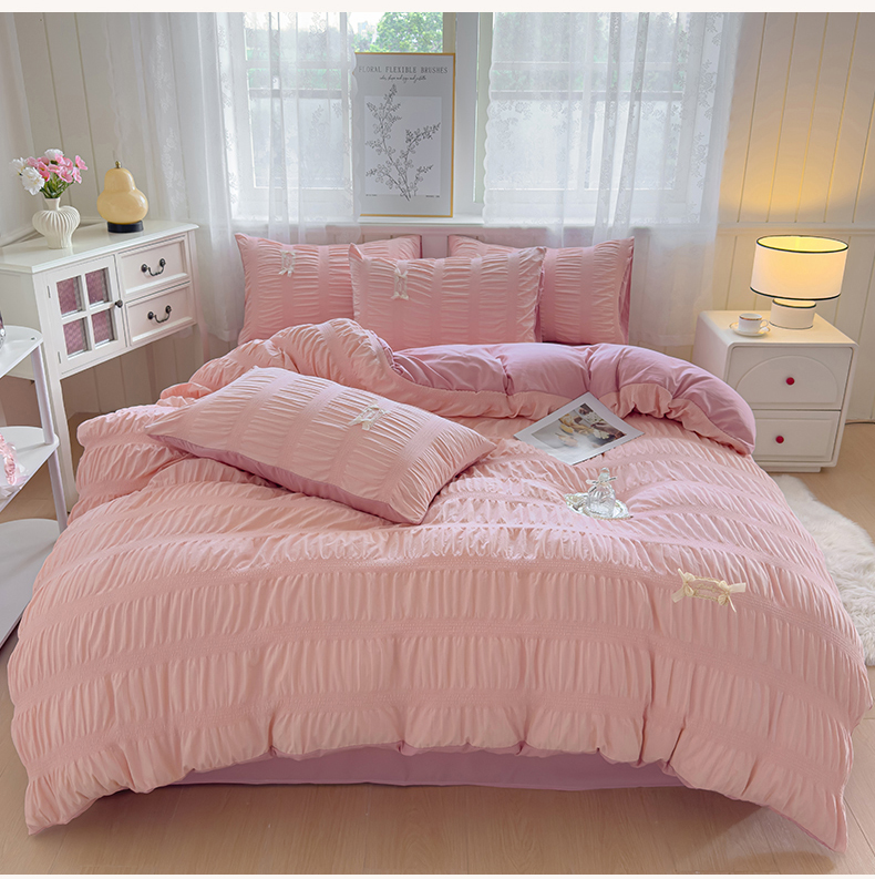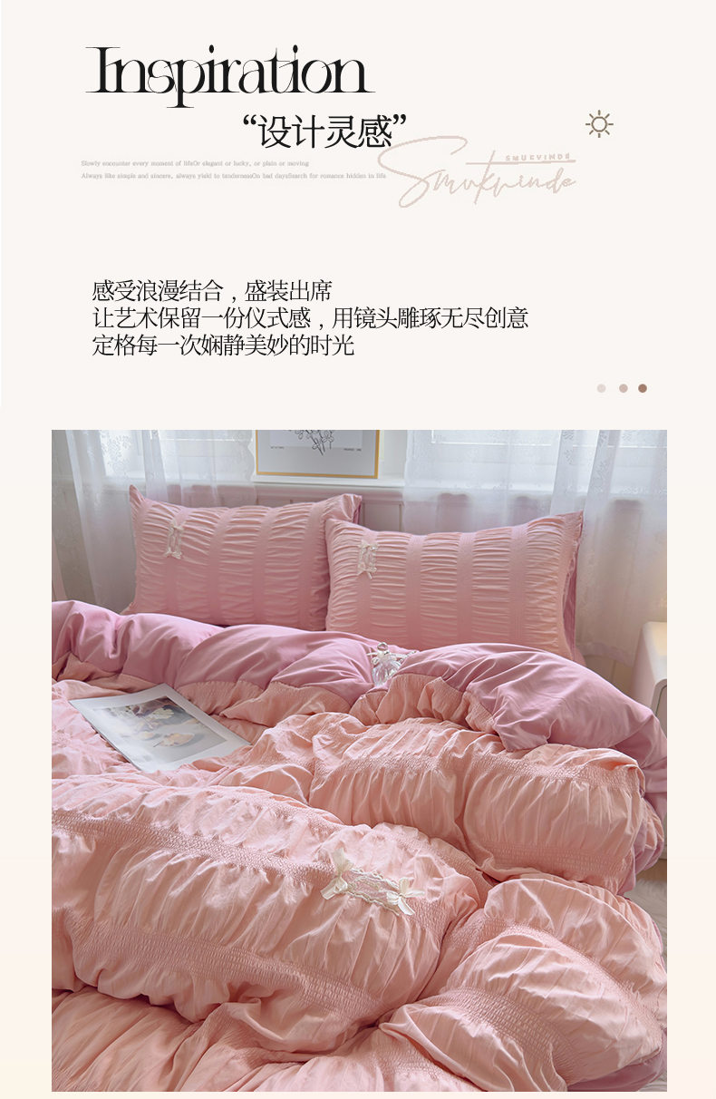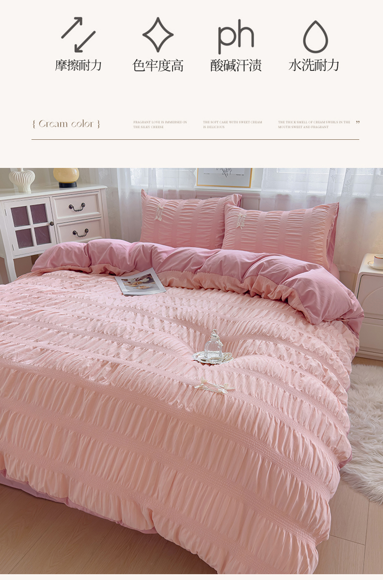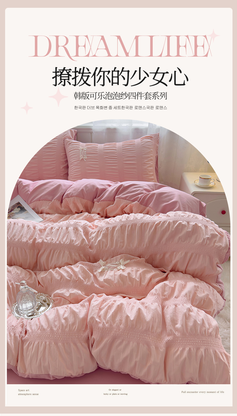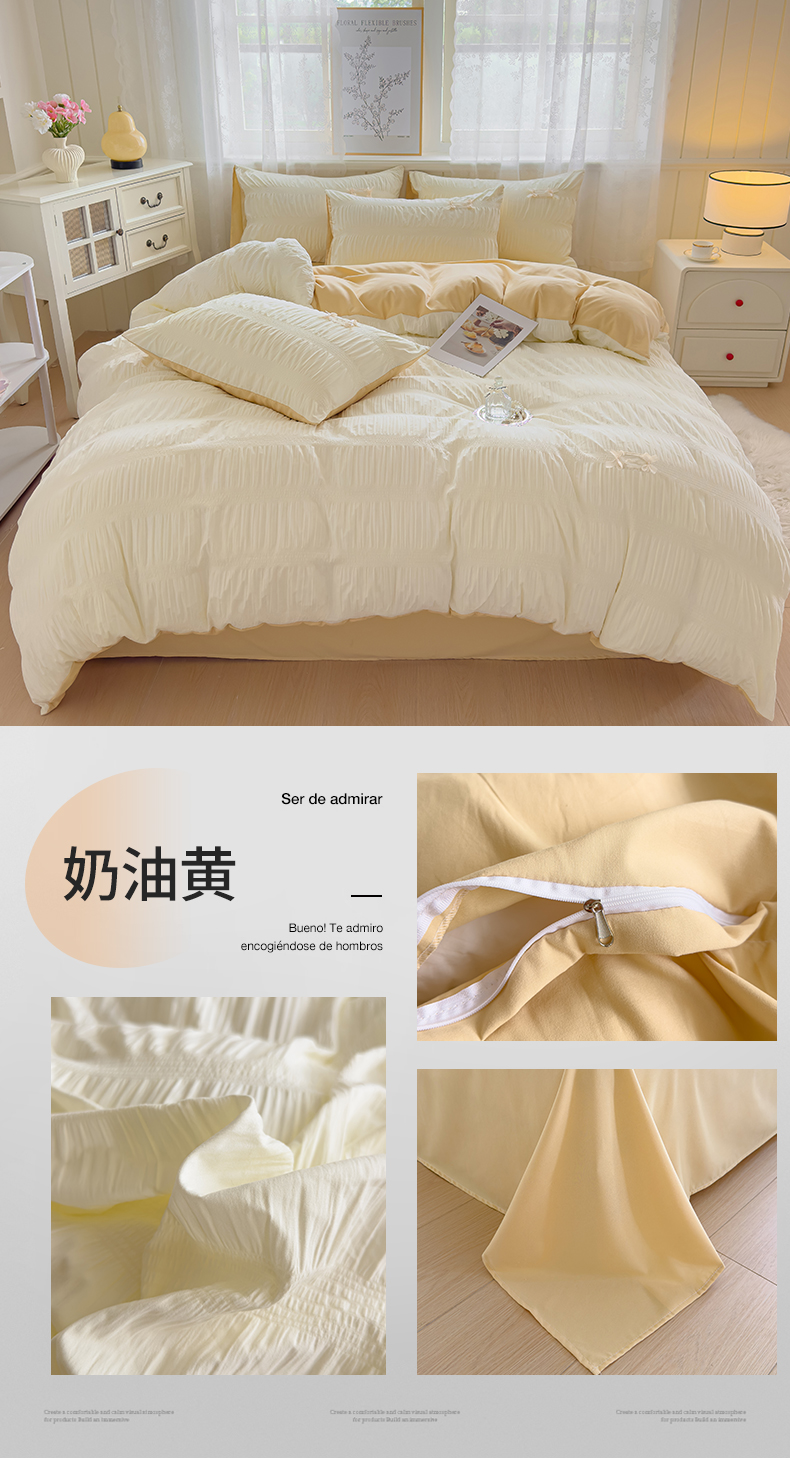 当前位置: 91家纺网 > 商品网购 > 床品套件 > 四件套 > 其它四件套 > 梦庭帛美 2025新款韩版公主风可乐泡泡纱四件套 奶油黄