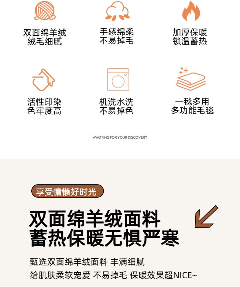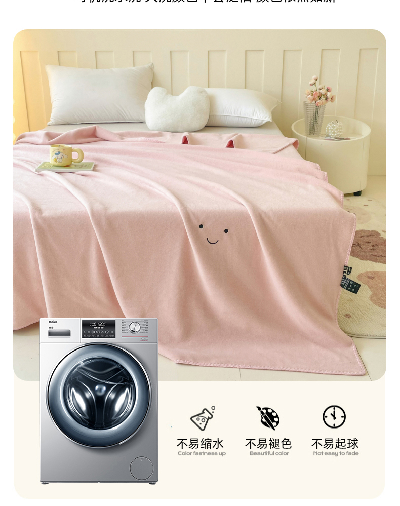商品名称:(总)莱凯家纺 2025新款绵羊绒毛毯系列-笑脸
