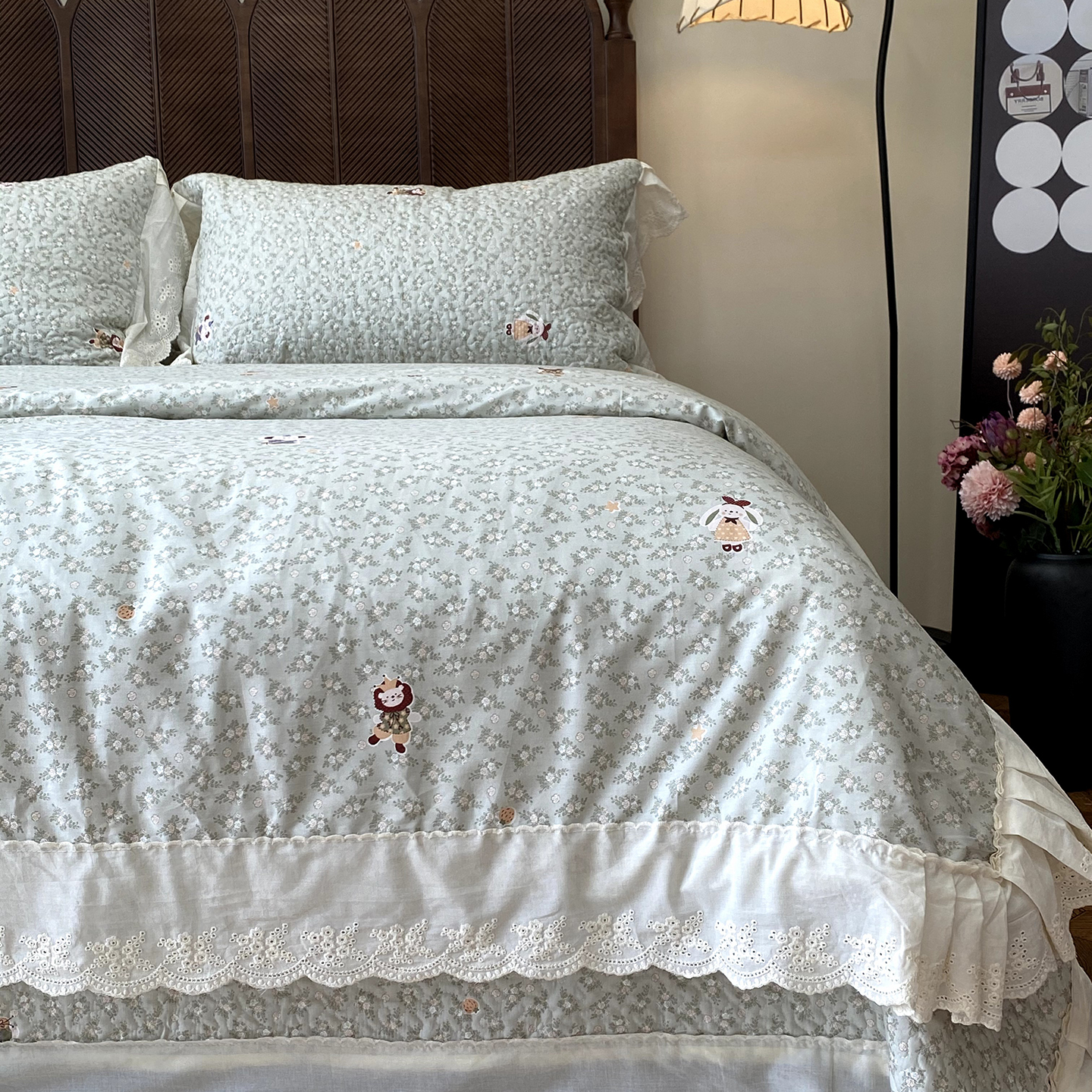 (总)奈萝家纺 2025新款全棉蕾丝花边床盖三件套四件套纯棉花边夏被,呆呆熊,花语绿,花语紫,柠檬,蔷薇,西瓜兔,夏蓝,夏梦,夏之语,小花熊,樱花