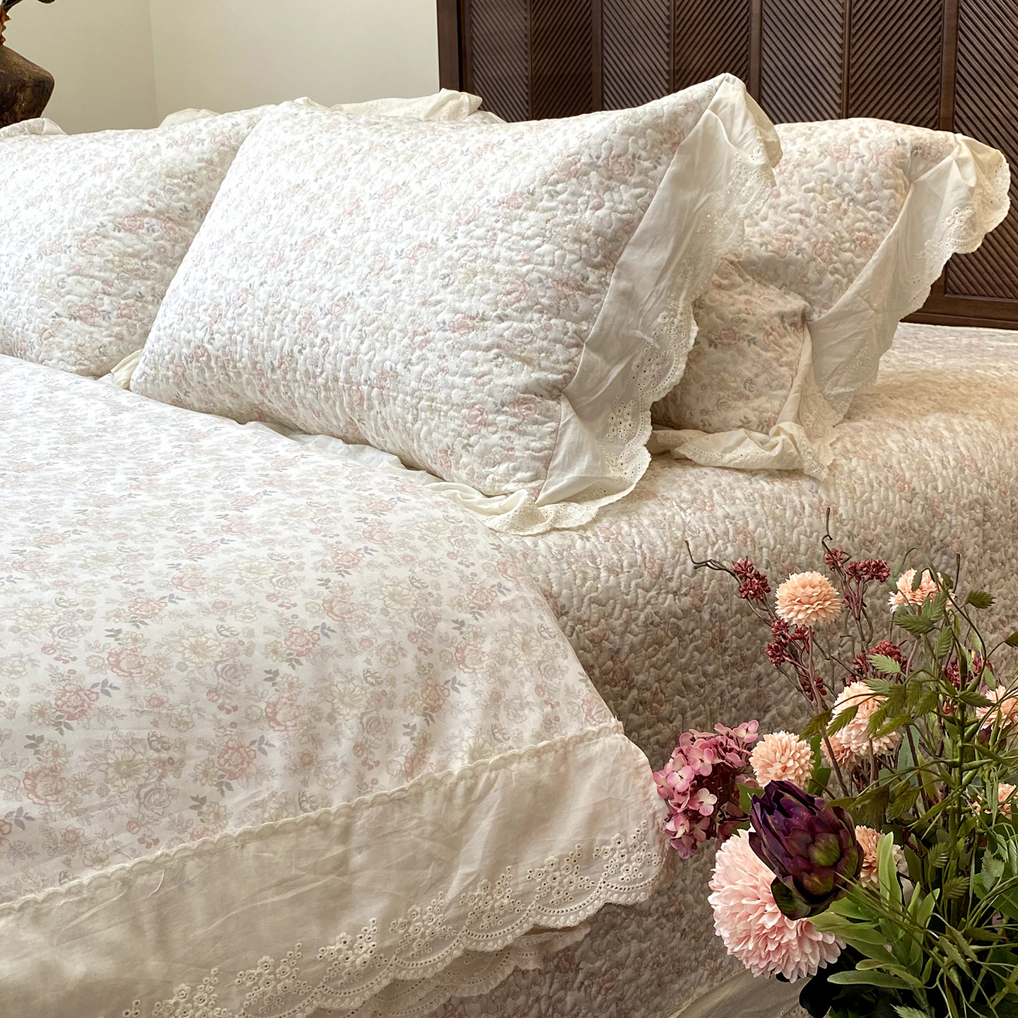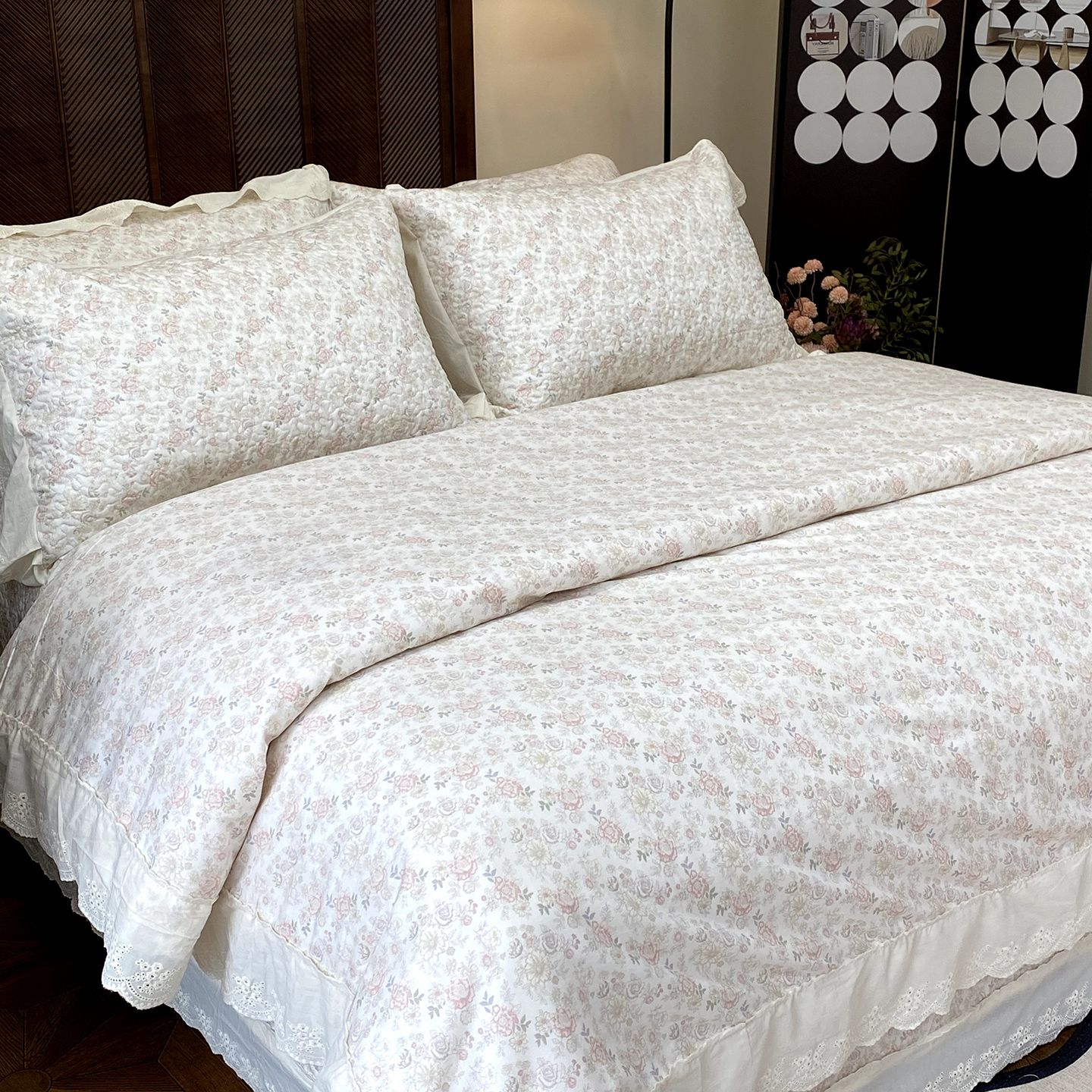 商品名称:奈萝家纺 2025新款13372全棉法式大花边床盖被套四件套 天使安琪