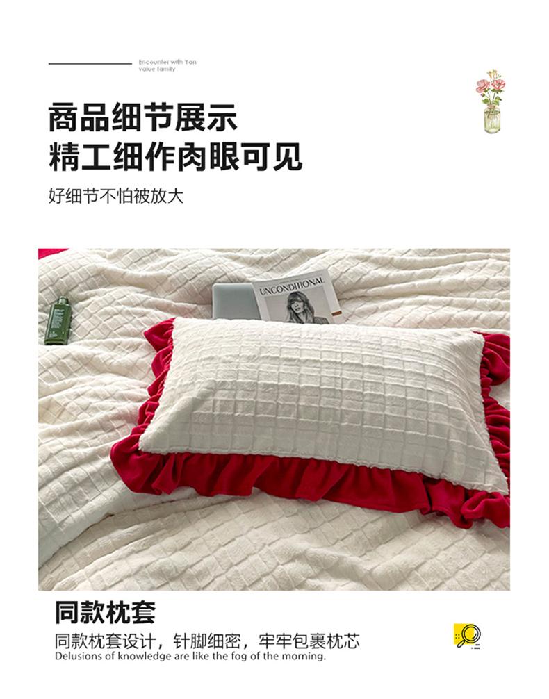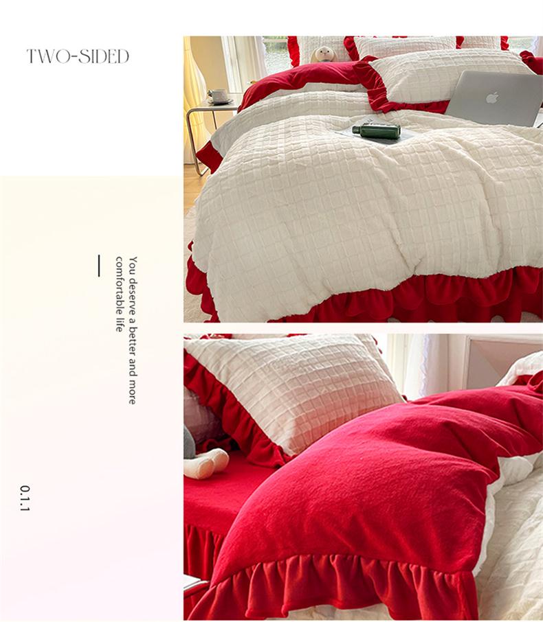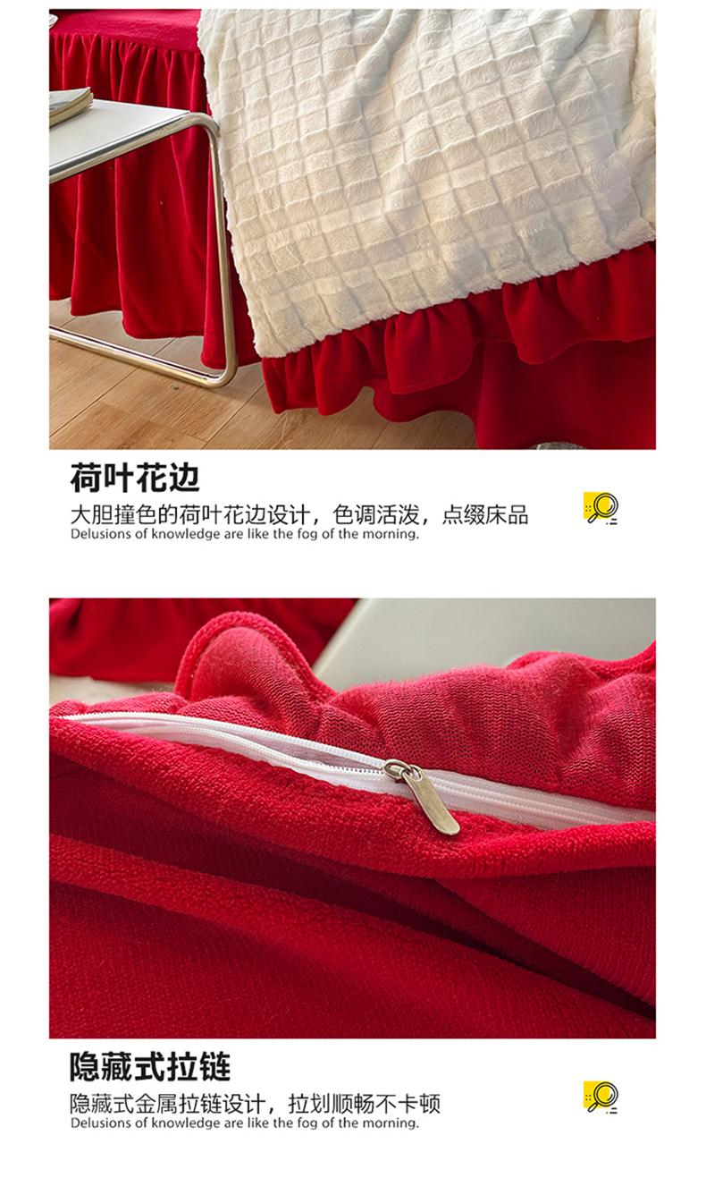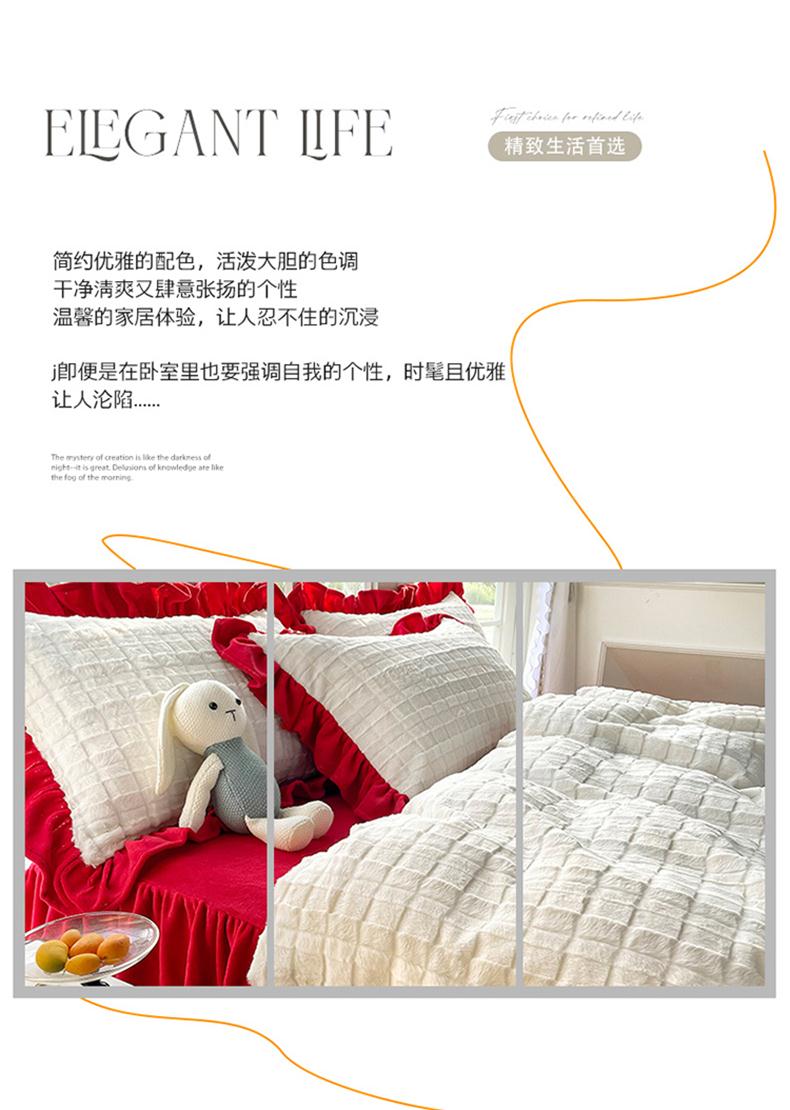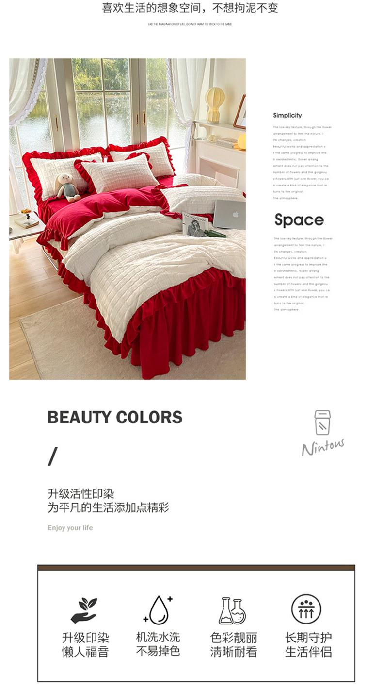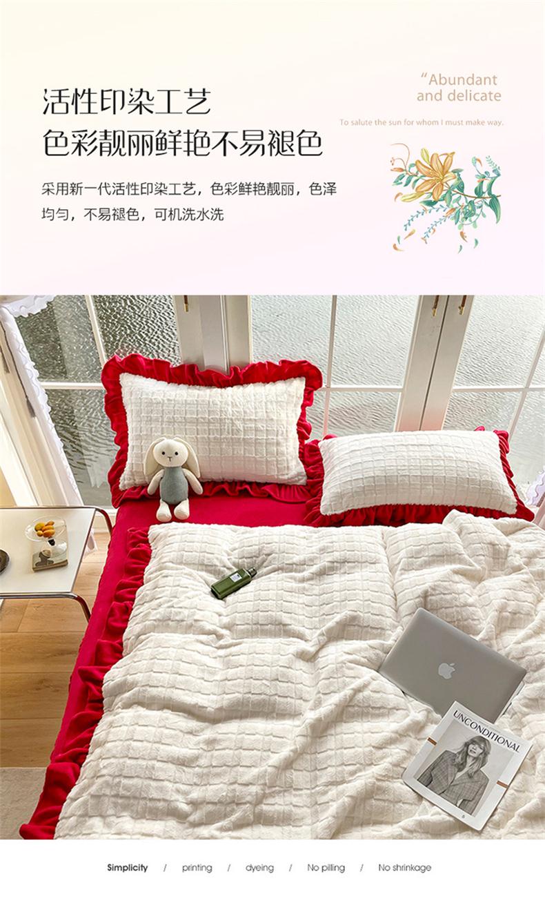 商品名称:睡美人 2025新款韩版方块兔绒牛奶绒床裙公主款四件套 方块兔绒-大红色