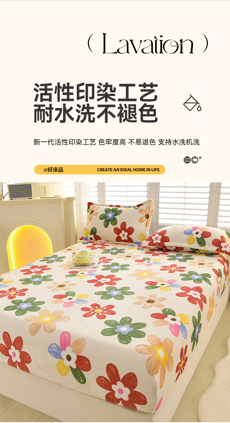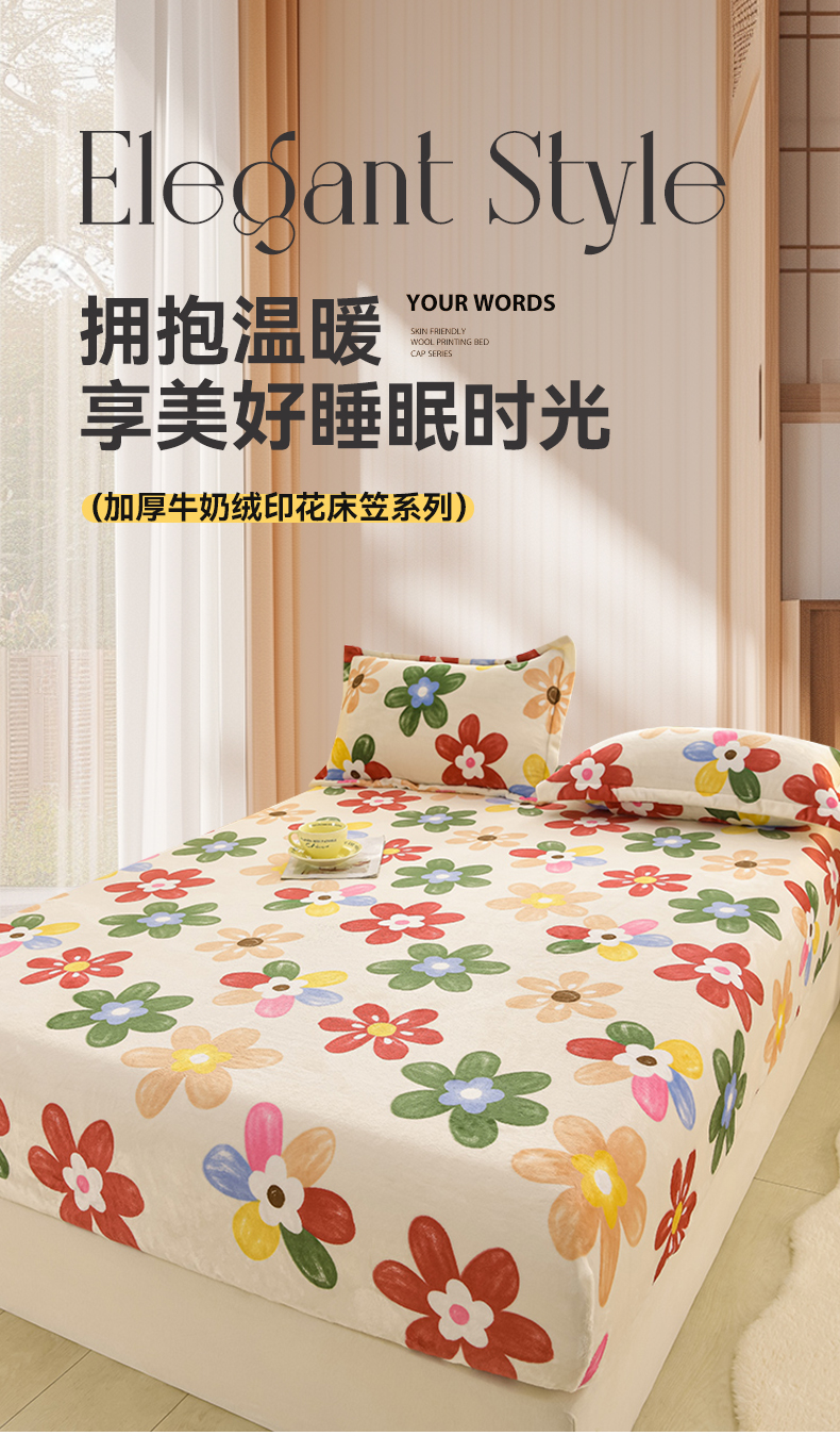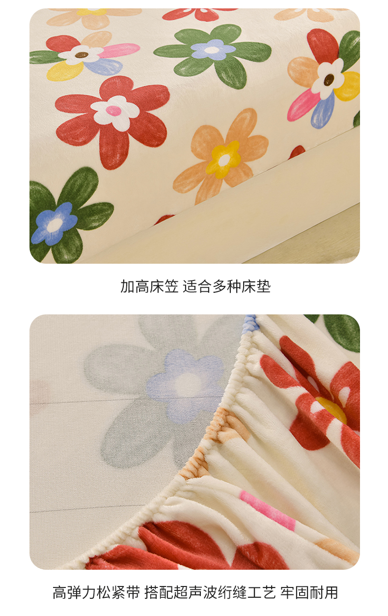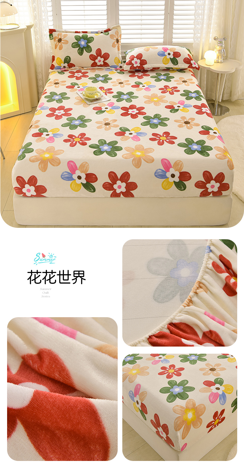 商品名称:圣楚家纺 2025新款牛奶绒床笠 花花世界