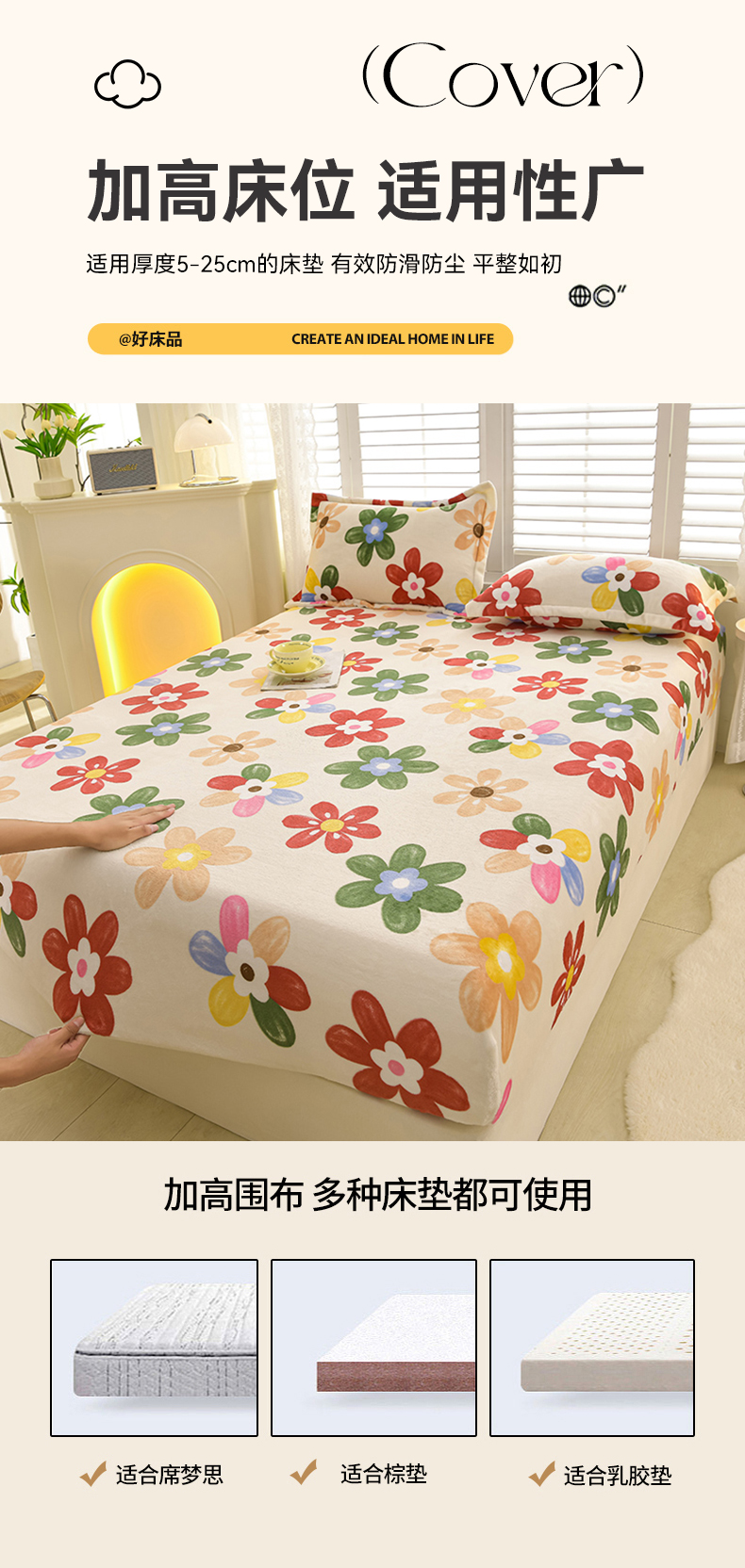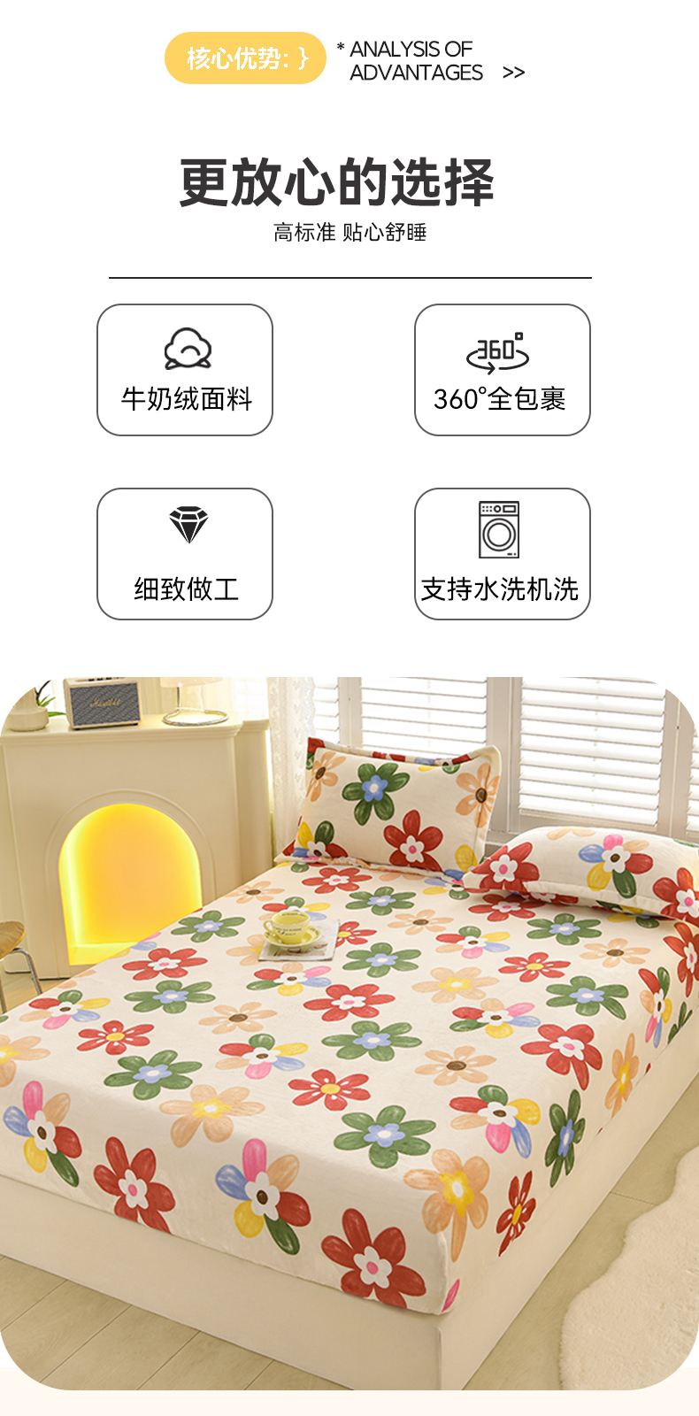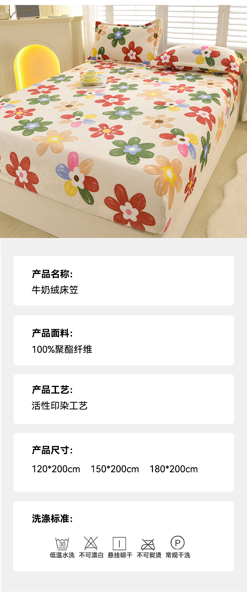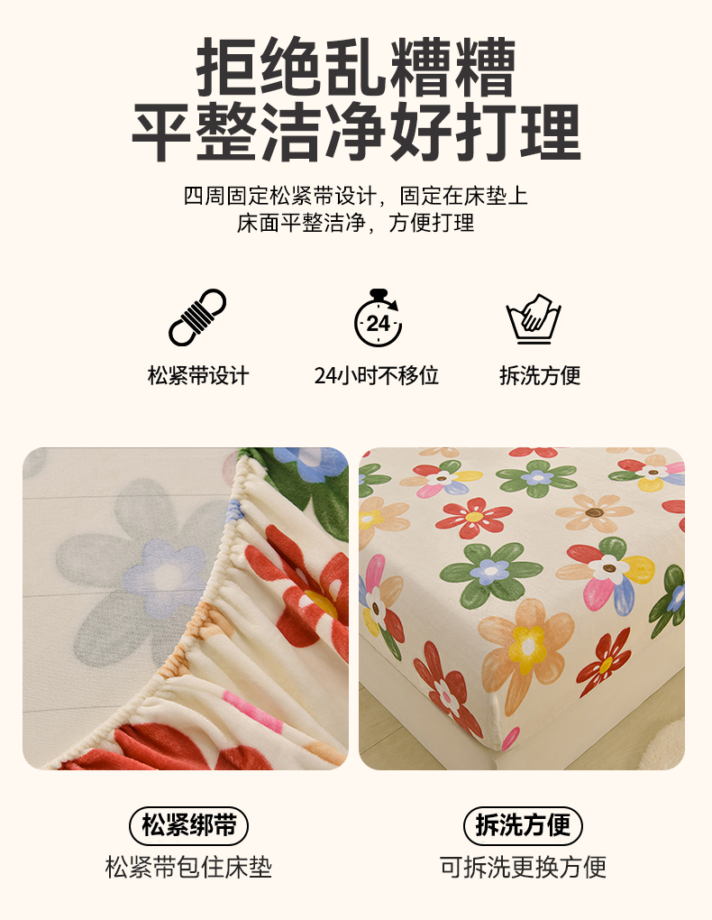 商品名称:圣楚家纺 2025新款牛奶绒床笠 花花世界