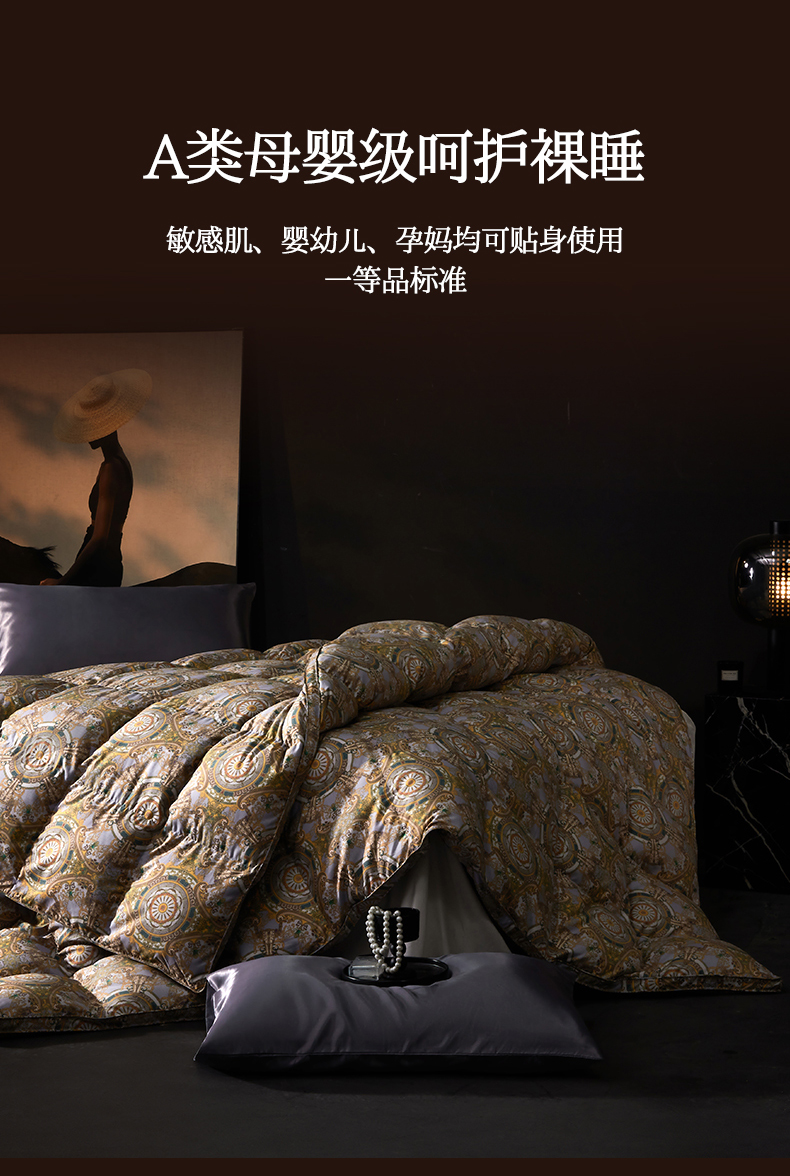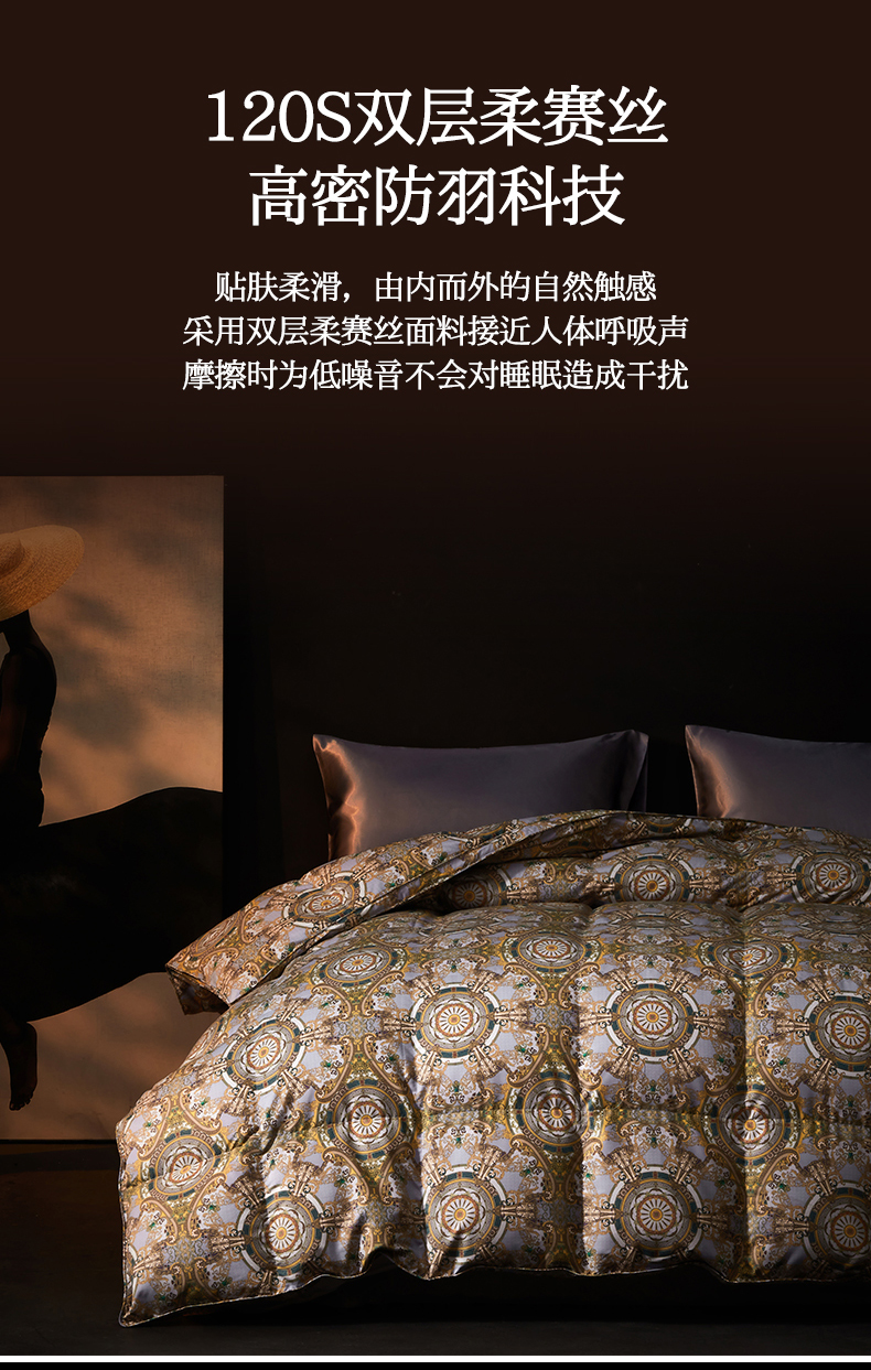 • 91家纺网 家纺一手货源 找家纺 (总)织梦人羽绒工厂店 2025新款高端100支长绒棉德国进口软银丝全棉95鹅绒羽绒被,凤翎-黑金