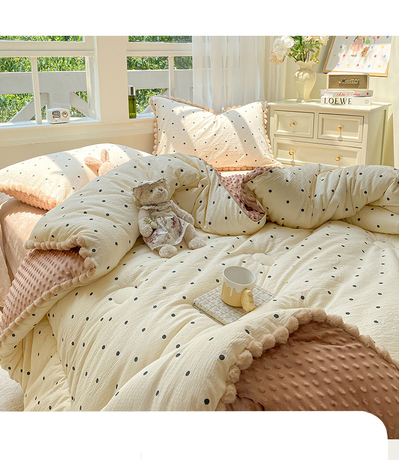 米乐被业 2025新款毛球豆豆被小清新被子被芯 韩系波点