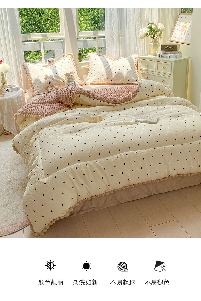 • 91家纺网 家纺一手货源 找家纺 米乐被业 2025新款毛球豆豆被小清新被子被芯 韩系波点