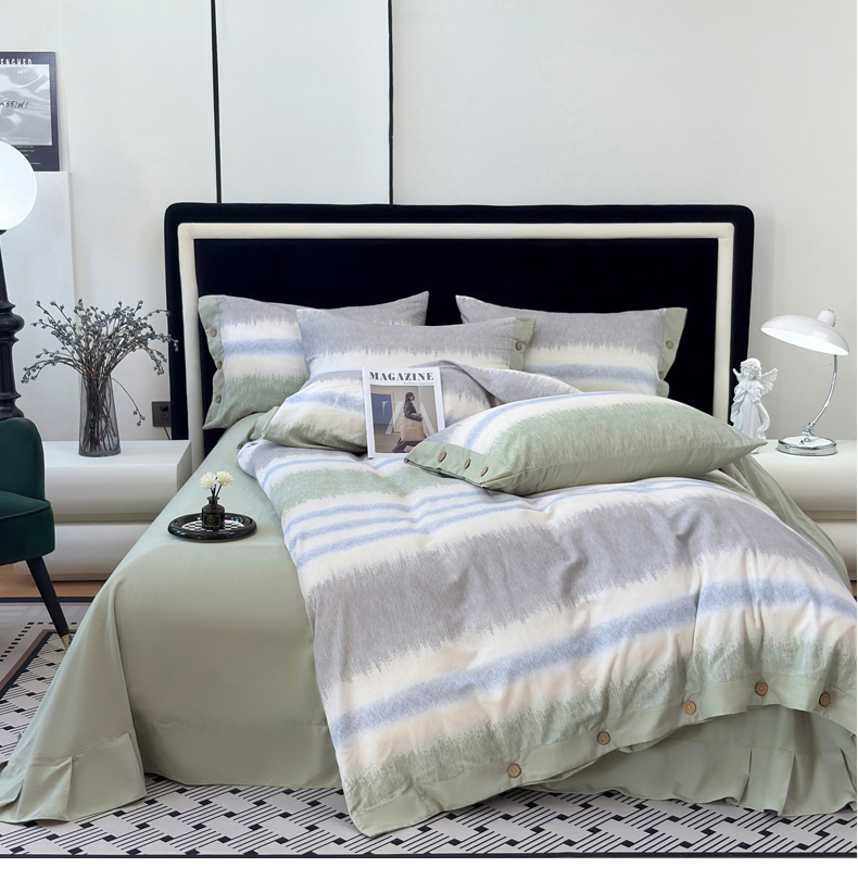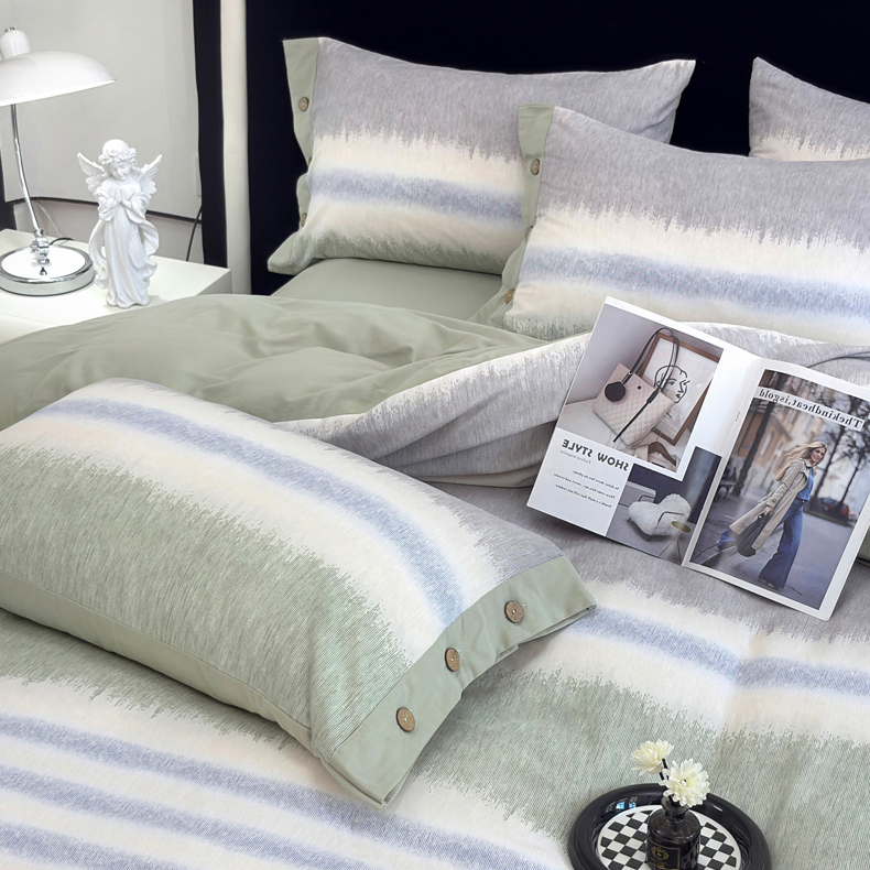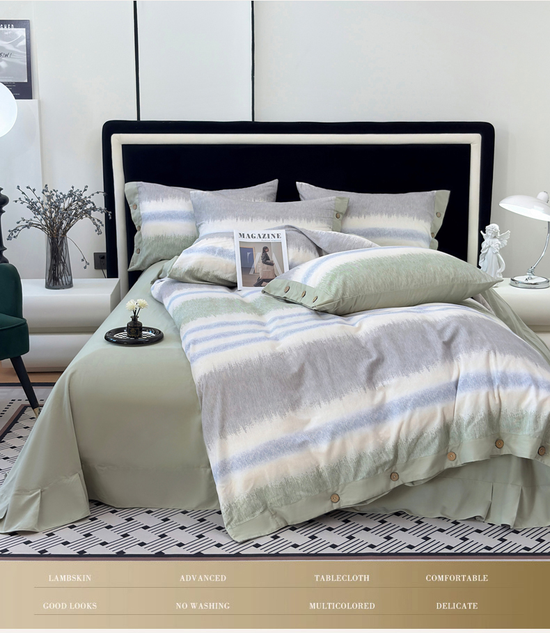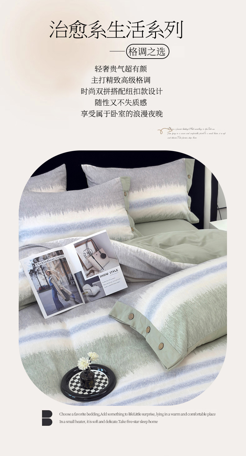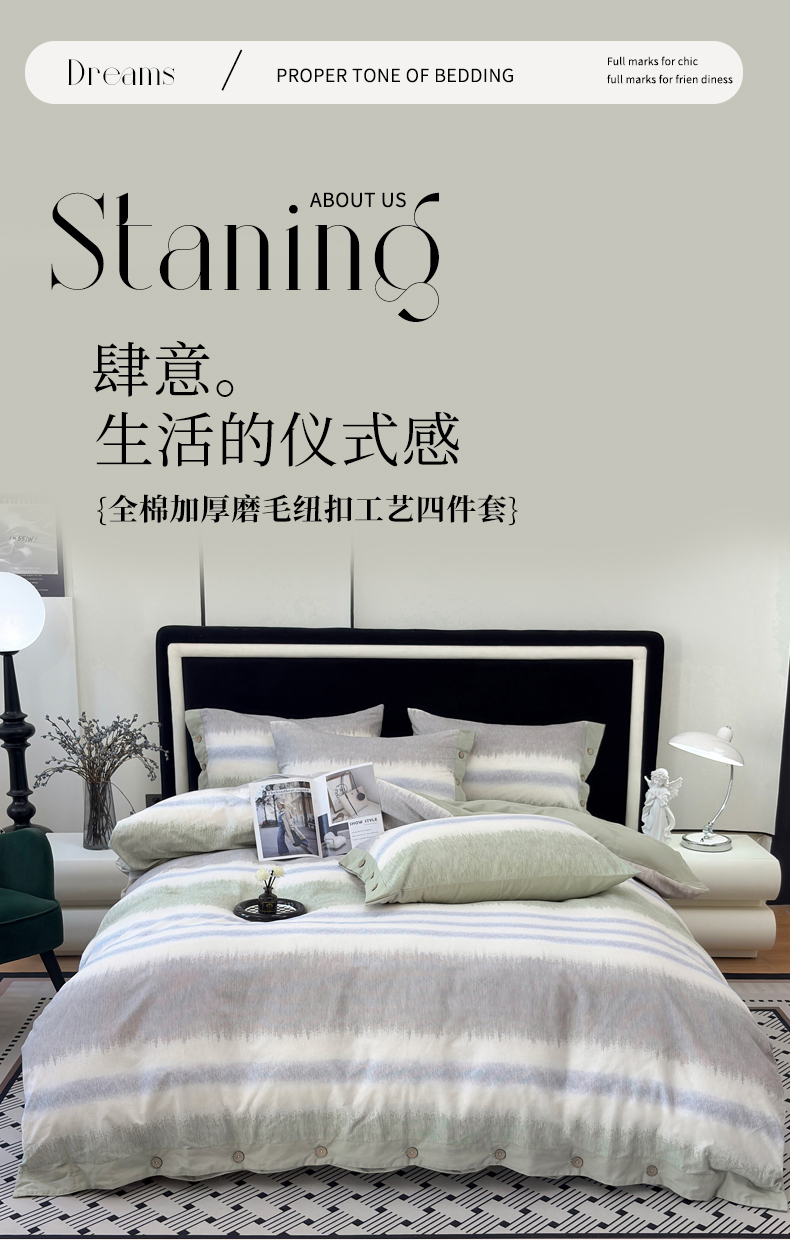 • 91家纺网 家纺一手货源 找家纺 未来家居 2025秋冬新款全棉加厚磨毛纽扣工艺四件套 暖调-绿