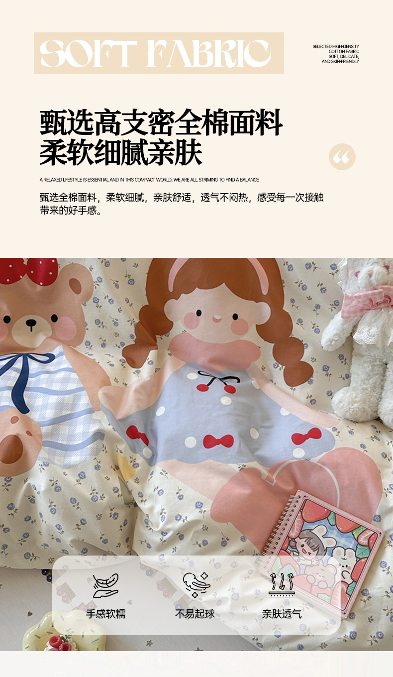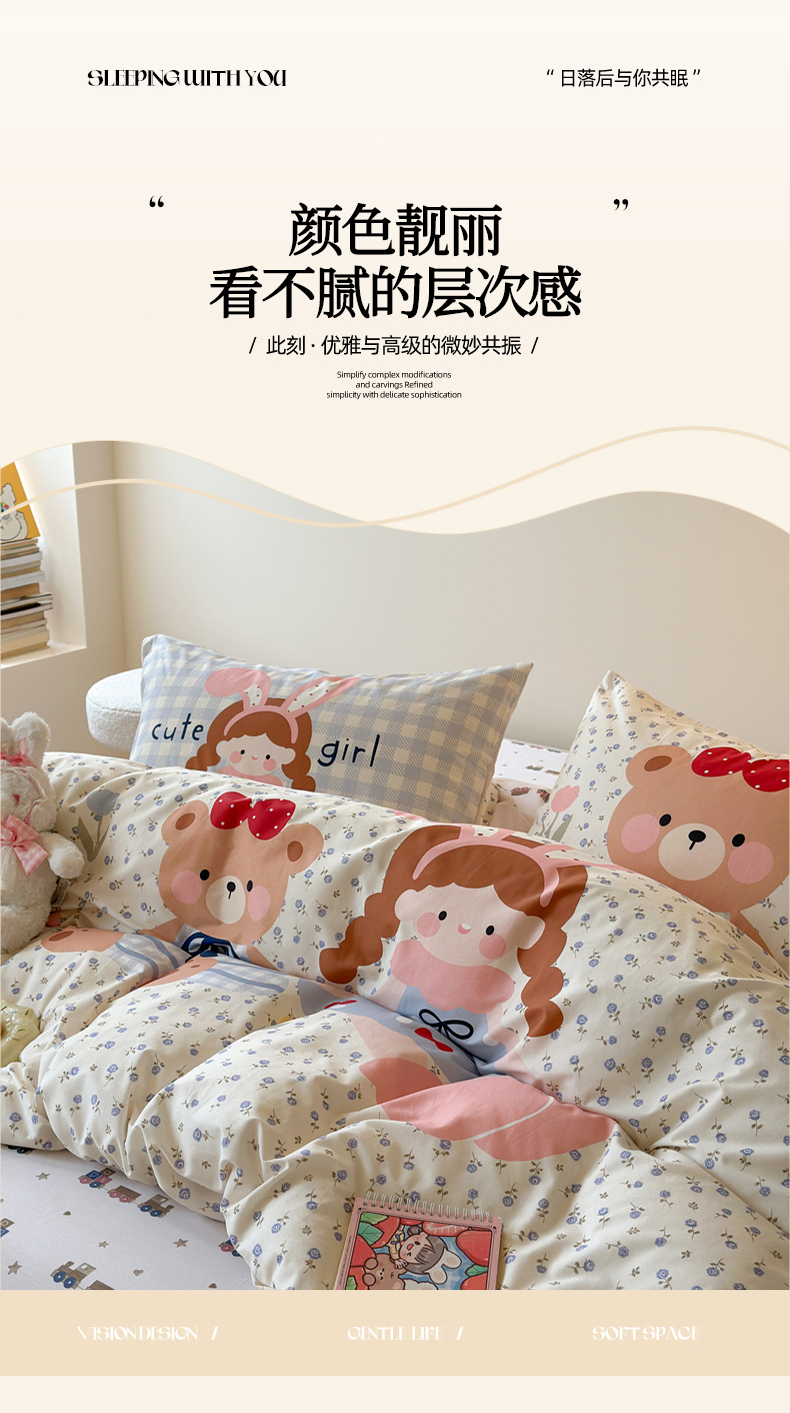 当前位置: 91家纺网 > 商品网购 > 床品套件 > 四件套 > 全棉普通四件套 > 寐居家纺 2025新款亲肤舒适全棉纯棉数码大阪印花四件套 小熊日记