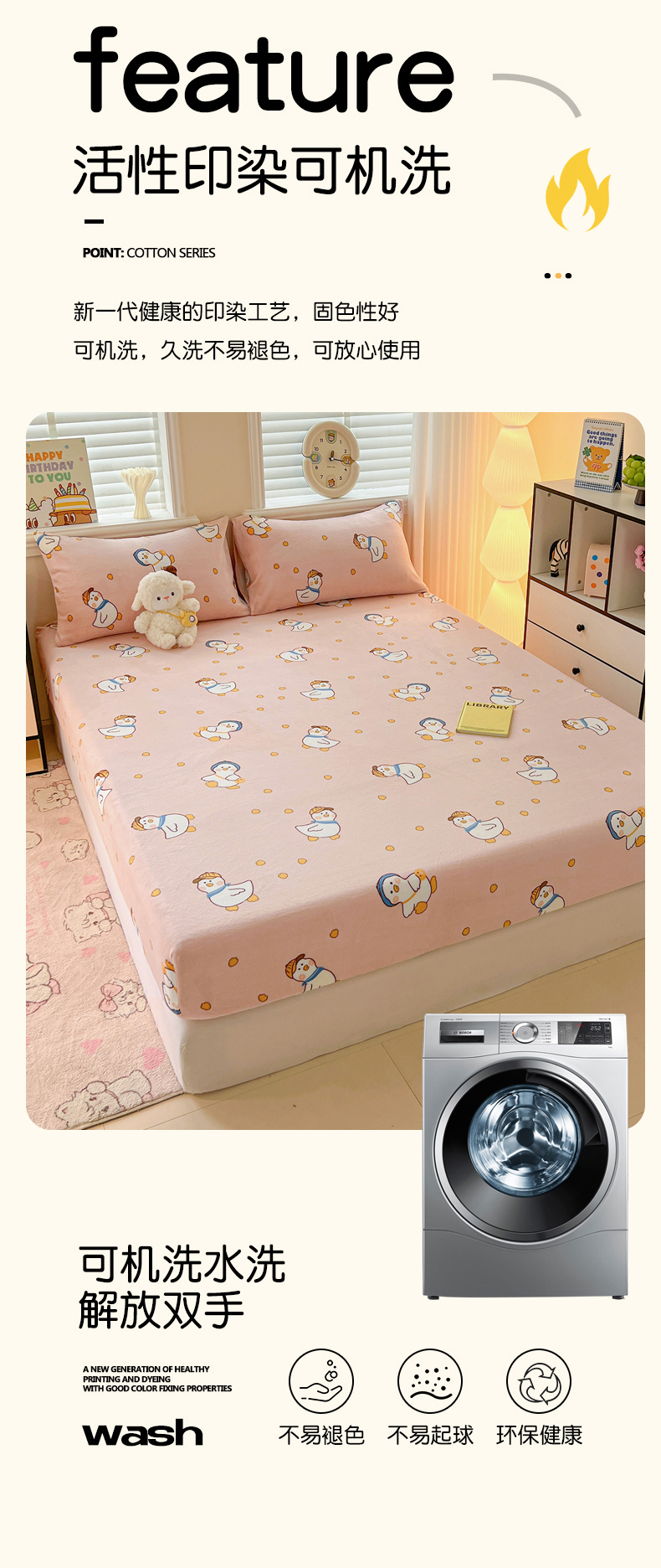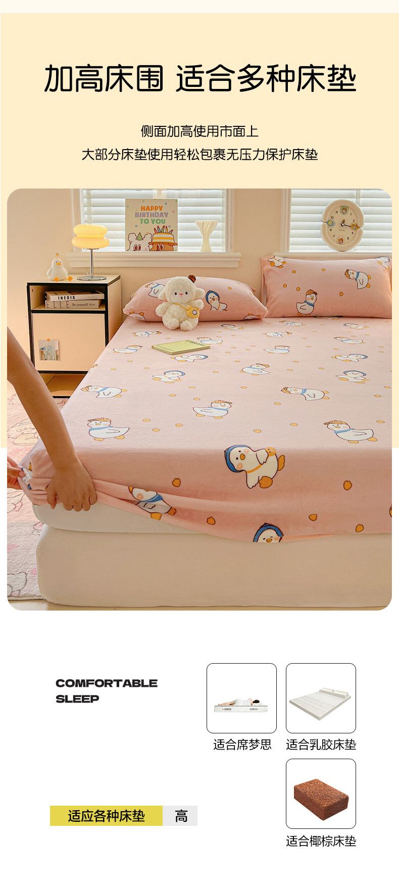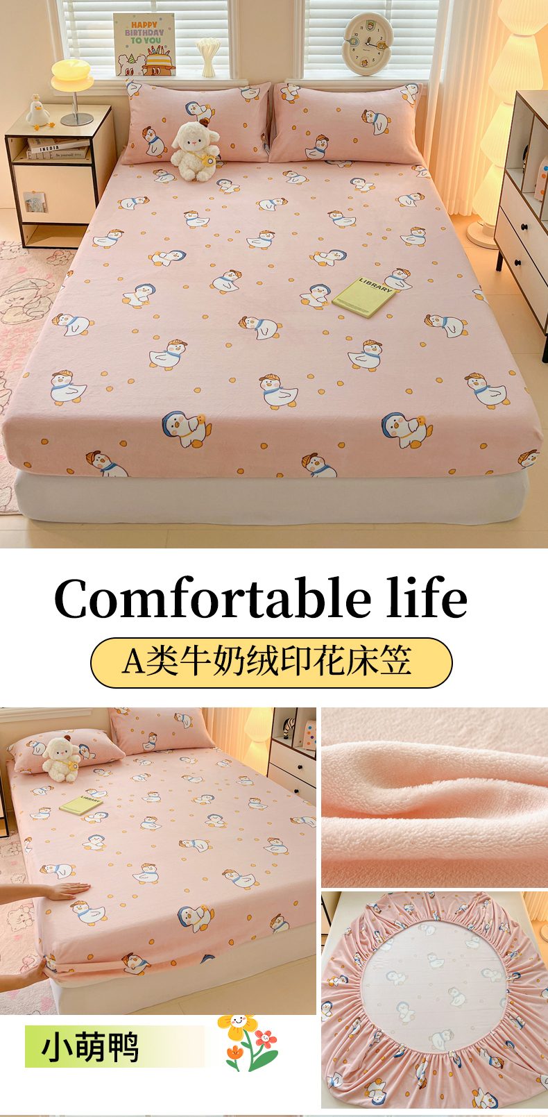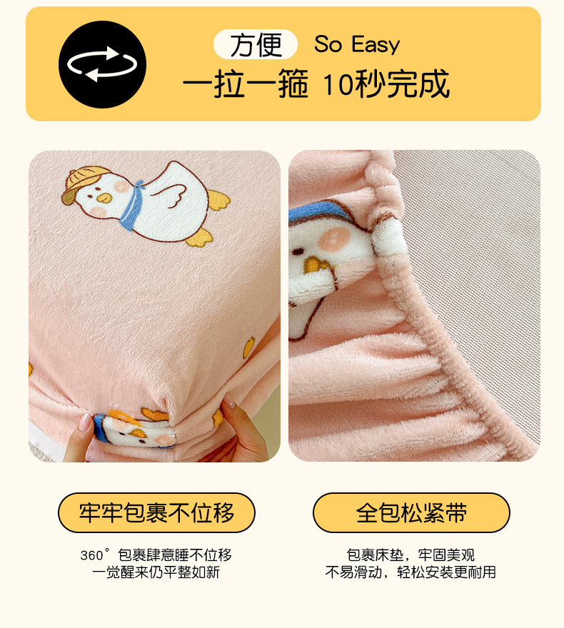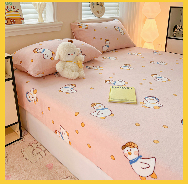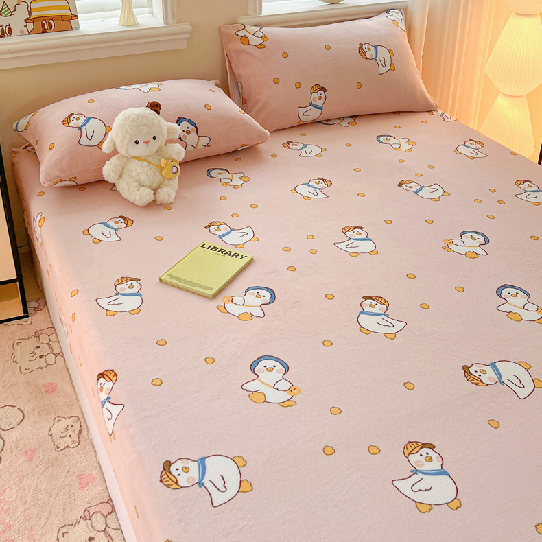 富馨莱2025年新款牛奶绒印花床笠 小萌鸭