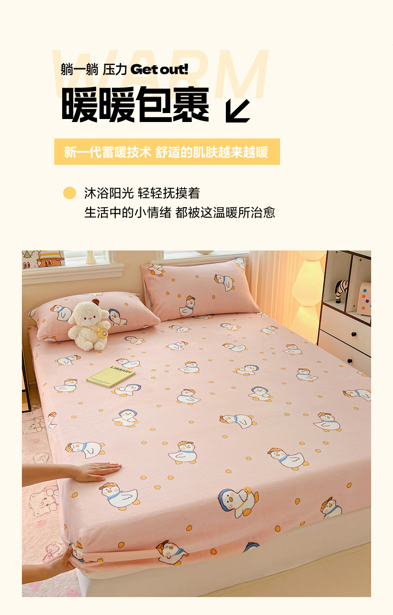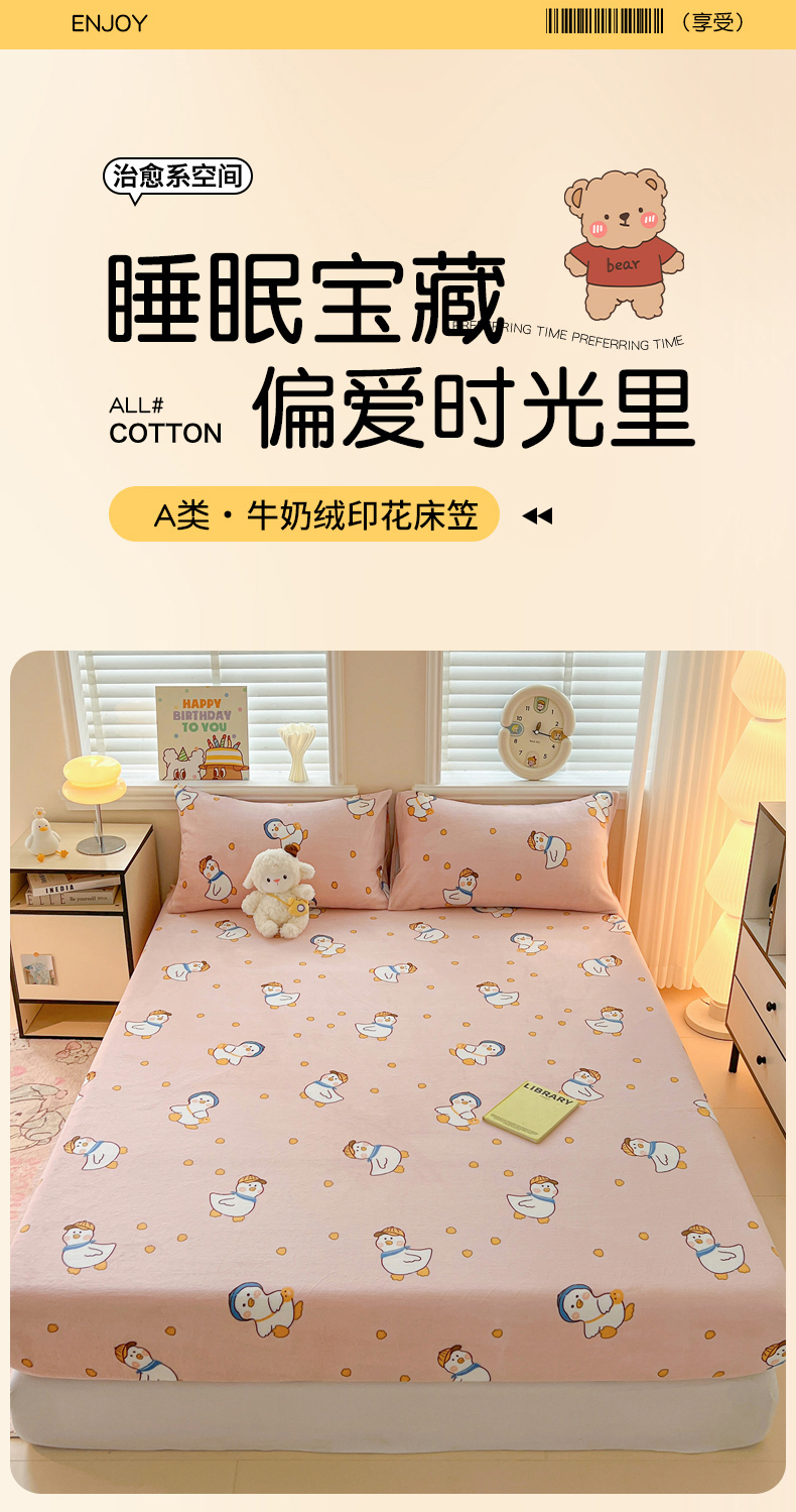 • 91家纺网 家纺一手货源 找家纺 富馨莱2025年新款牛奶绒印花床笠 小萌鸭